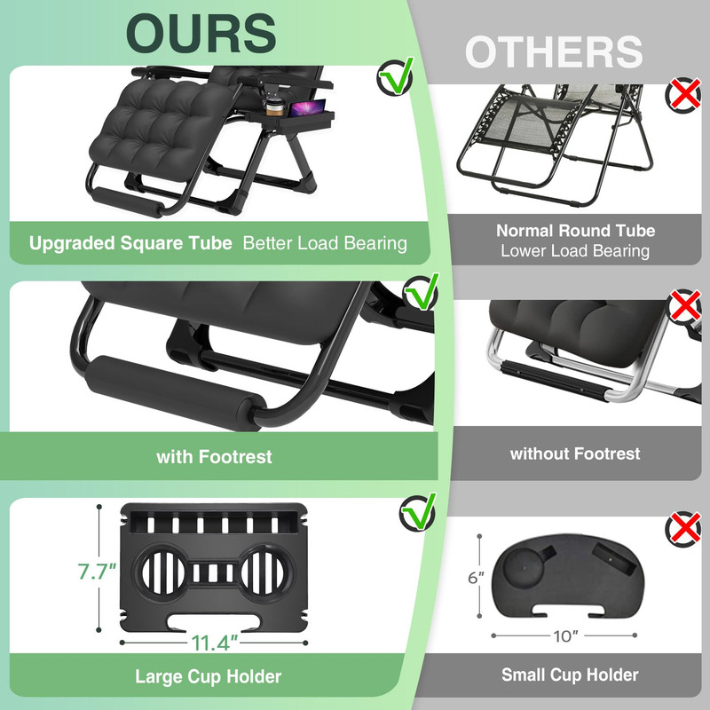 Oversized Zero Gravity Chair,29In XL Lounge Chair w/Removable Cushion&Headrest, Reclining Camping Chair w/Upgraded Lock and Footrest, Reclining Patio Chairs Recliner for Indoor Outdoor - Curated Treasures Market