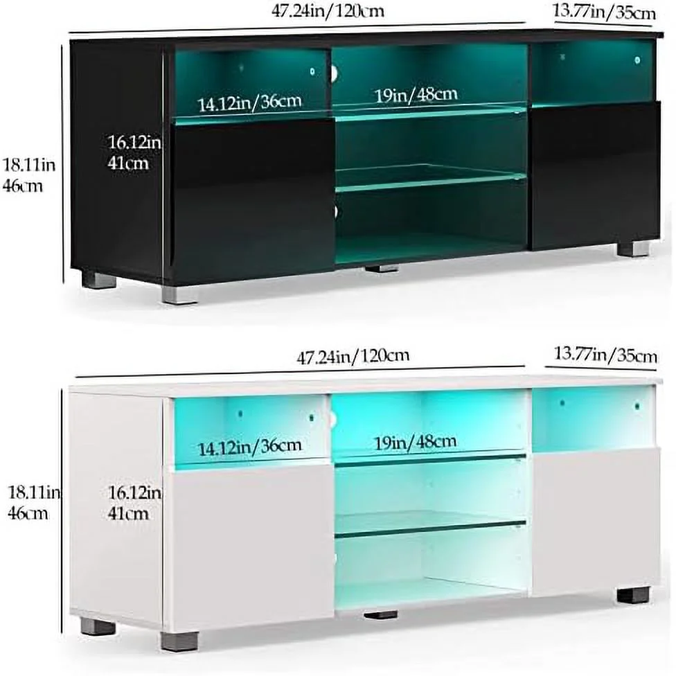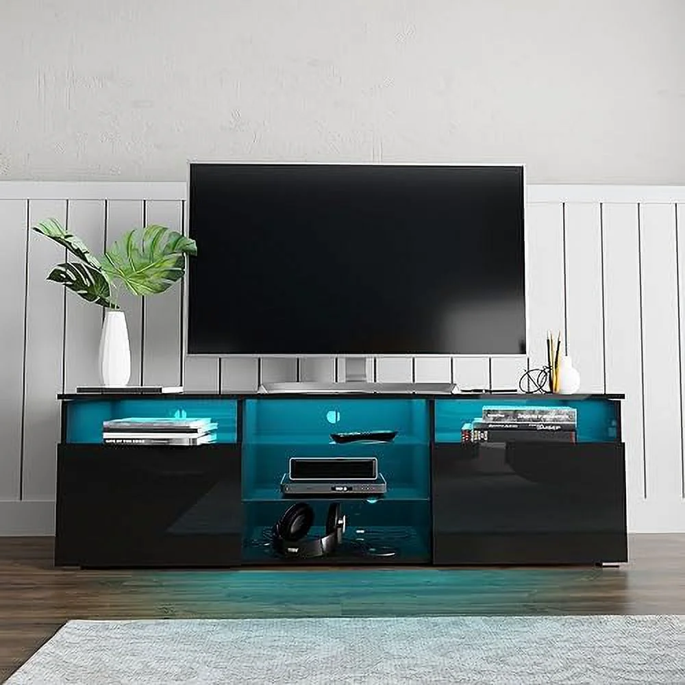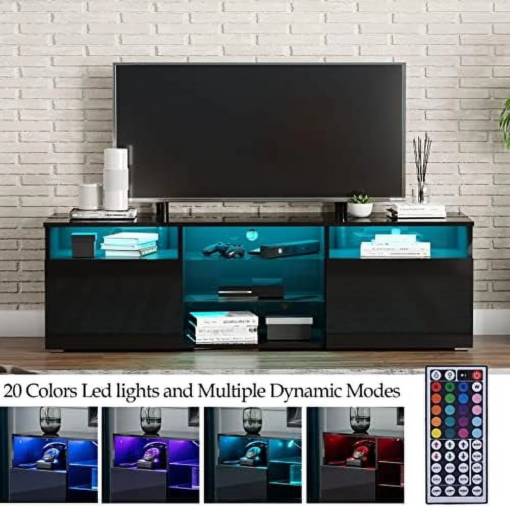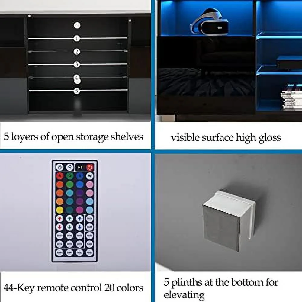 HYHBIBOOM 71IN LED TV Stand for 75/80inch TV High Glossy Black TV Stand for Living Room Modern Gaming Entertainment Center with Adjustable RGB LED Lighting TV Cabinet(71in White) - Curated Treasures Market
