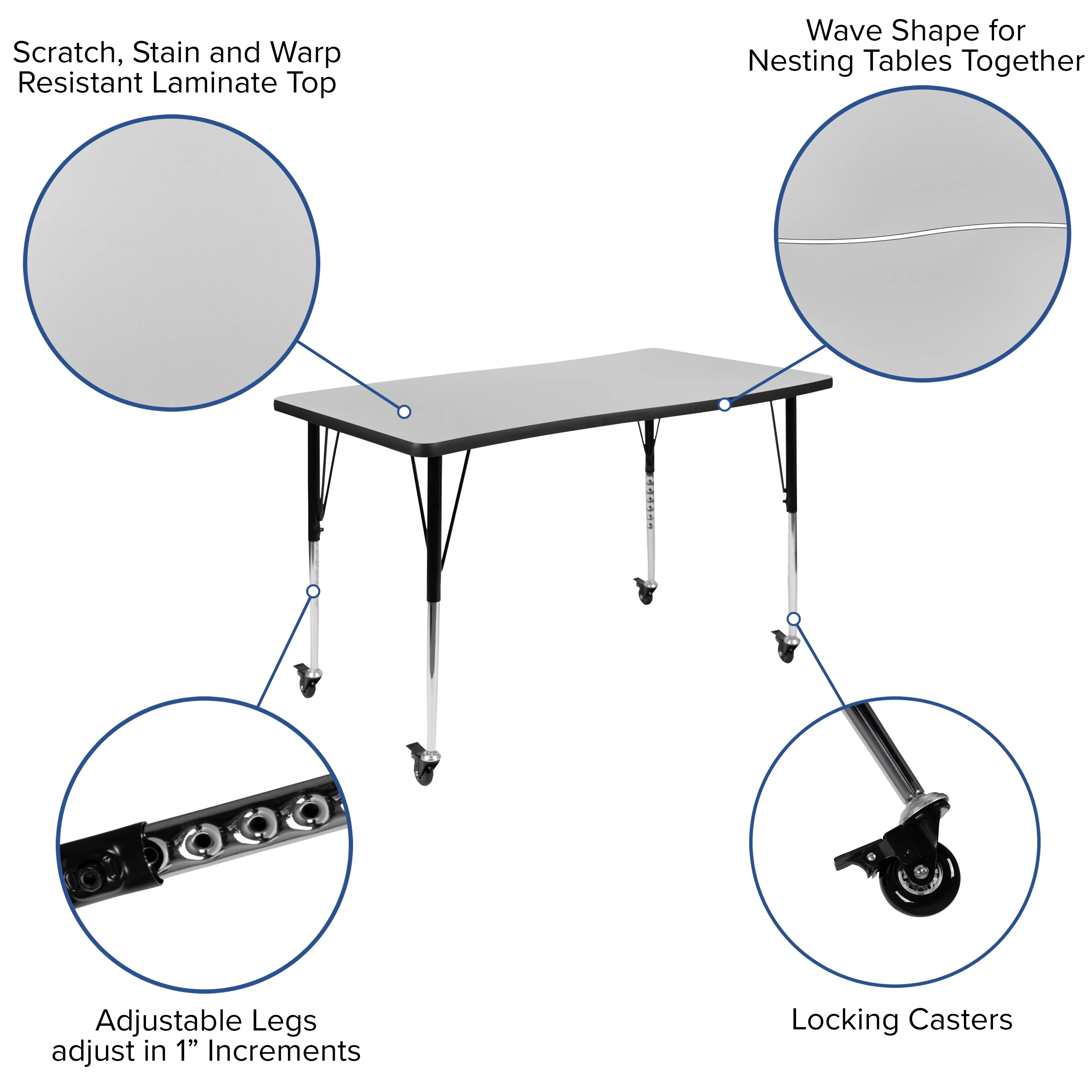 Emma + Oliver Mobile 76" Oval Wave Activity Table Set-16" Student Stack Chairs, Grey/Black - Curated Treasures Market