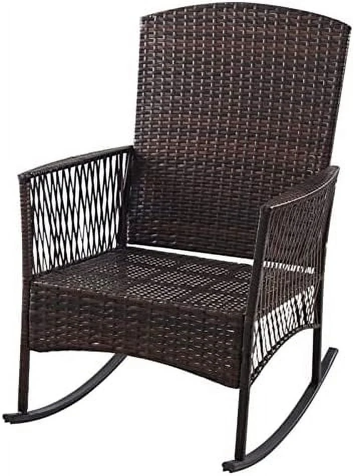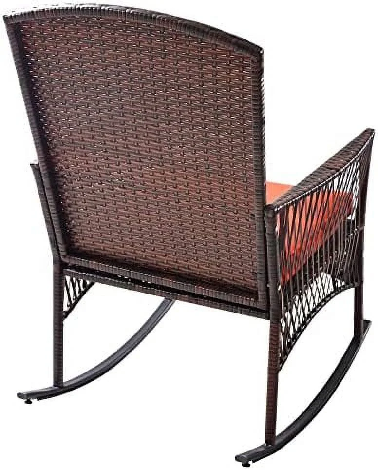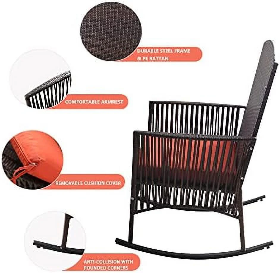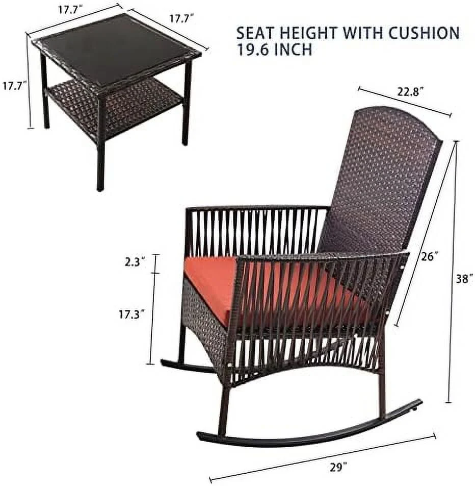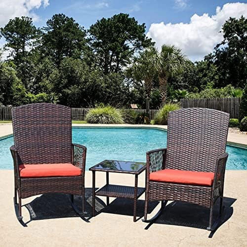JDZHAPPYLIFE Outdoor Rattan Wicker Rocking Chair 3 Pieces Patio Conversation Bistro Sets with and Cushions for Porch Garden and Balcony - Curated Treasures Market