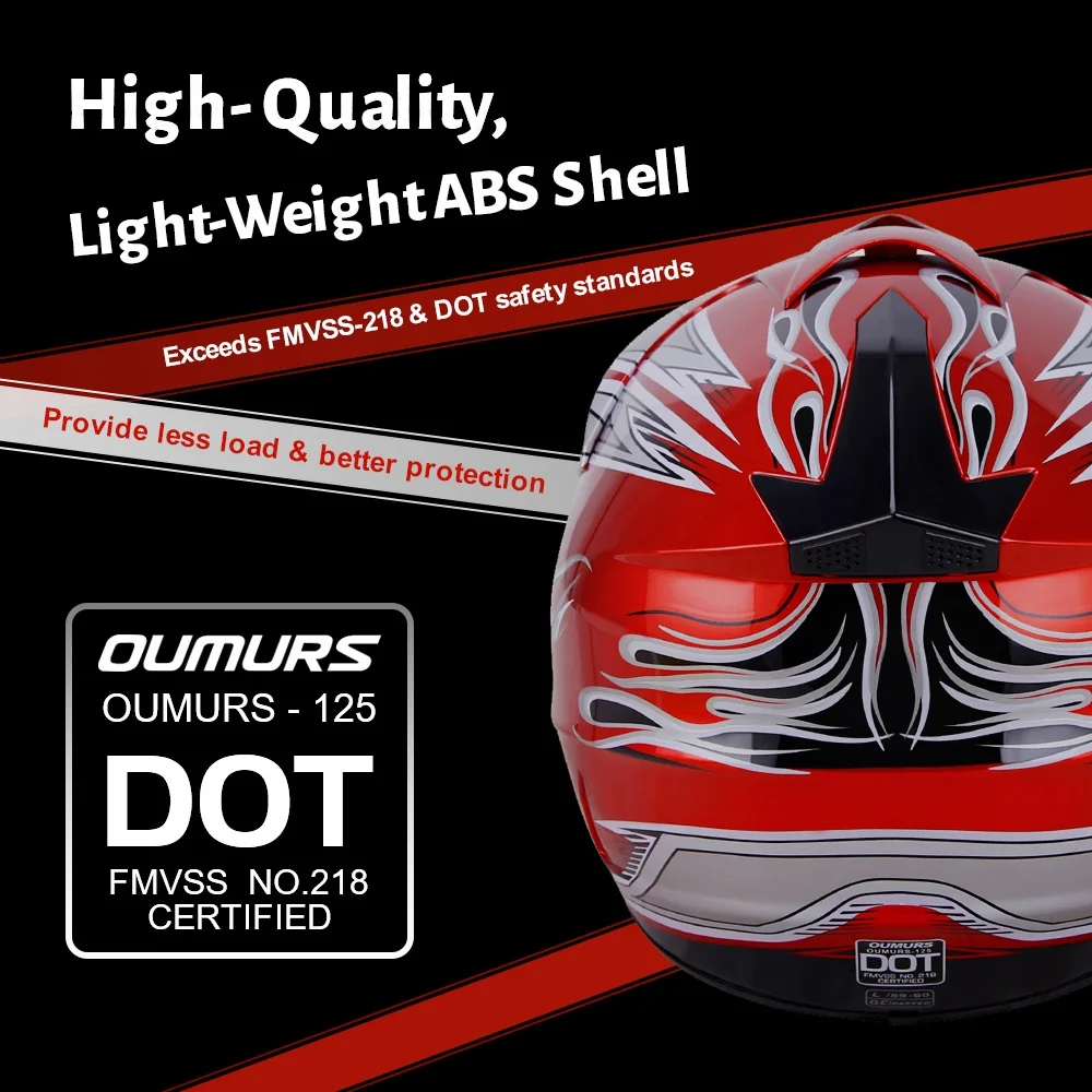 Oumurs DOT Motocross Motorcycle Helmet Open Face Off-road Dirt Bike ATV Helmet Unisex Adult Black M L XL XXL - Curated Treasures Market