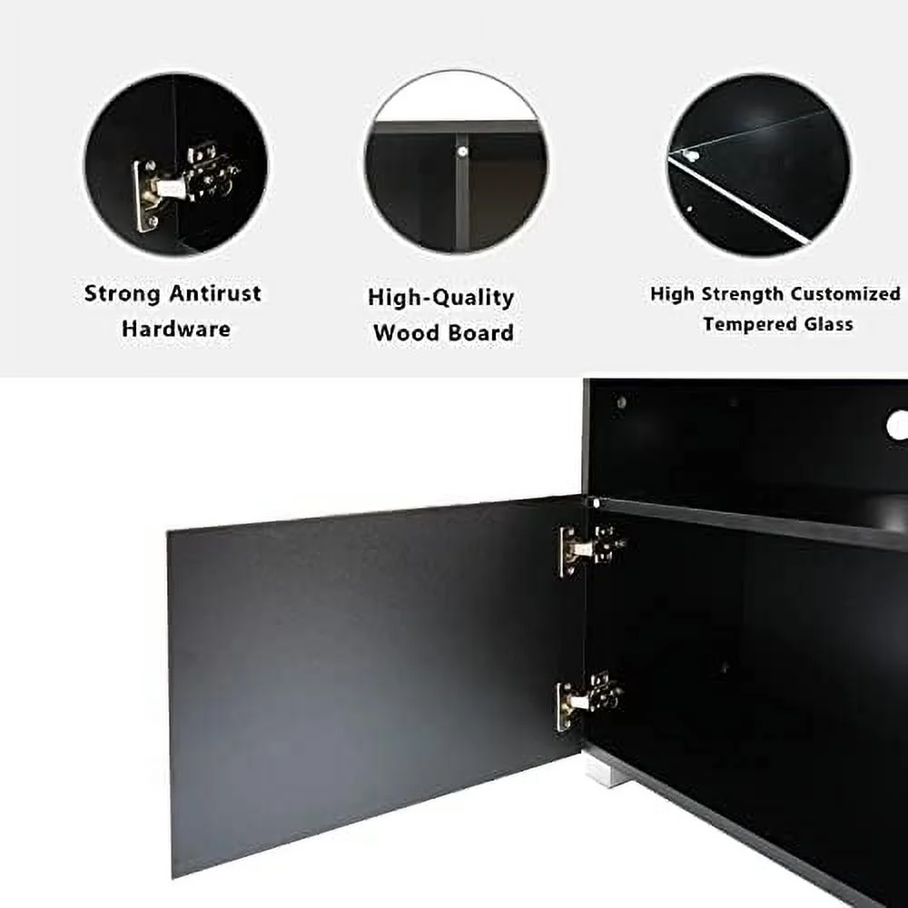 FDSHOIYN LED TV Stand for 75/80 inch TV Modern Television Table Center Media Console with Drawer and Led Lights High Glossy Entertainment Center for Living Game Room Bedroom(Black) - Curated Treasures Market