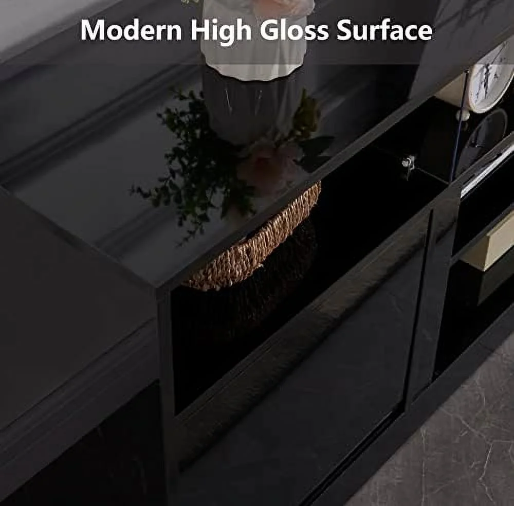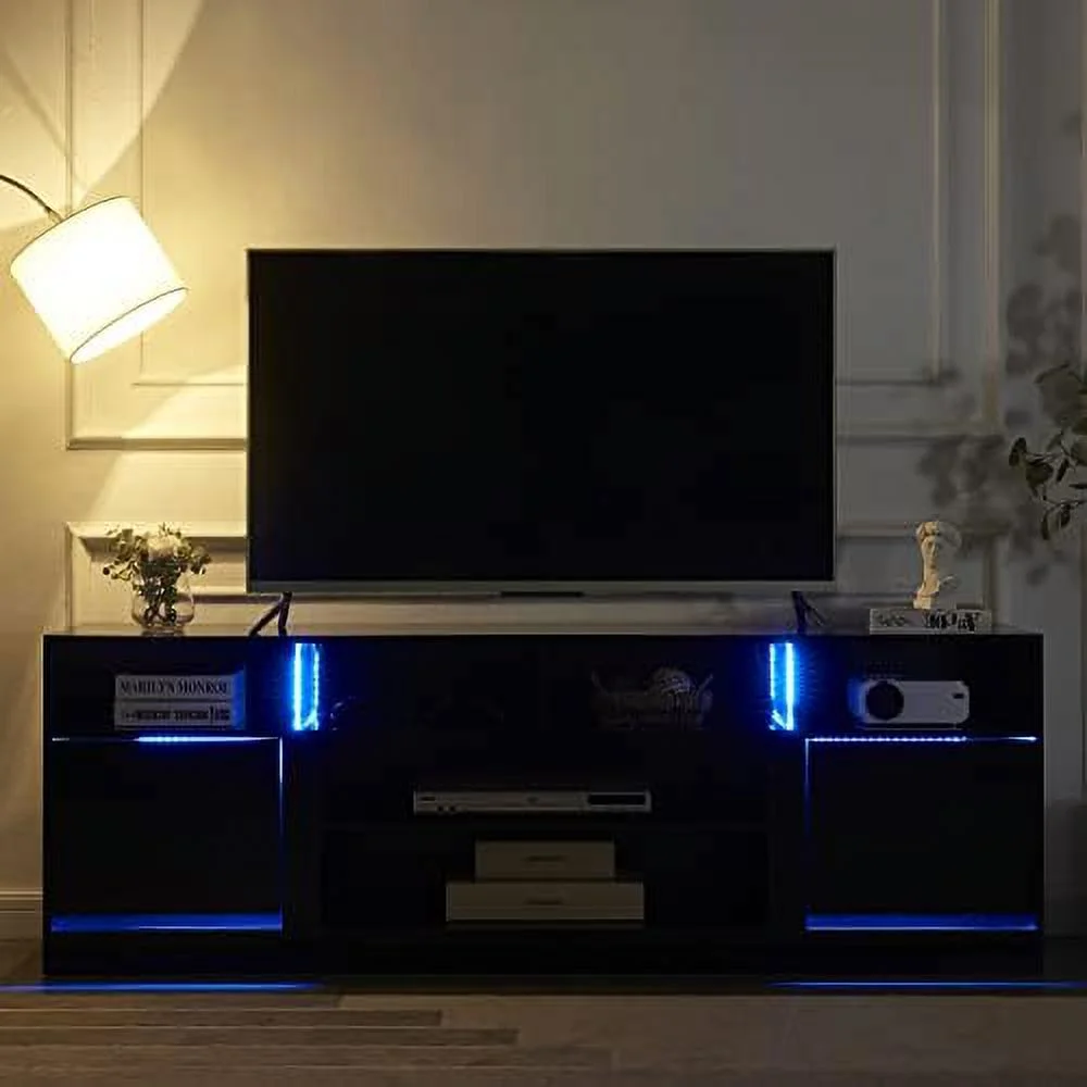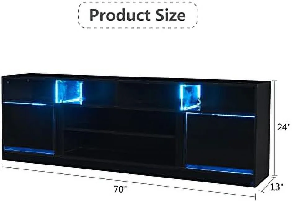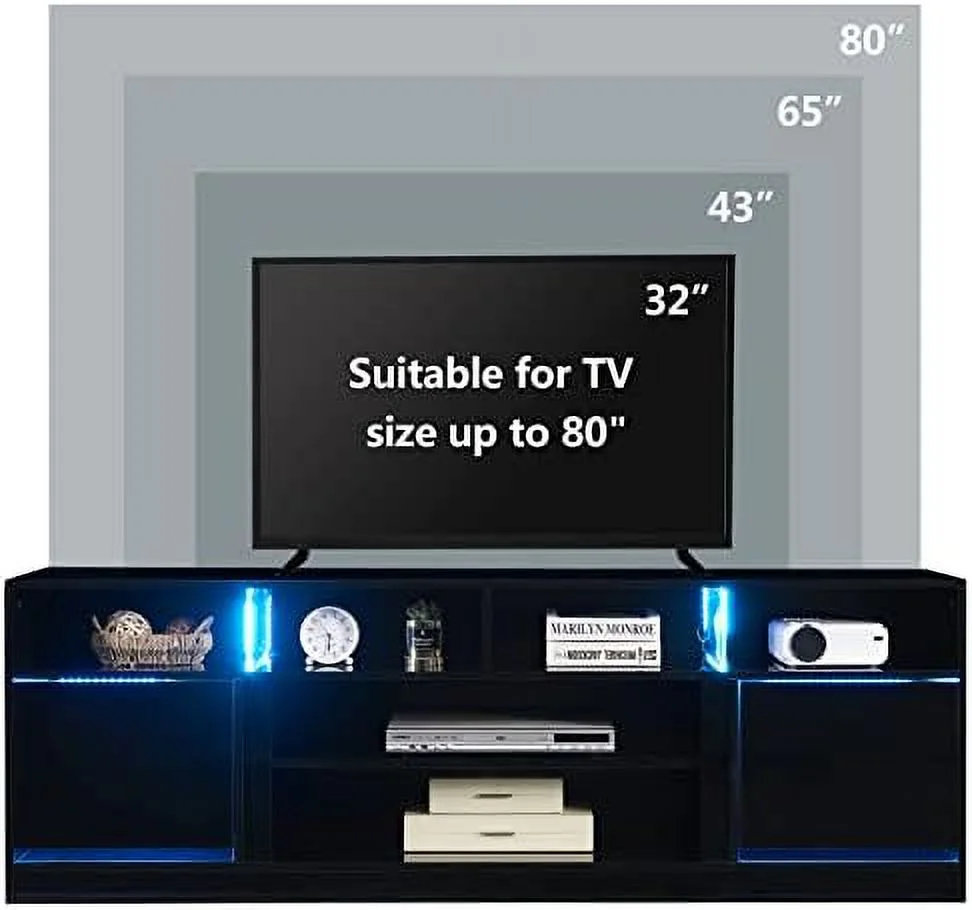 CKPFVY LED TV Stand for 80" TV Game Console Entertainment Center with Shelves and Media Layers Modern TV Stand with LED Lights 16 Colors and High Gloss Cabinets for Living Room Bed - Curated Treasures Market
