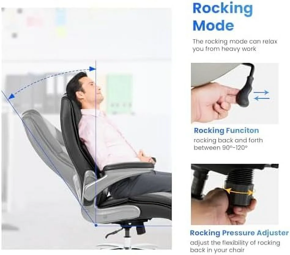 JYHOME Big and Tall Office Chair 400lbs Adjustable Executive Leather Desk Chair with Armrest Computer Desk Chair Rolling Swivel Computer Pu Leather Chair for Heavy People (Brown) - Curated Treasures Market