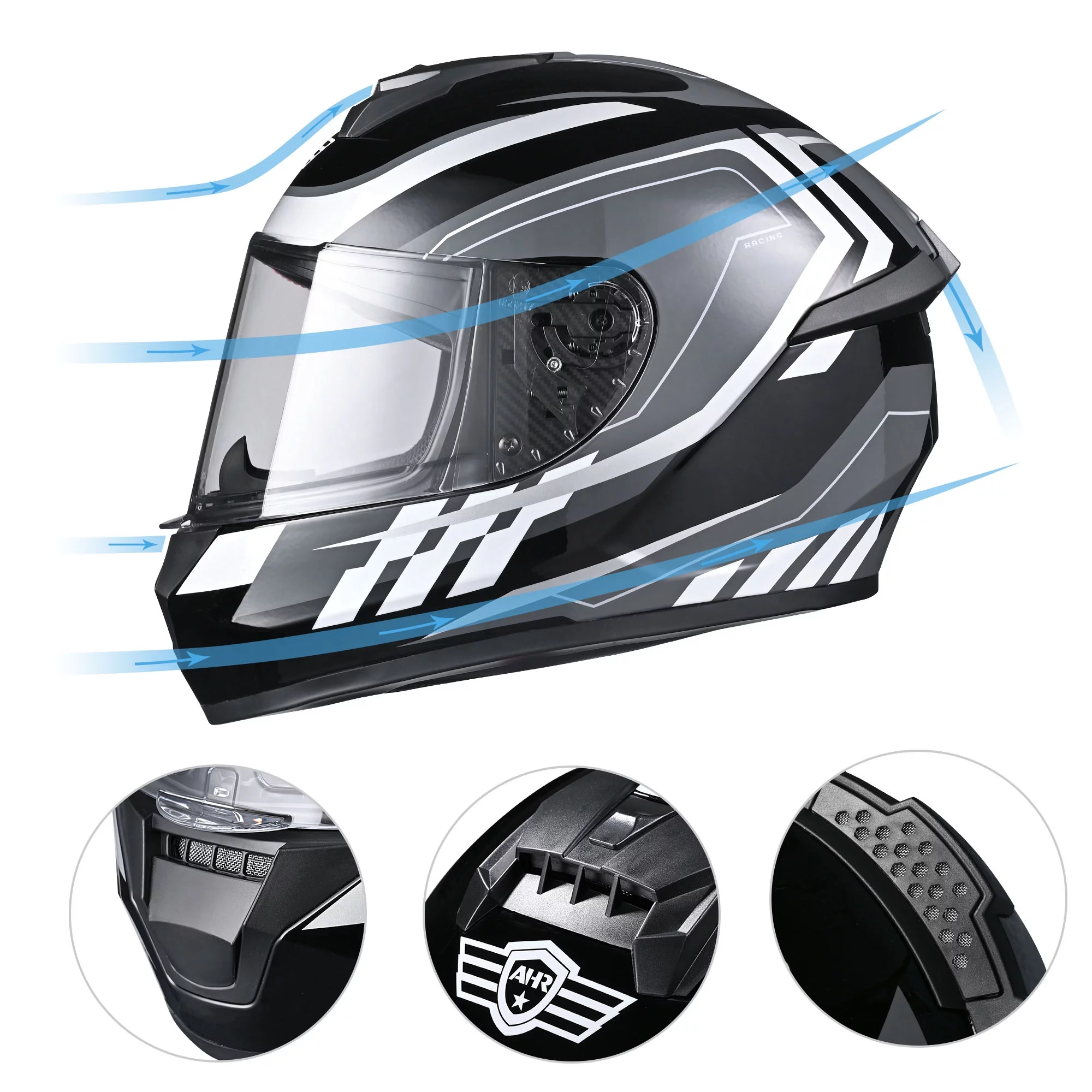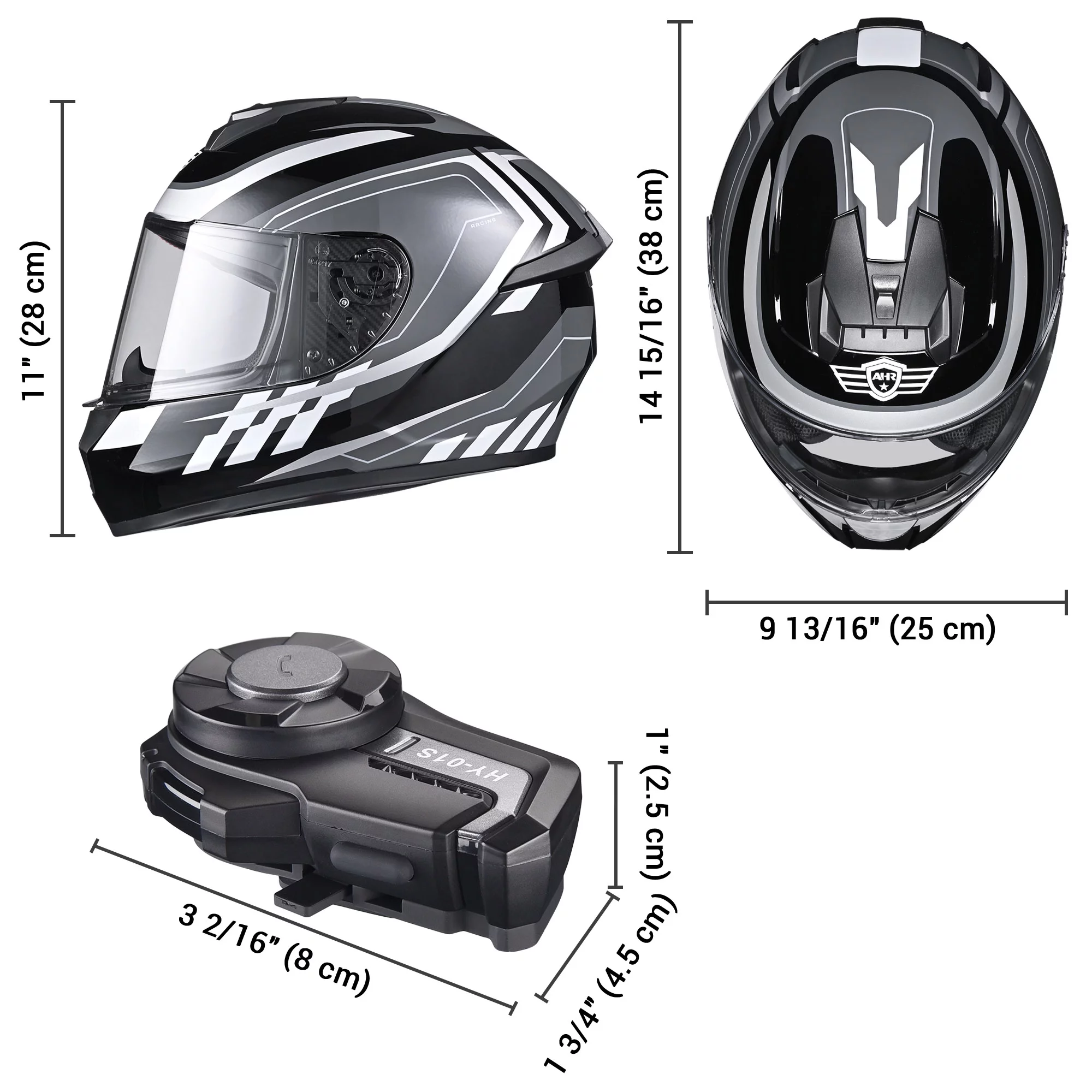 AHR Full Face Bluetooth Motorcycle Helmet DOT Bluetooth 5.0 Headset Intercom M - Curated Treasures Market