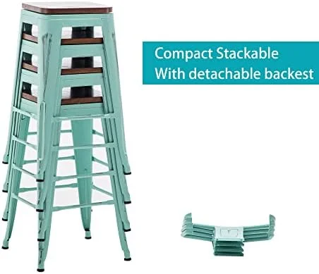 HBBOOMLIFE Stool Metal Stools Set of 4 Industrial Counter Height Stools White Distressed Swivel Stools with Back and Wooden Seat 26" Stools Counter Height - Curated Treasures Market