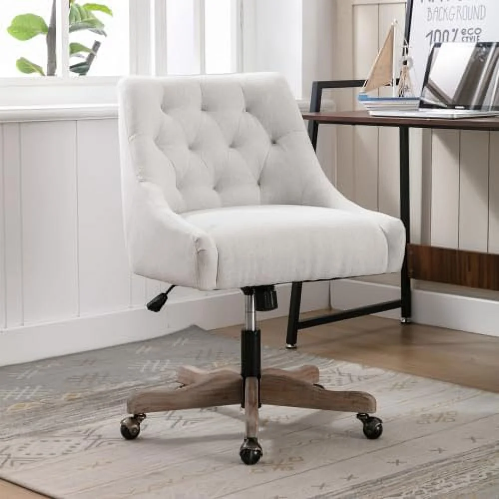 TJCGDTY Comfy Home Office Chair with Curved Backrest Modern Leisure Adjustable Lift Desk Chair with Solid Wood Base Swivel Accent Armless Chair for Vanity Living Room Bedroom Dorm B - Curated Treasures Market