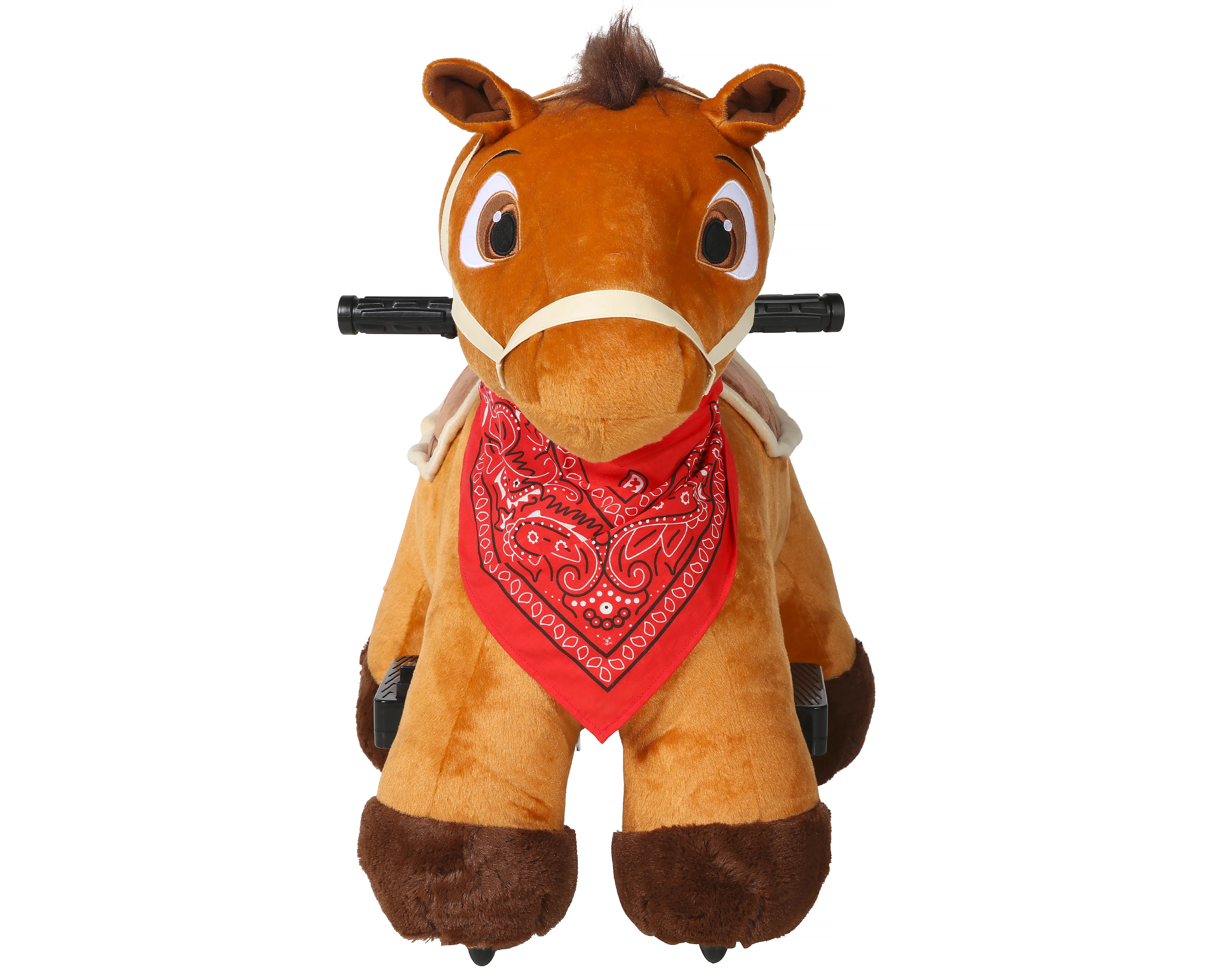 6 Volt Stable Buddies Chestnut Horse Plush Ride-On by Dynacraft with Removable Bandana and Play Stable Included! - Curated Treasures Market