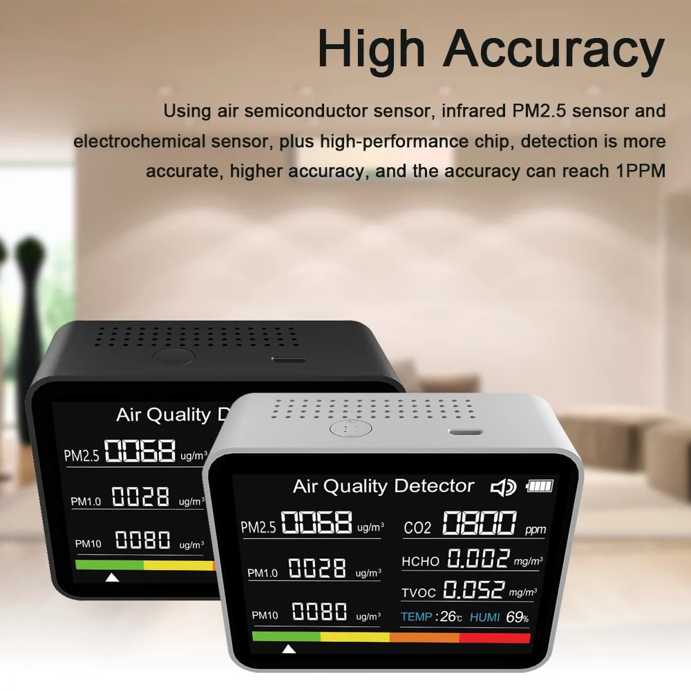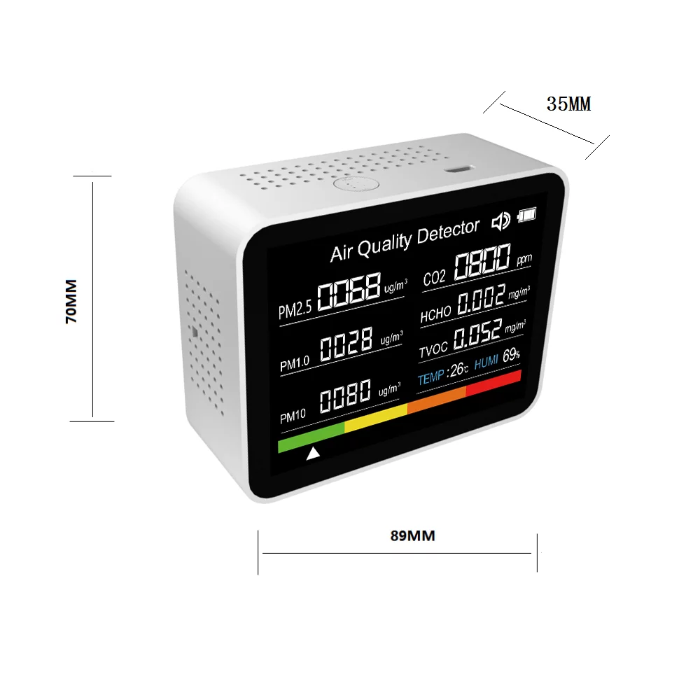 8 in 1 Air Quality Monitor CO2 Meter Carbon Dioxide Detector CO2 TVOC HCHO PM2.5 PM1.0 PM10 Temperature Humidity Detection with Alarm Function for Home Office Car - Curated Treasures Market