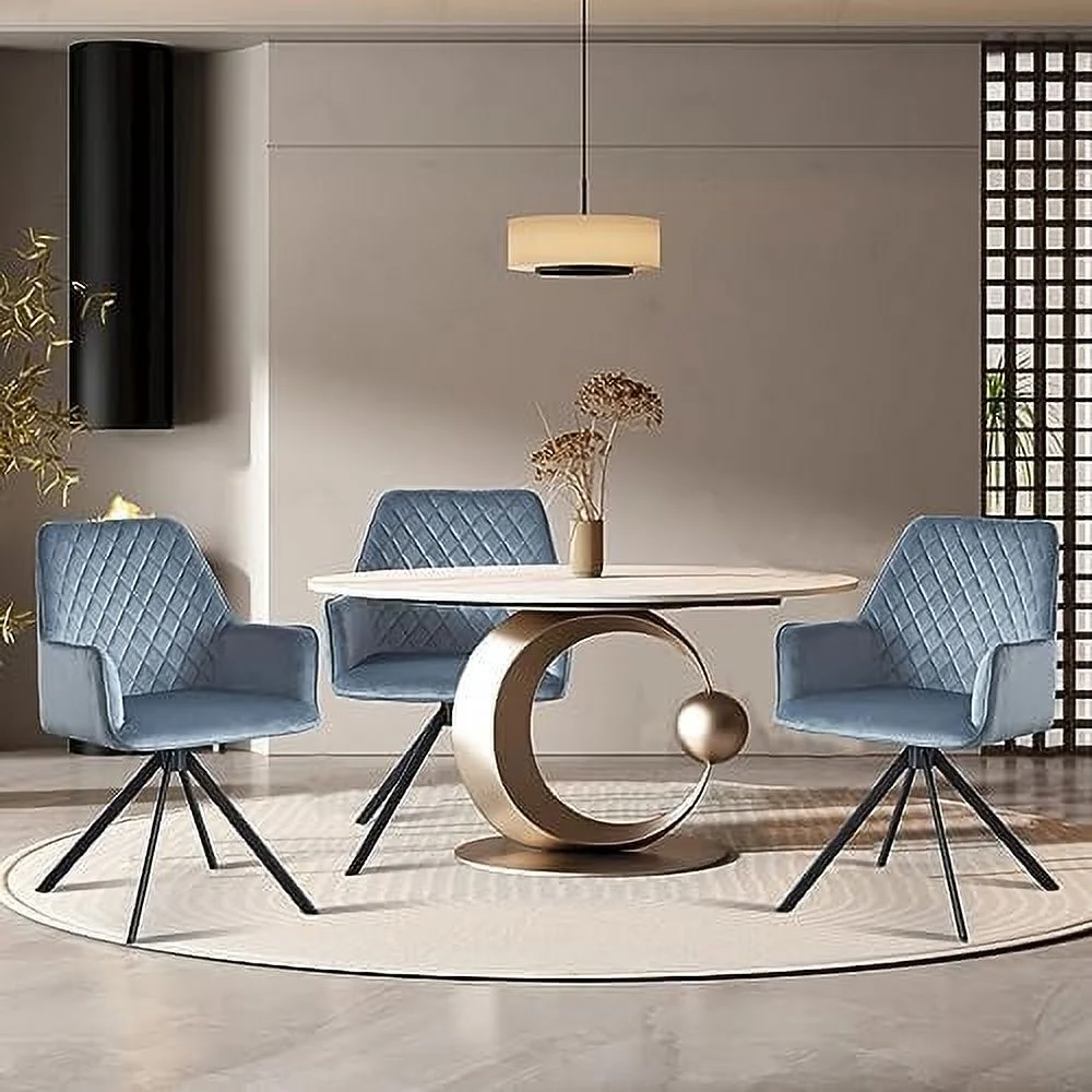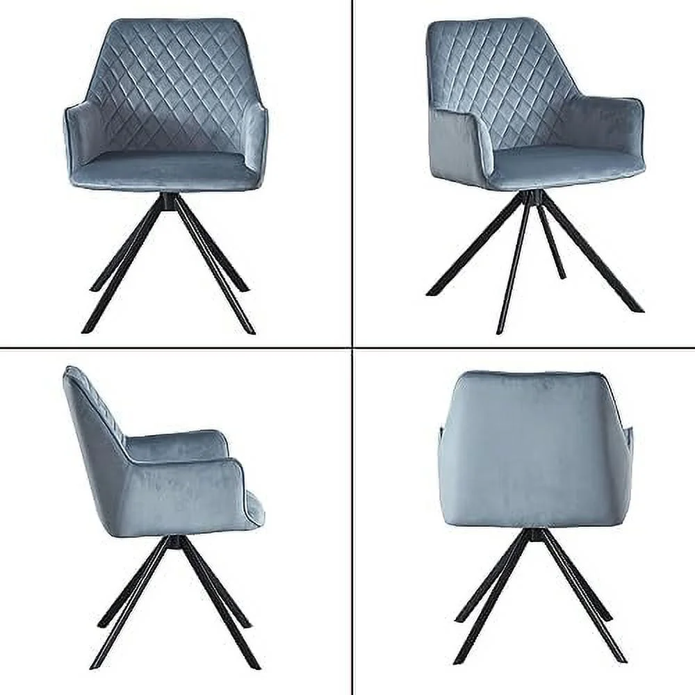 TJUNBOLIFE Velvet Upholstered Contemporary Accent Chair Dining Chair Upholstered Backrest Seat Chairs for Home Kitchen/Living Room sBlue and Black - Curated Treasures Market