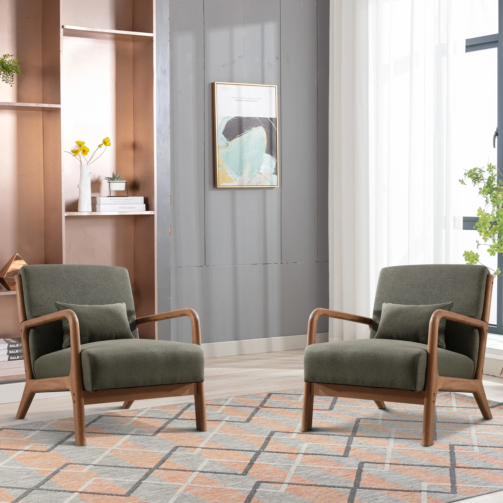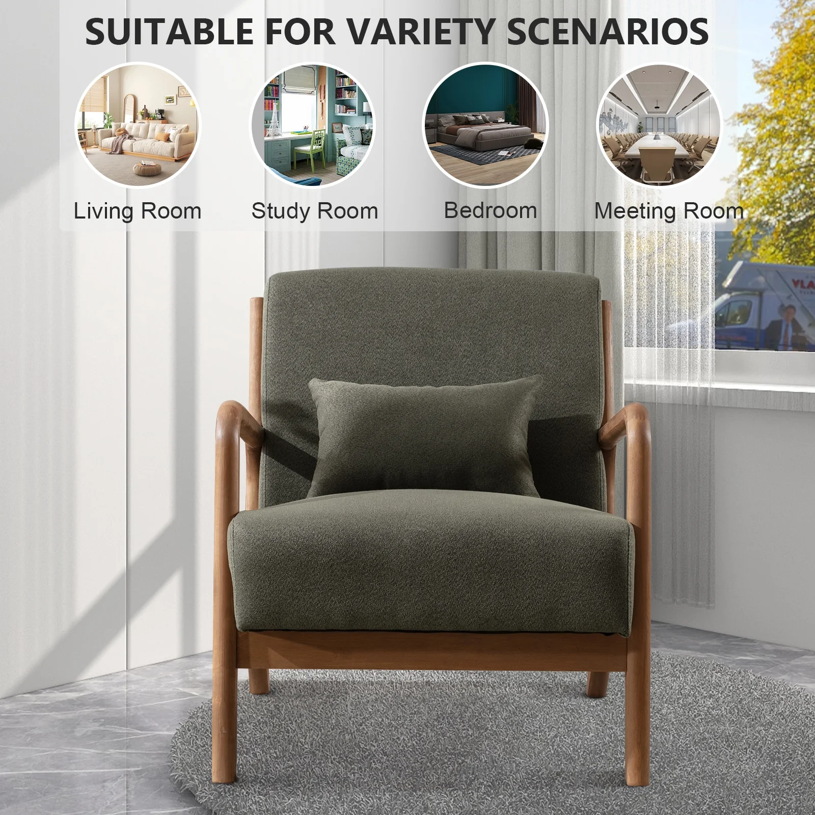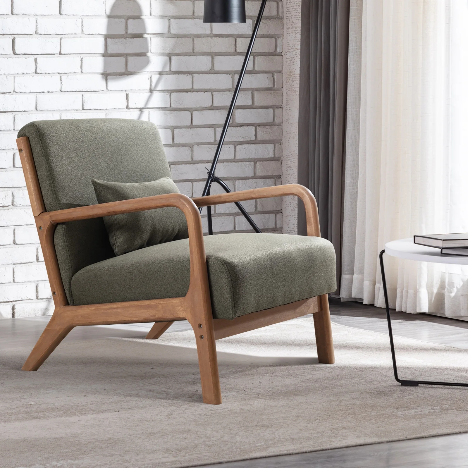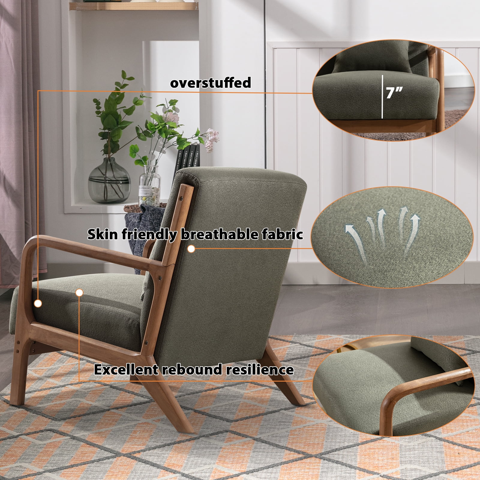 Bonzy Home Mid Century Modern Accent Chair, Single Fabric Lounge Reading Armchair with Solid Wood Frame, Easy Assembly Arm Chairs for Living Room,GREEN - Curated Treasures Market