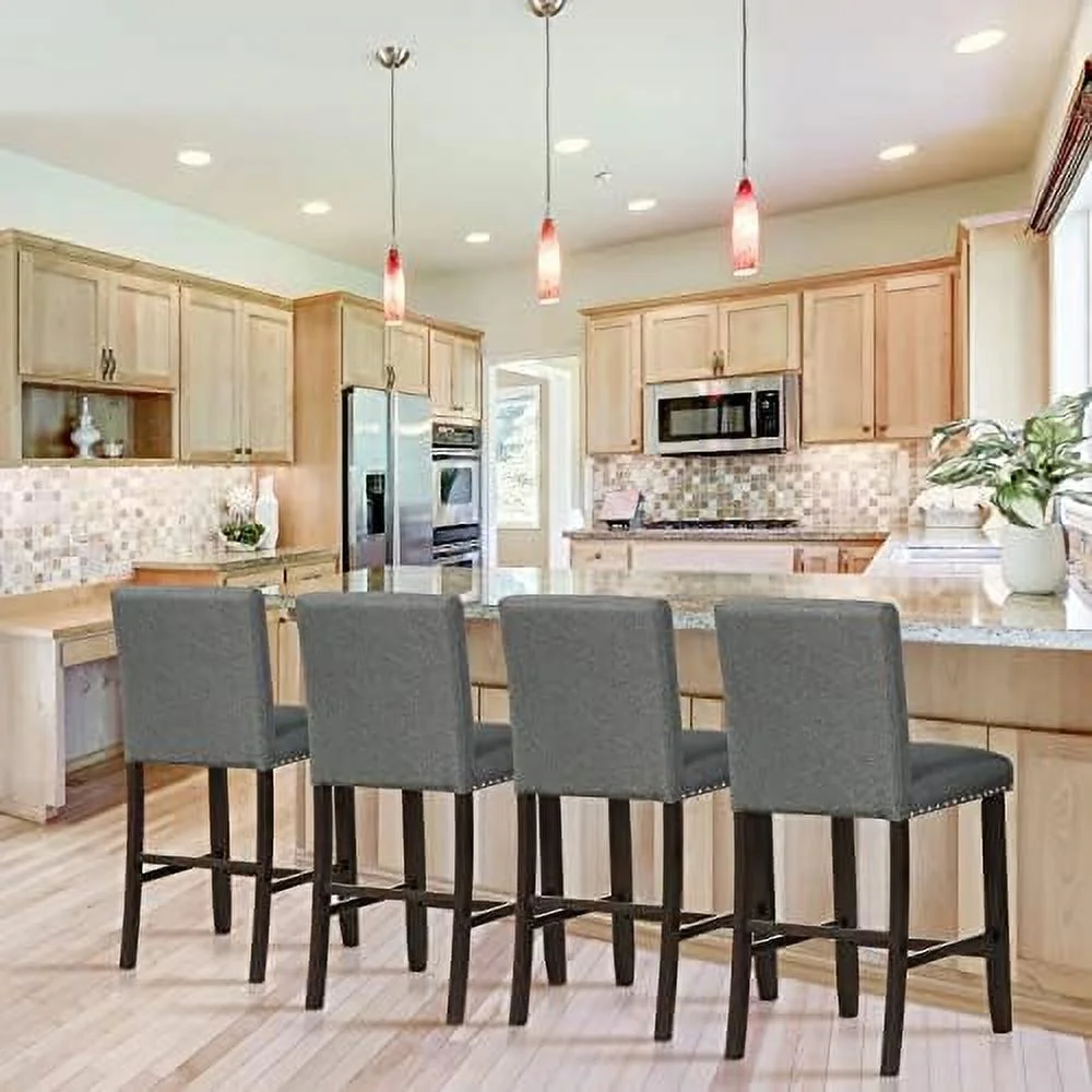TJUNBOLIFE Upholstered Stools Set of 4 25.5" Counter Height PVC Leather Accent Chairs Mid-Back Armless Breakfast Chairs Modern Side Chairs for Dining Room Kitchen Restaurant B - Curated Treasures Market