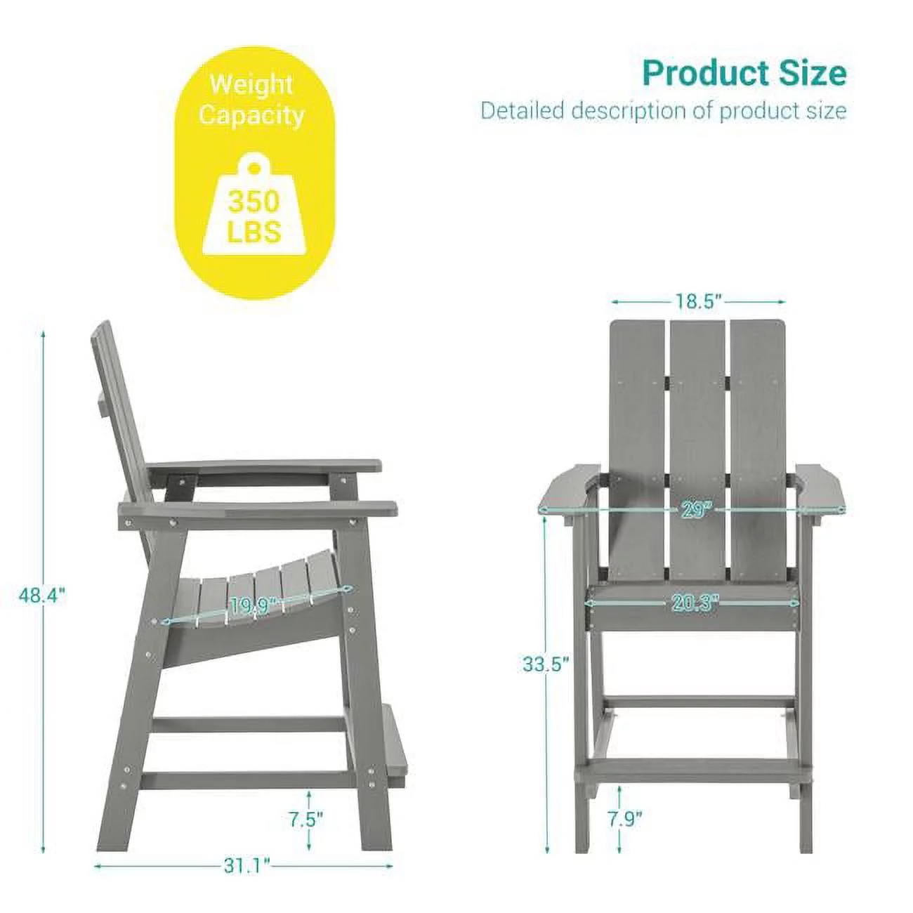 SANLUCE Plastic Adirondack Chair Patio Chair with Big Armrests Fire Pit Chair Weather Resistant, Outdoor Bar Stool, Light Gray - Curated Treasures Market