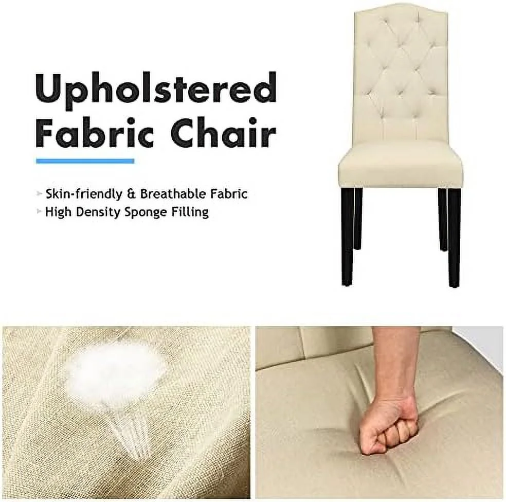 TJUNBOLIFE Fabric Dining Chairs - Classic High Back Kitchen Living Room Chiars with Solid Rubber Wood Legs Upholstered Padded Chair Grey - Curated Treasures Market