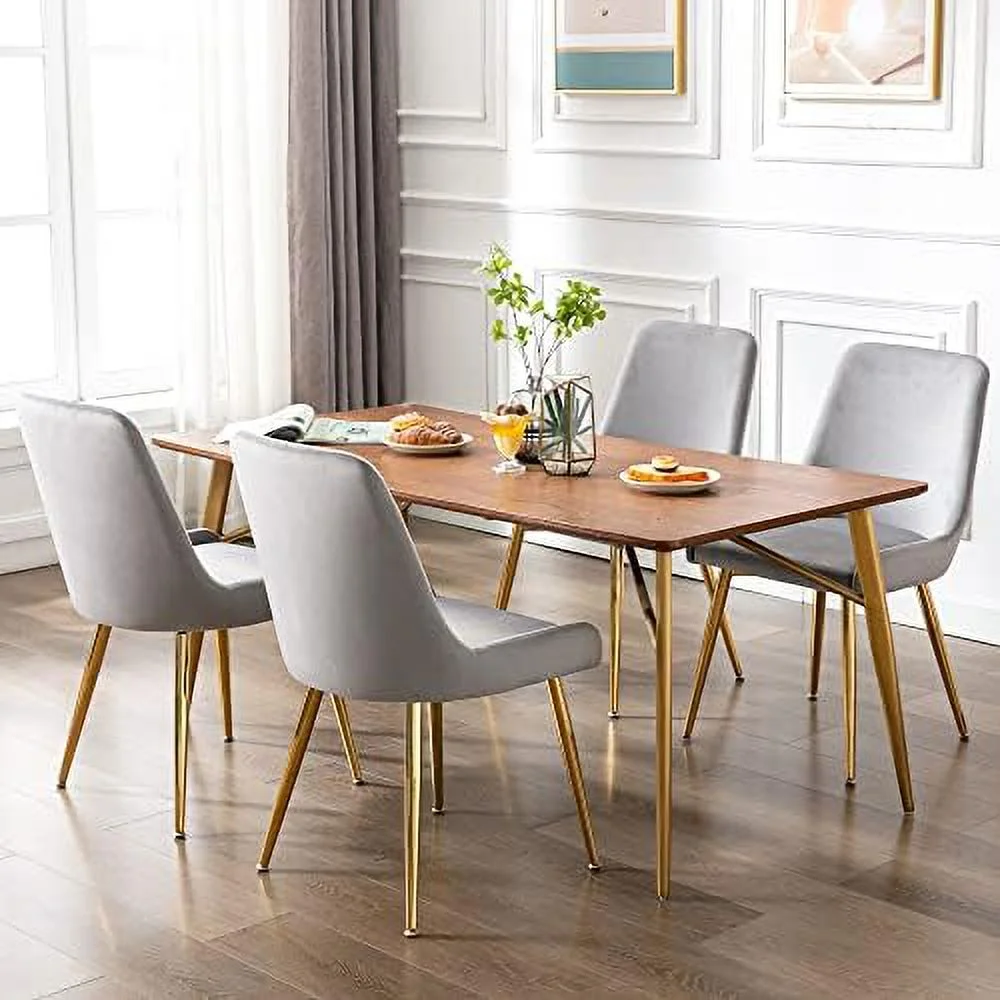 TJUNBOLIFE Modern Dining Chairs Velvet Upholstered Accent Chairs Contemporary Kitchen Side Chair Shiny Gold Legs Cream Dining Chairs - Curated Treasures Market