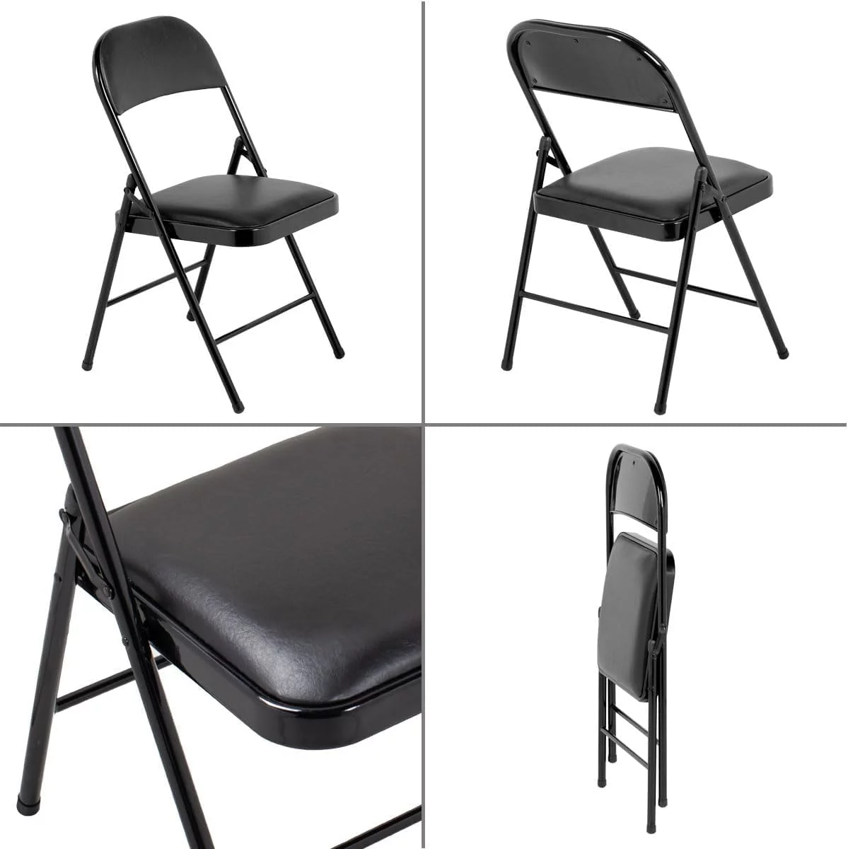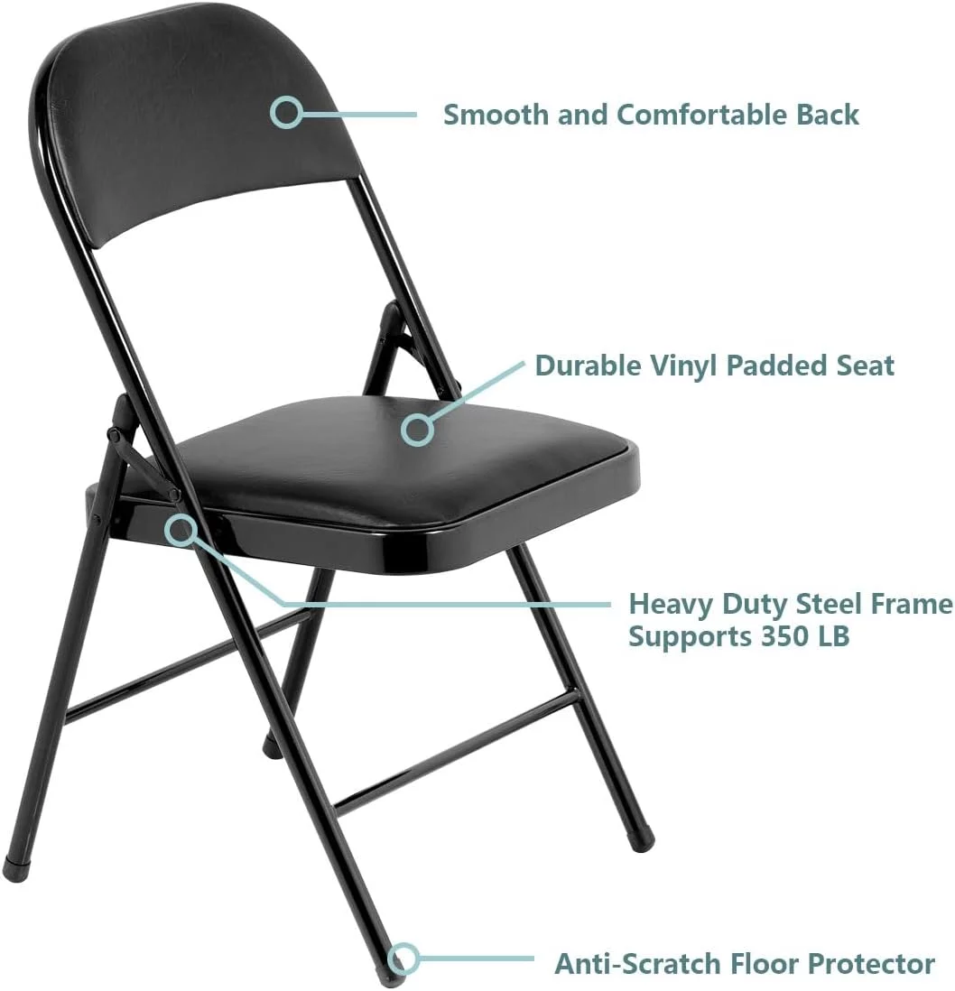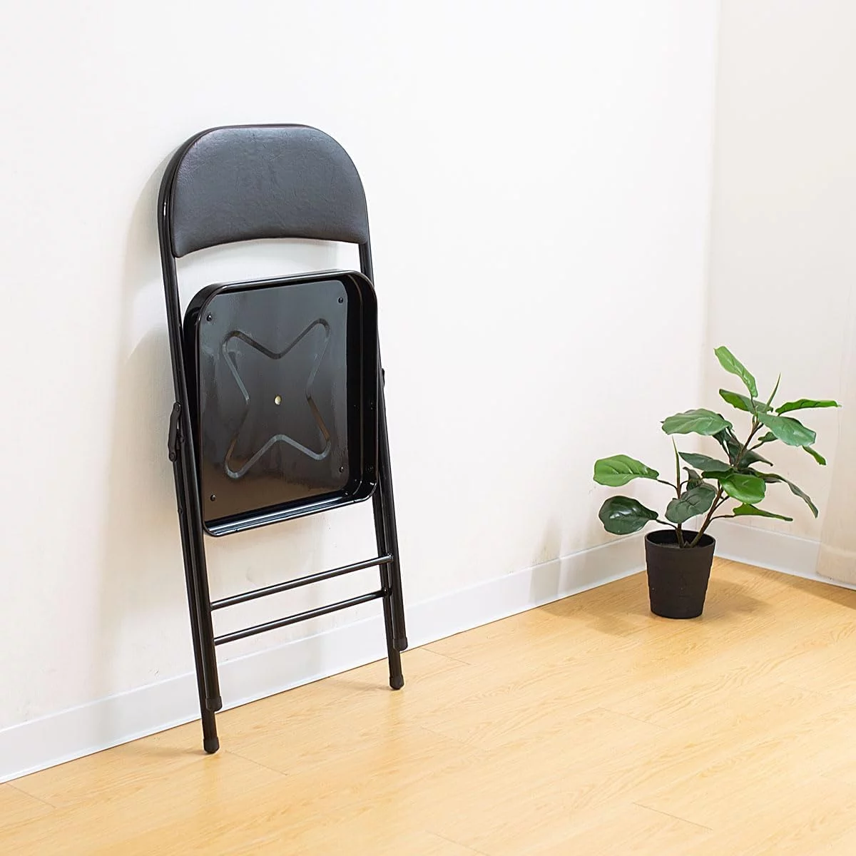 4 Pack Folding Chairs with Padded Cushion and Back, Metal Chairs with Comfortable Cushion and Durable Steel Frame for Home and Office, Black - Curated Treasures Market