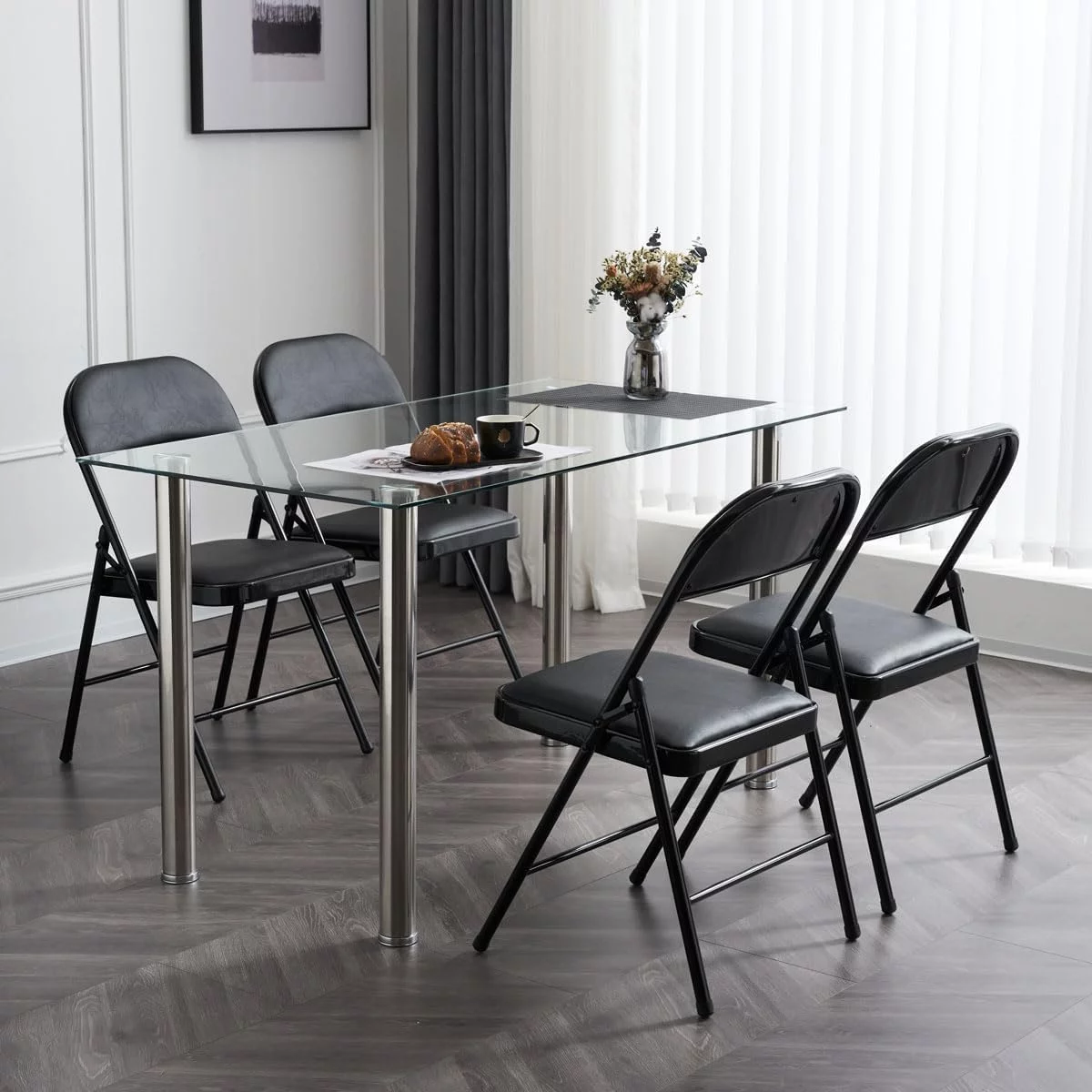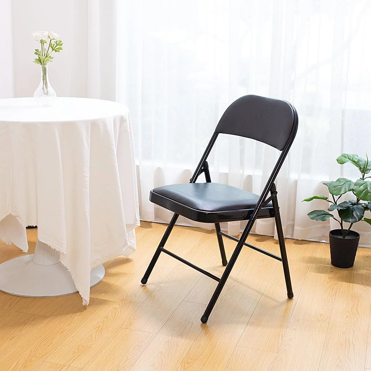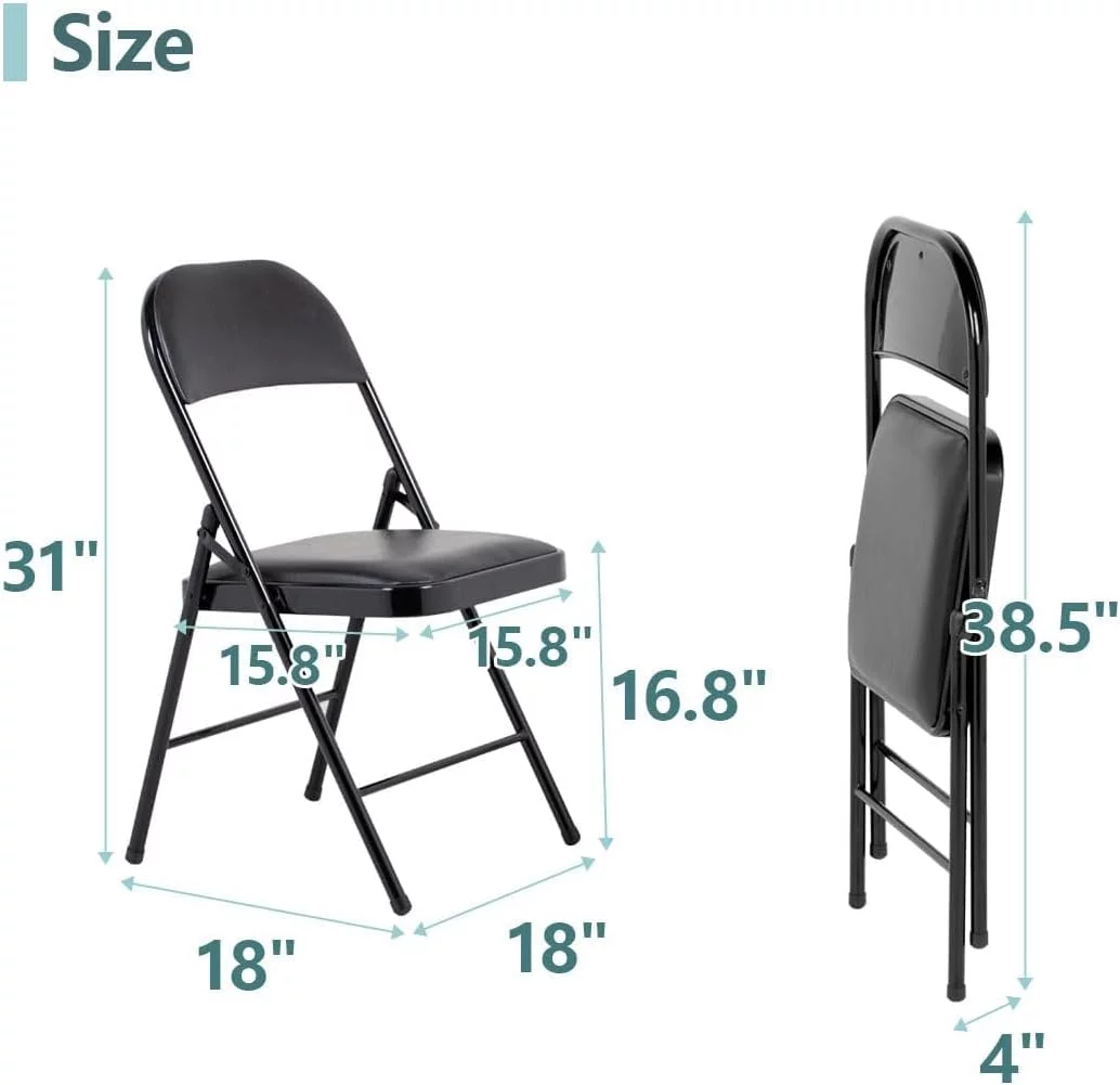 4 Pack Folding Chairs with Padded Cushion and Back, Metal Chairs with Comfortable Cushion and Durable Steel Frame for Home and Office, Black - Curated Treasures Market