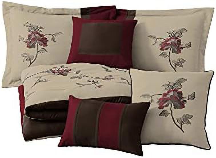 TJRUOPG Vienna 7-Piece Embroidered Floral Comforter Set (Queen Burgundy Taupe Brown) - Curated Treasures Market