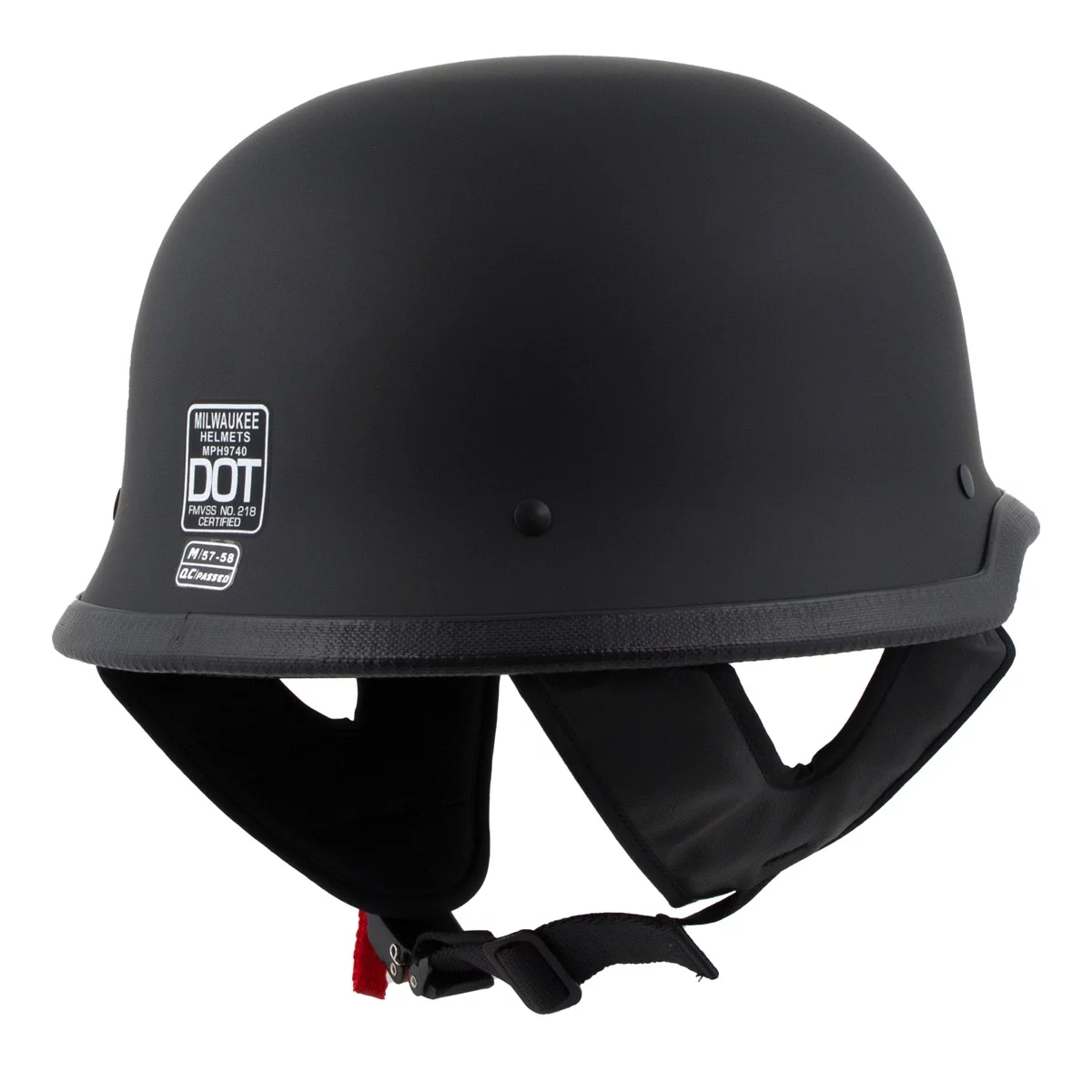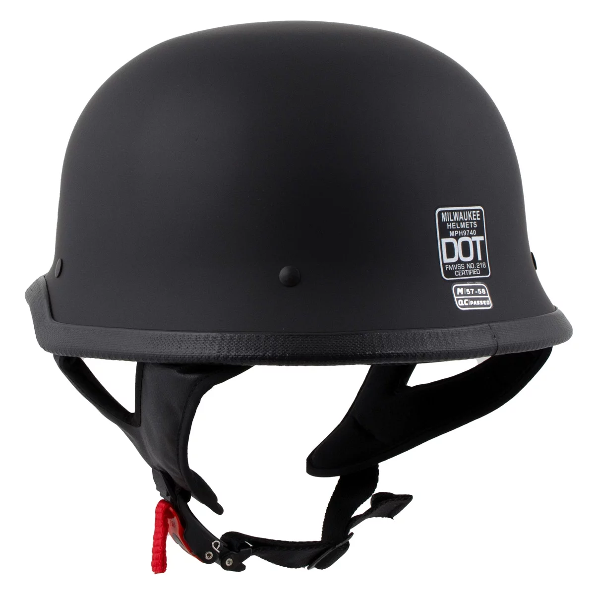 Milwaukee Helmets MPH9740DOT 'Motorrad' DOT German Style Matte Black Half Face Motorcycle Helmet for Men and Women Biker X-Large - Curated Treasures Market