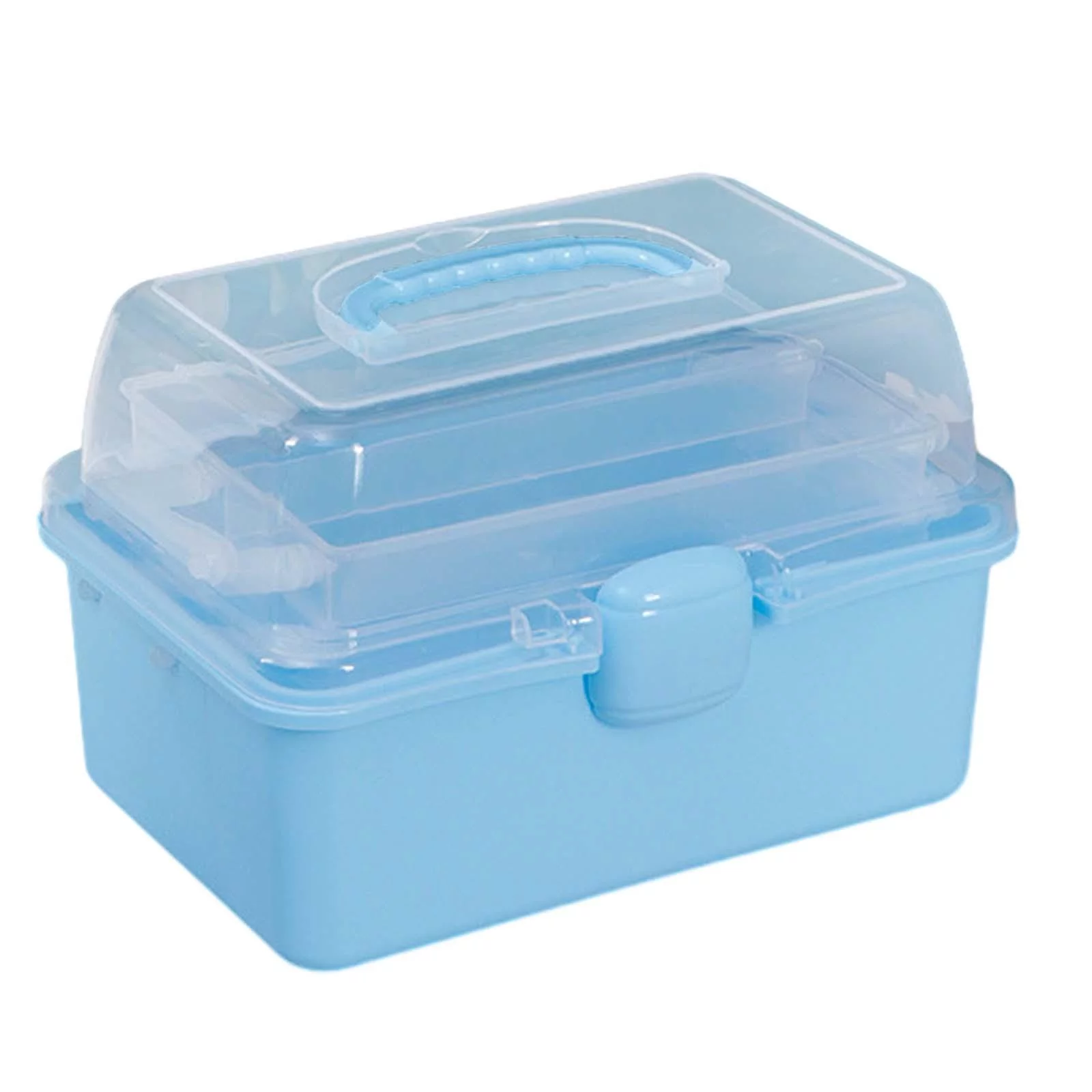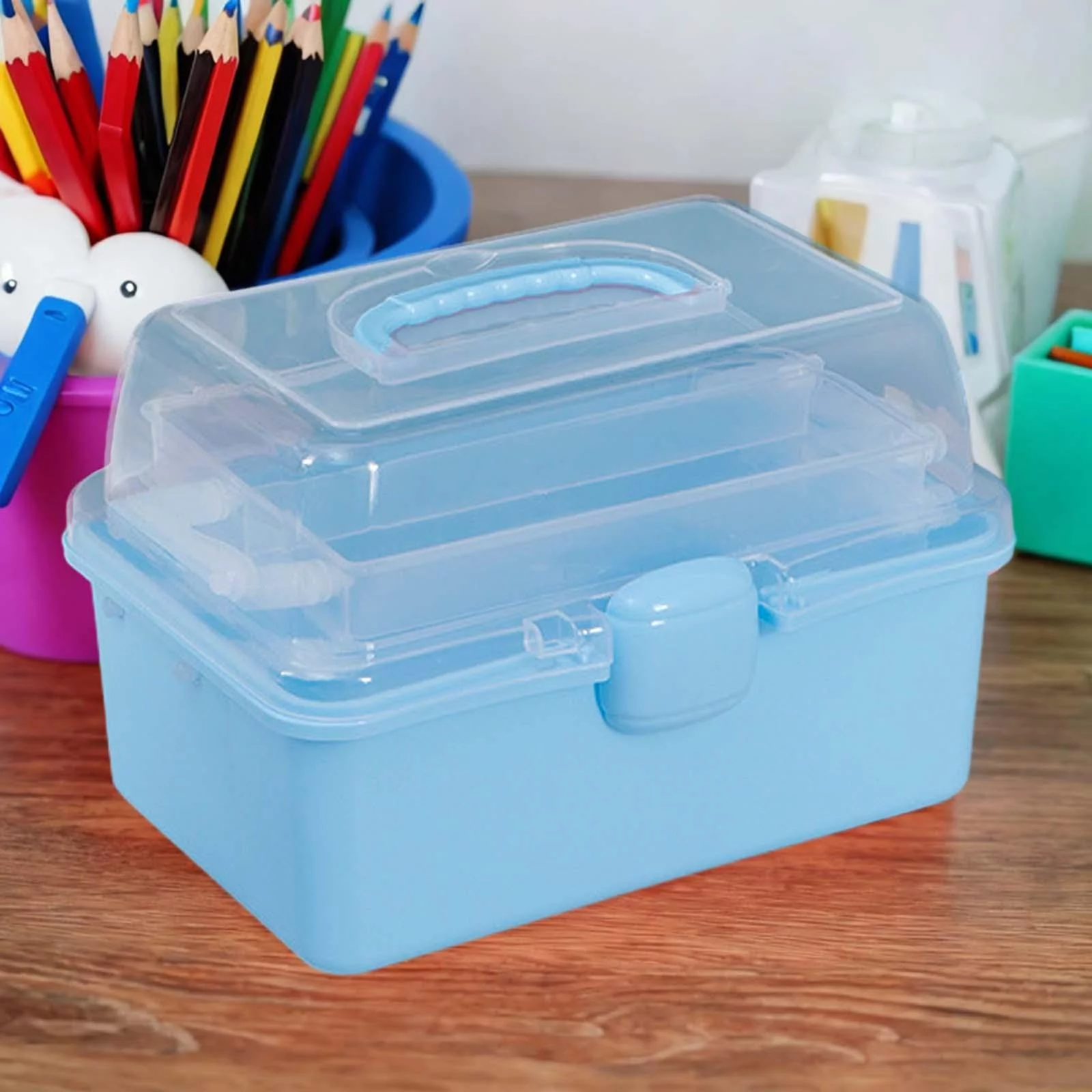 Clear Storage Boxes 3 Layer Compartments Stackable Multifunctional with Lid and Handle Organiser Storage Case for Dorm Office Blue - Curated Treasures Market