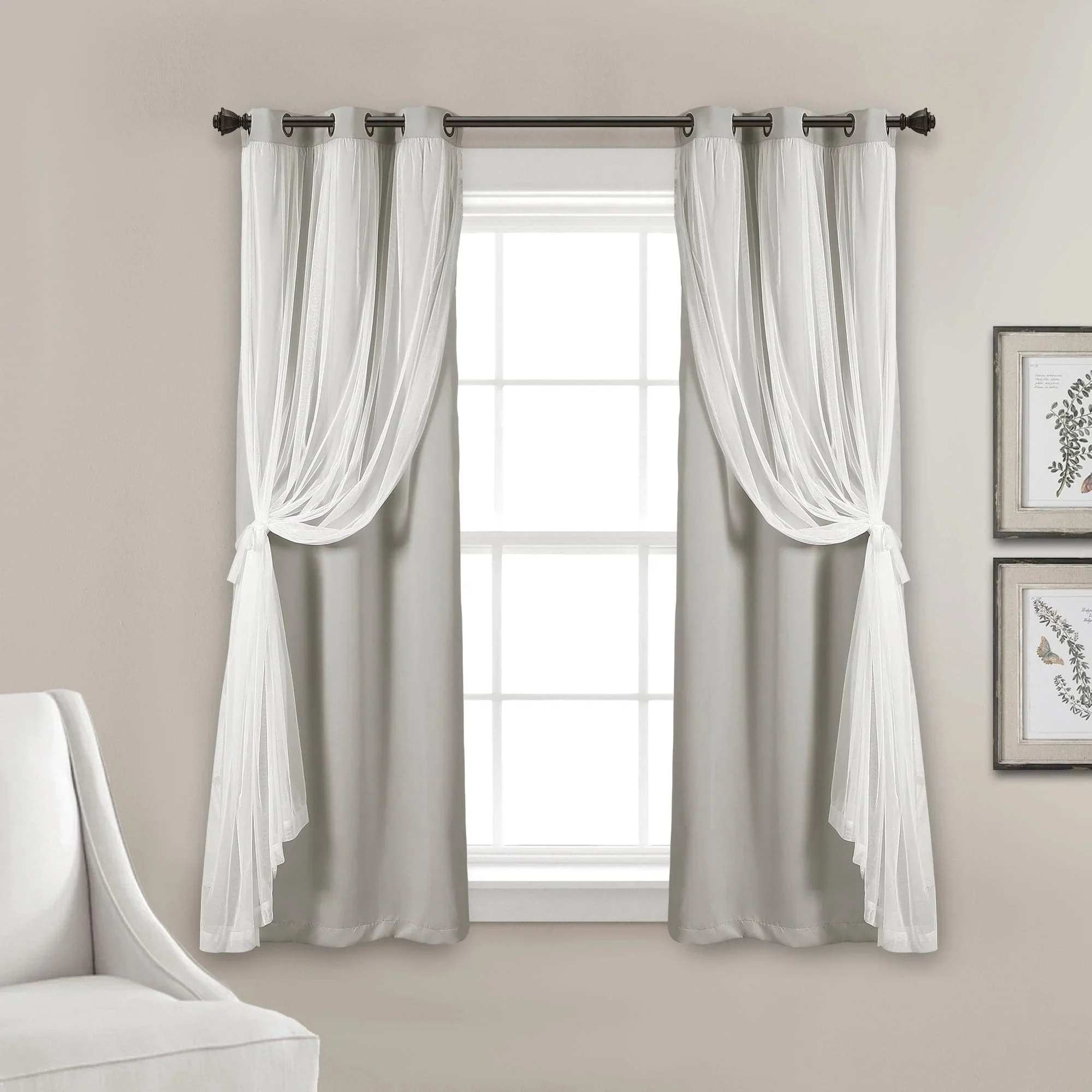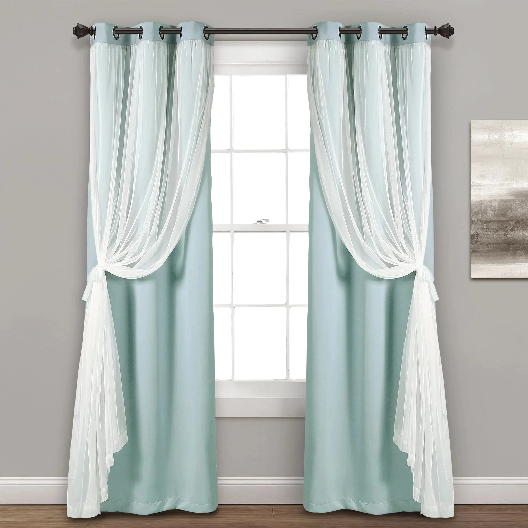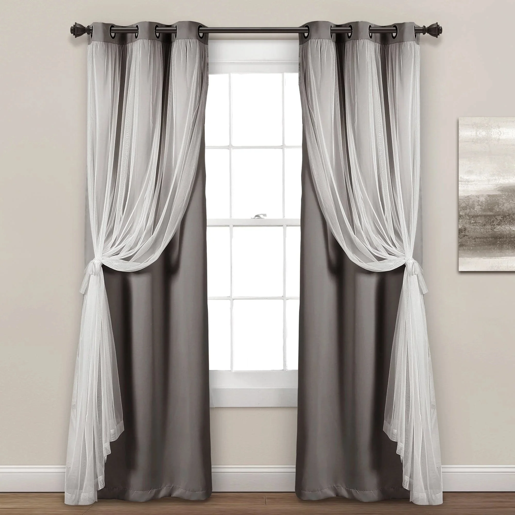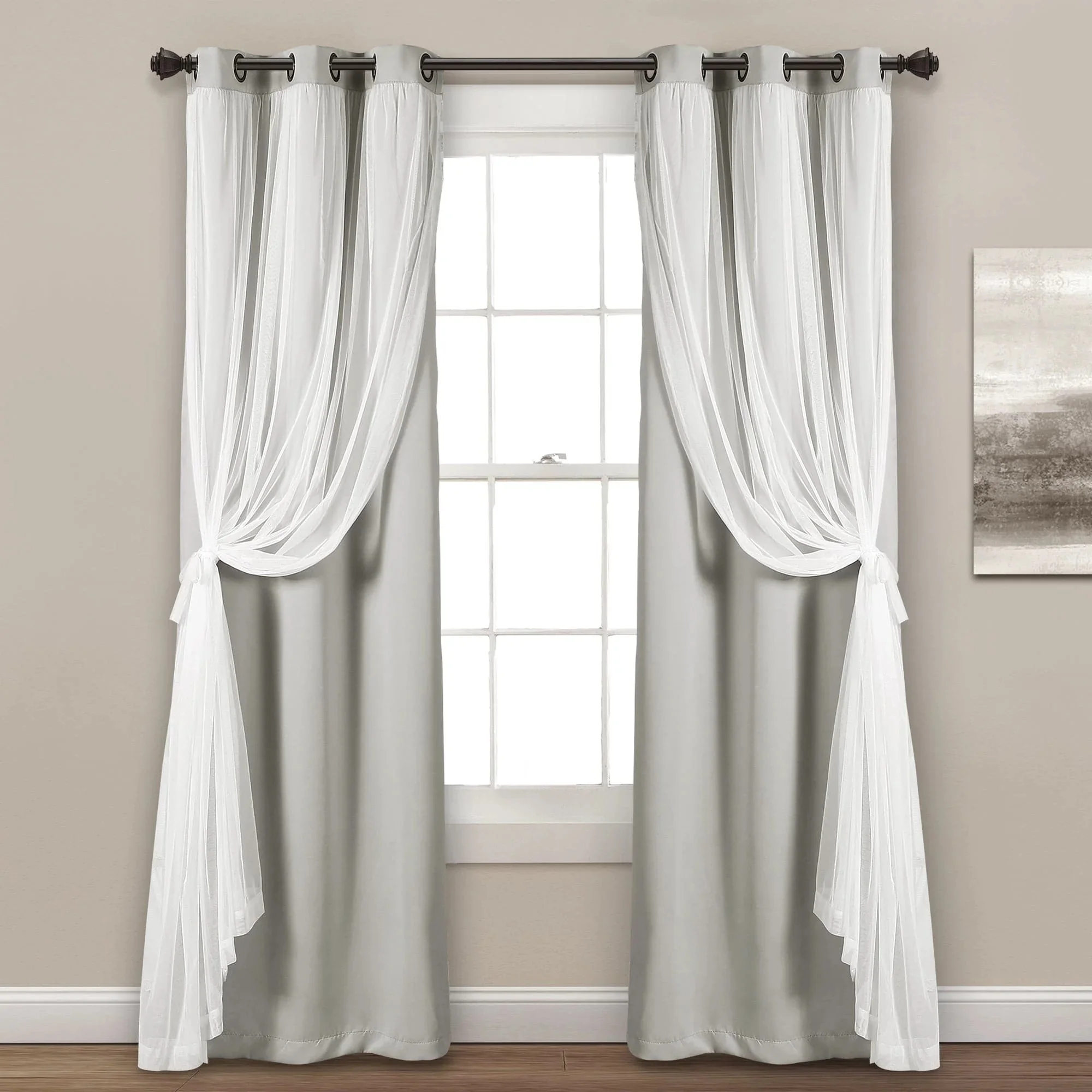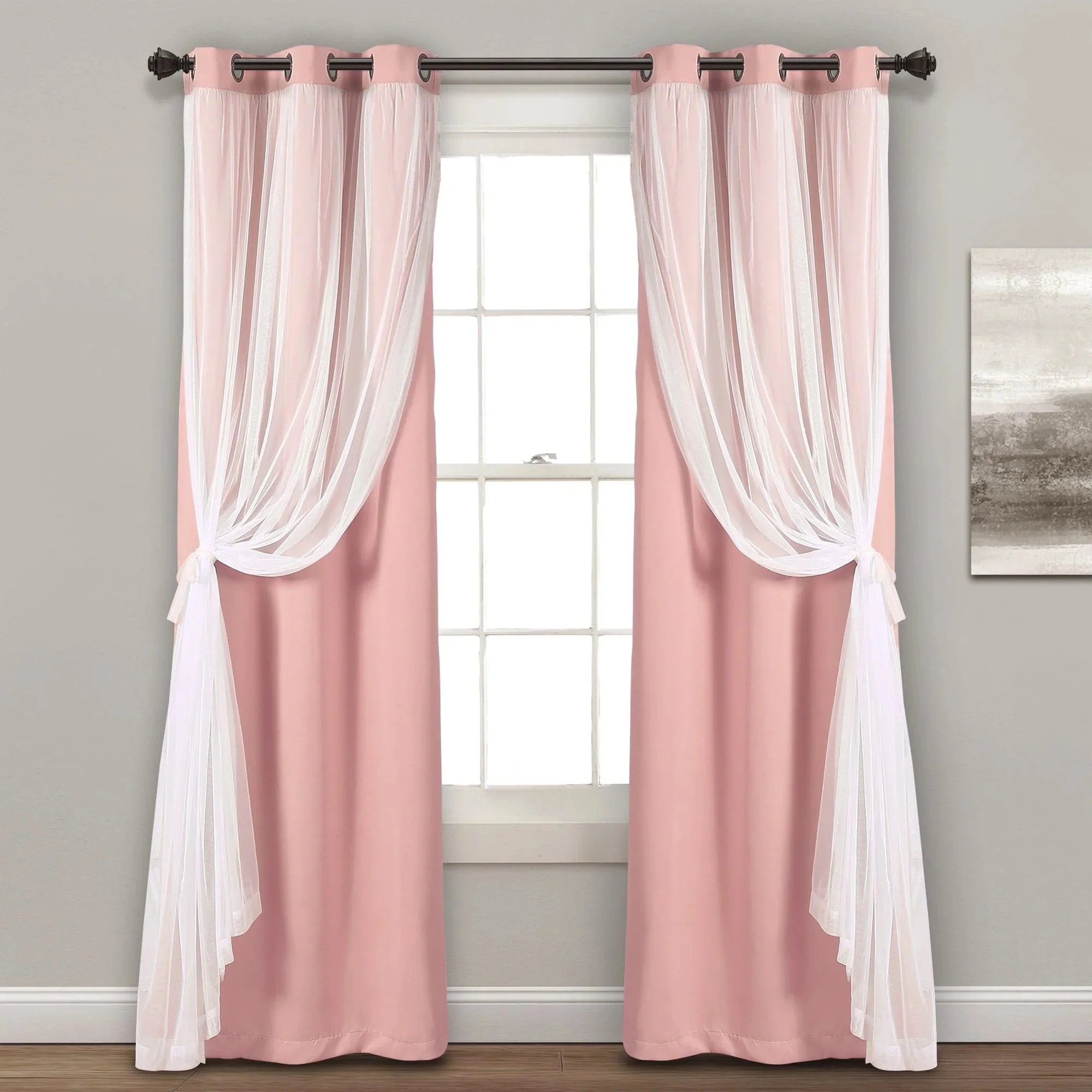 Lush Decor Sheer Grommet Curtains Panel with Insulated Blackout Lining, Room Darkening Window Curtain Set (Pair), 38"W x 84"L, Wheat - Curated Treasures Market