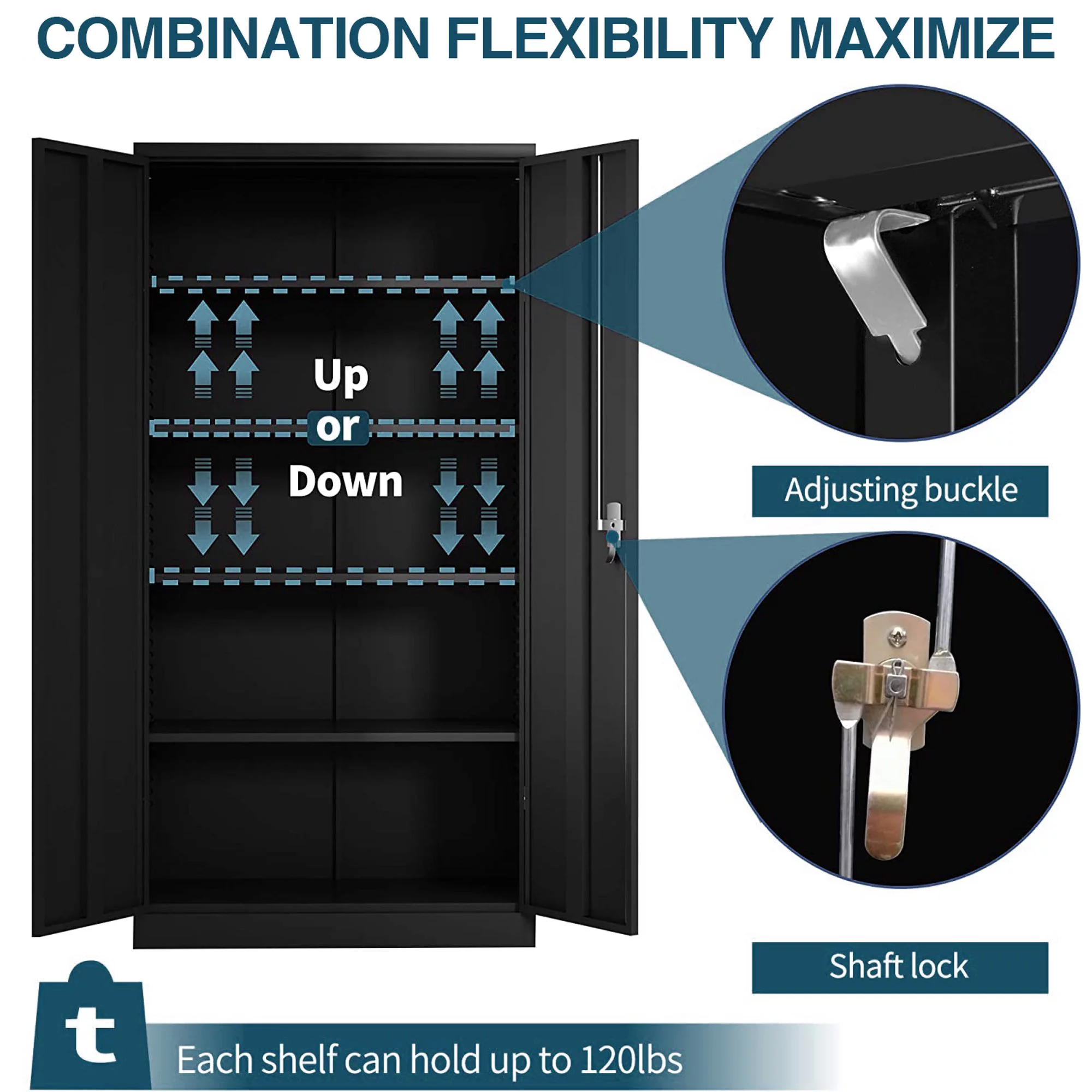 Leariso 72"H Metal Garage Storage Cabinet with Adjustable Shelves For Home Office,Black - Curated Treasures Market