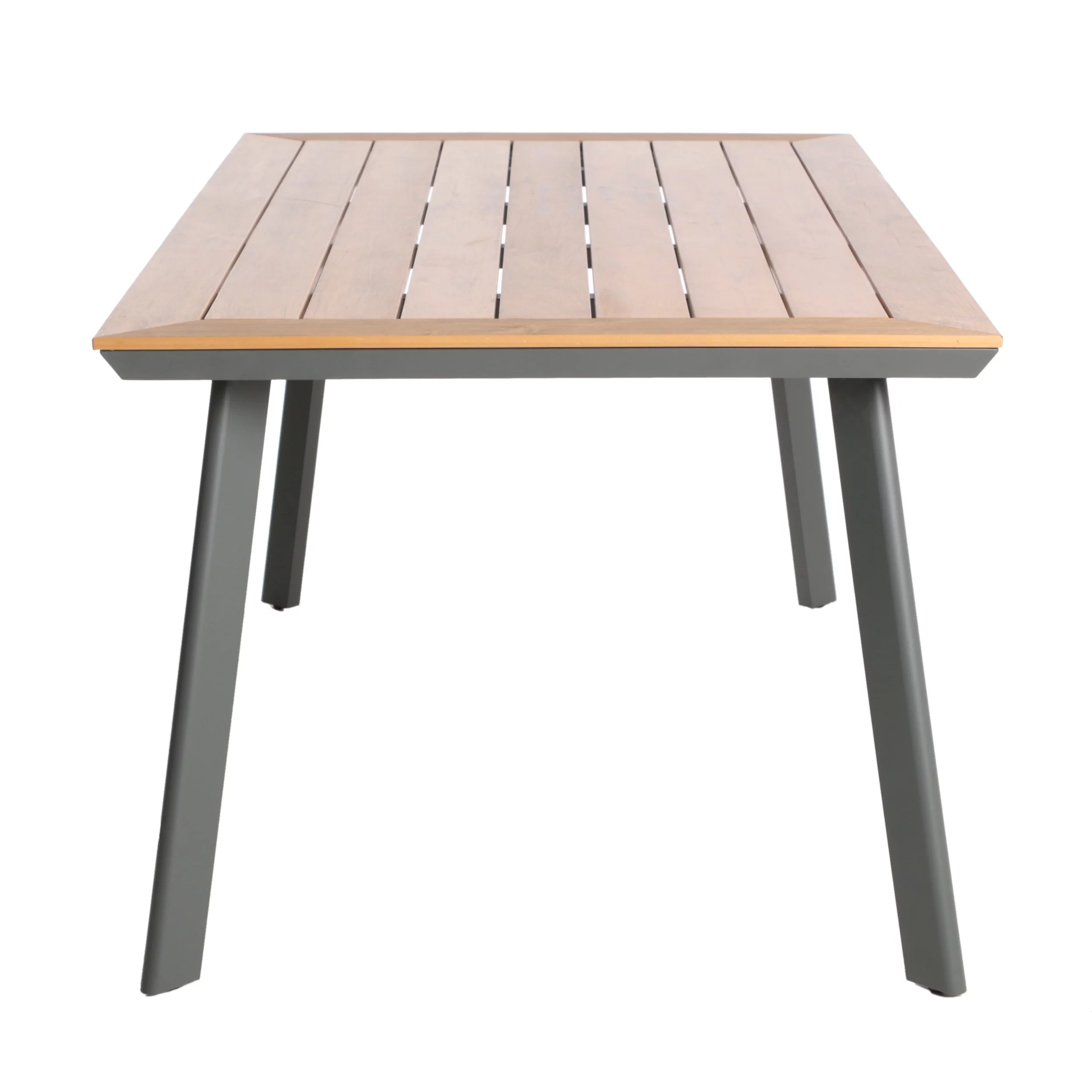 Tabby Outdoor Aluminum and Faux Wood Dining Table, Natural and Gray - Curated Treasures Market