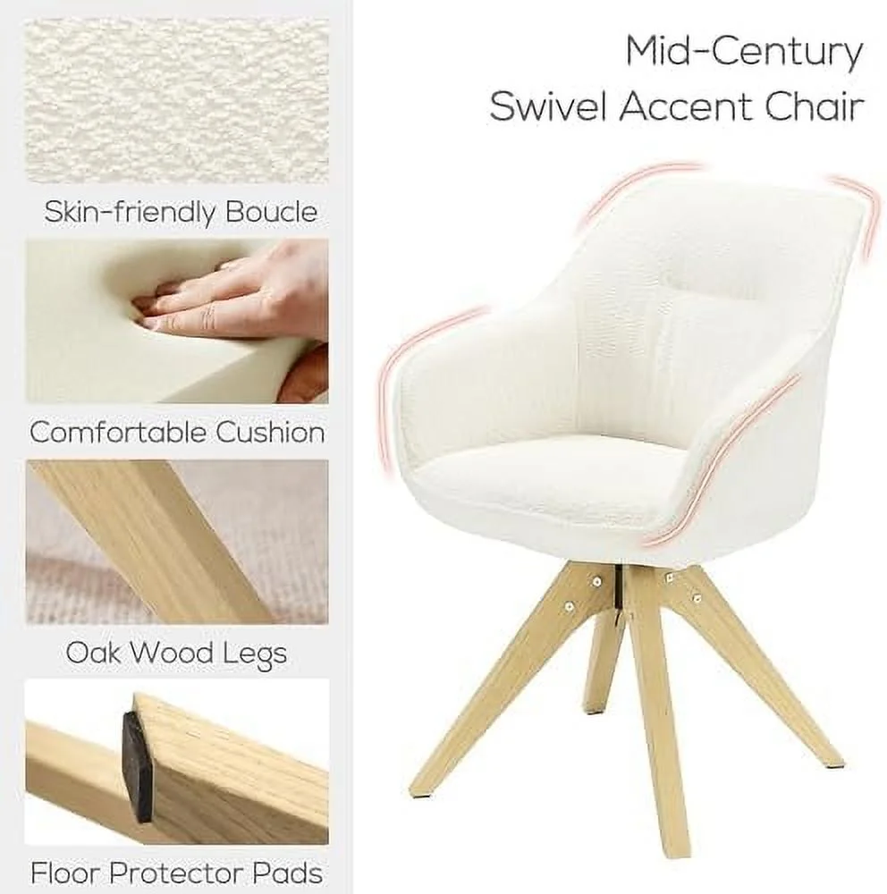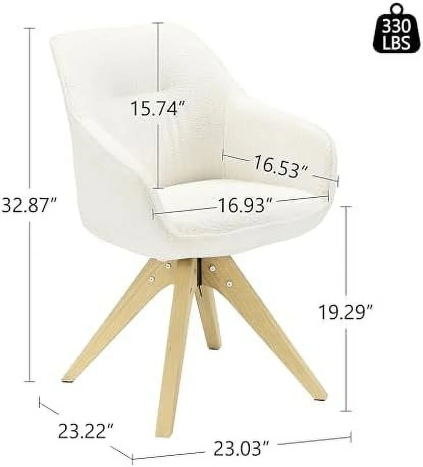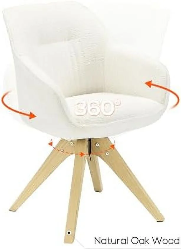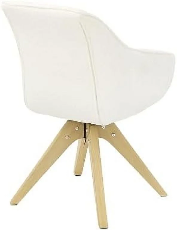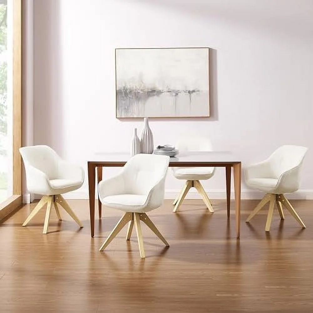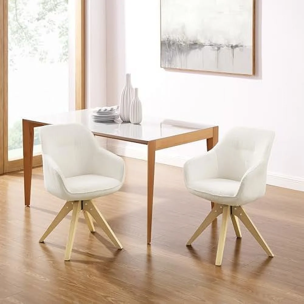 TJUNBOLIFE Dining Chair Mid Century Modern Fabric Upholstered Swivel Dining Room Chair with Oak Wood Legs Leisure Side Chair with Arms for Living Room Off White - Curated Treasures Market