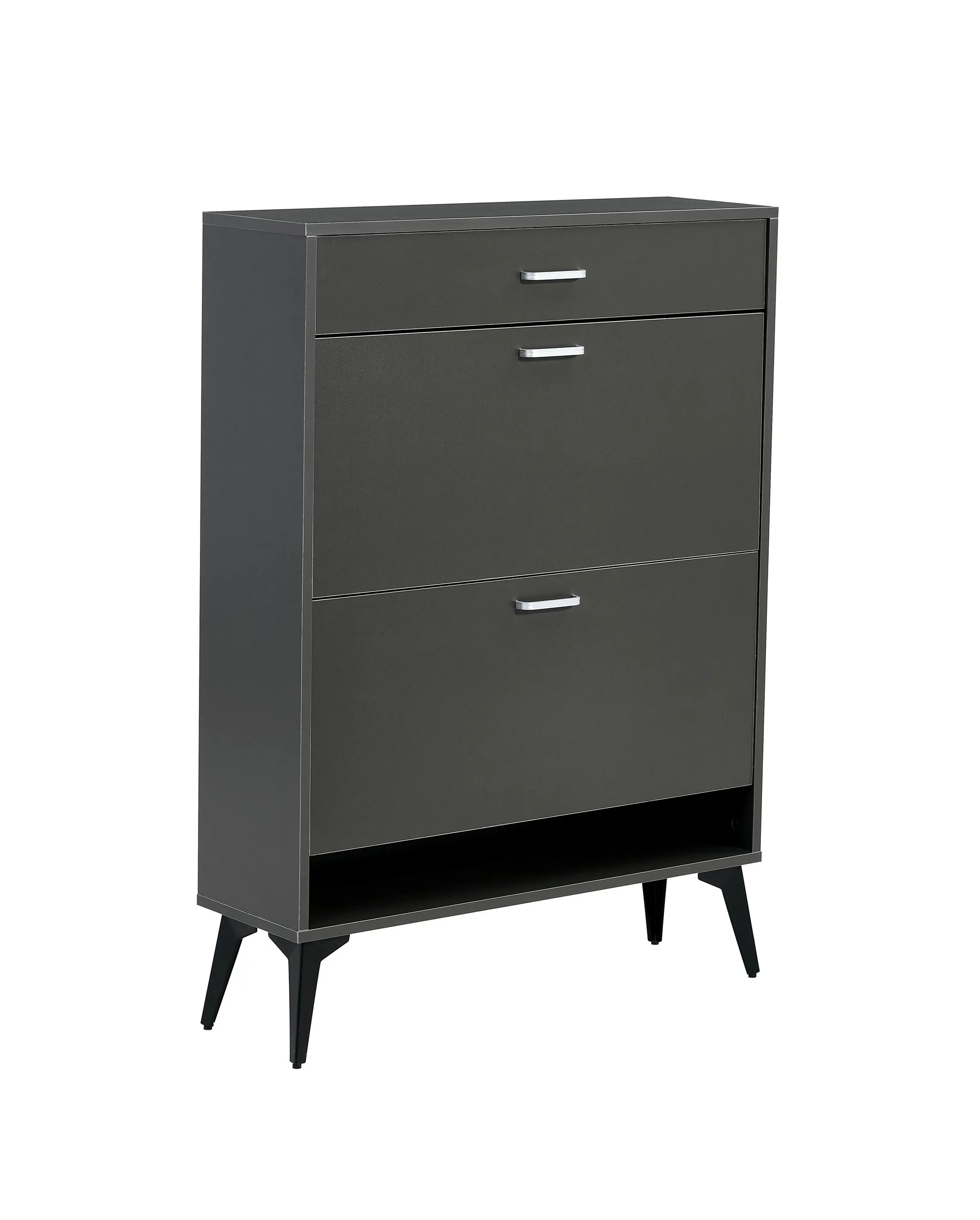 DEALTOPS Modern Freestanding Shoe Cabinet with 2 Flip Drawers and One Storage Drawer, Stylish Shoe Rack with Open Platform for Entryway - Gray - Curated Treasures Market