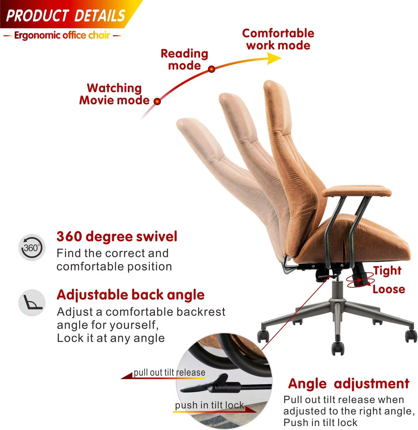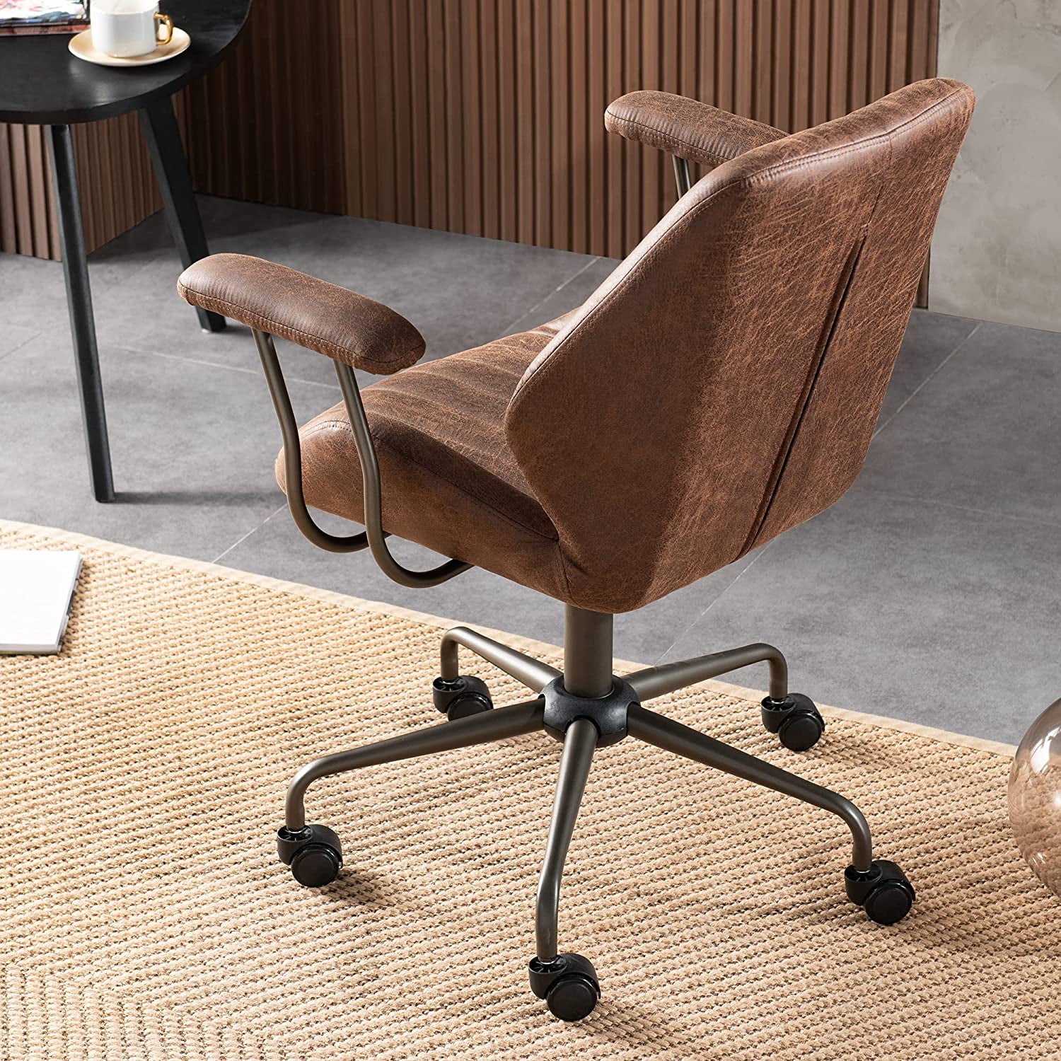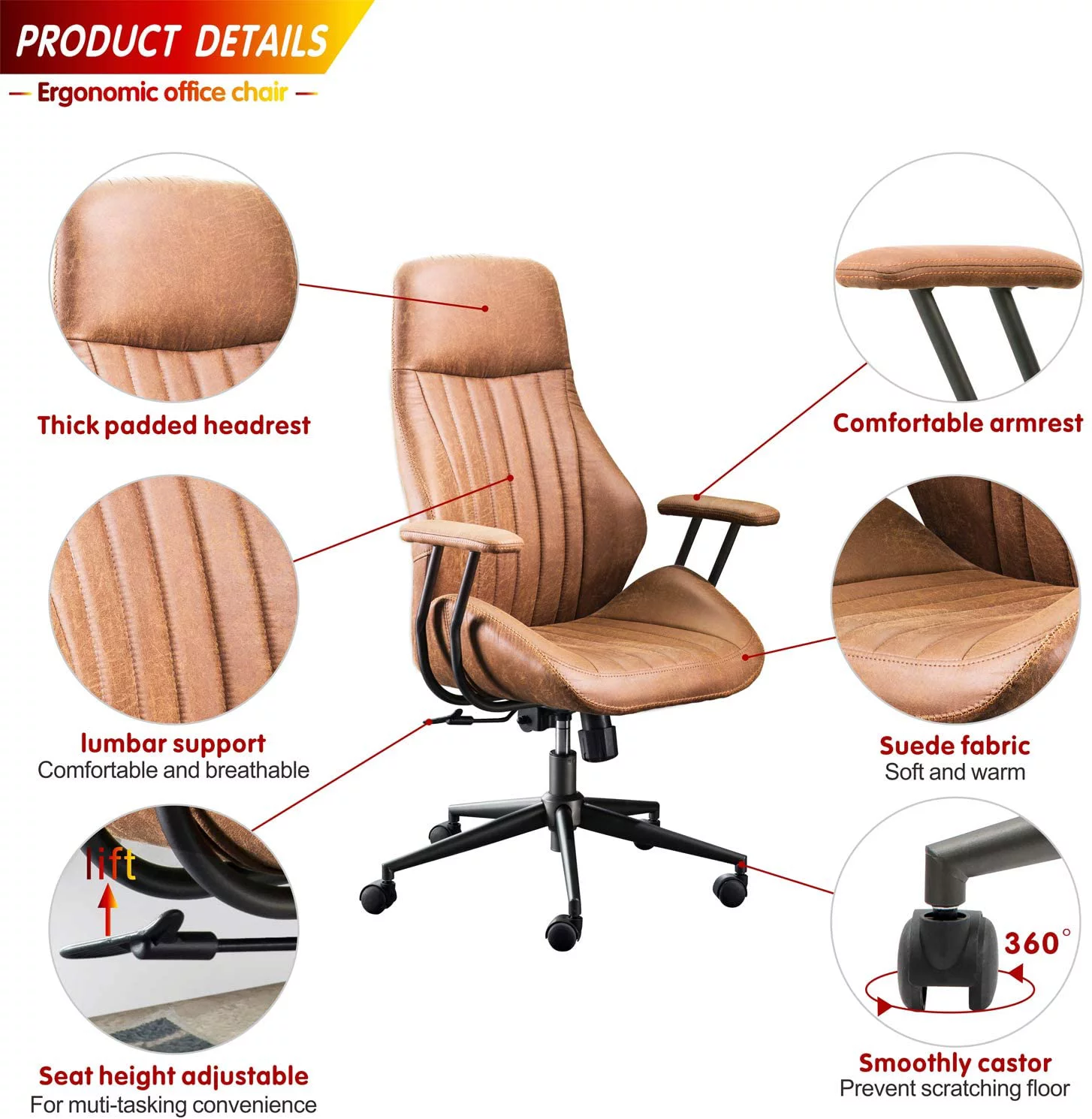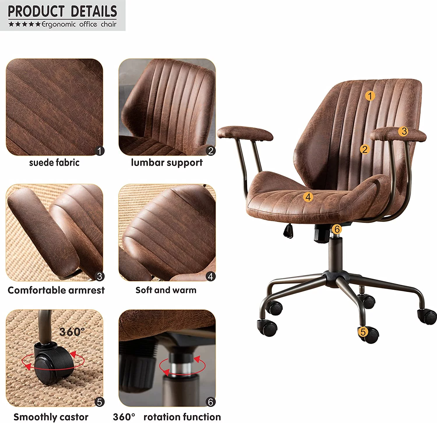 Ergonomic Office Chair, Modern Computer Desk Chair High Back Suede Fabric Desk Chair with Lumbar Support for Executive or Home Office (Brown) - Curated Treasures Market