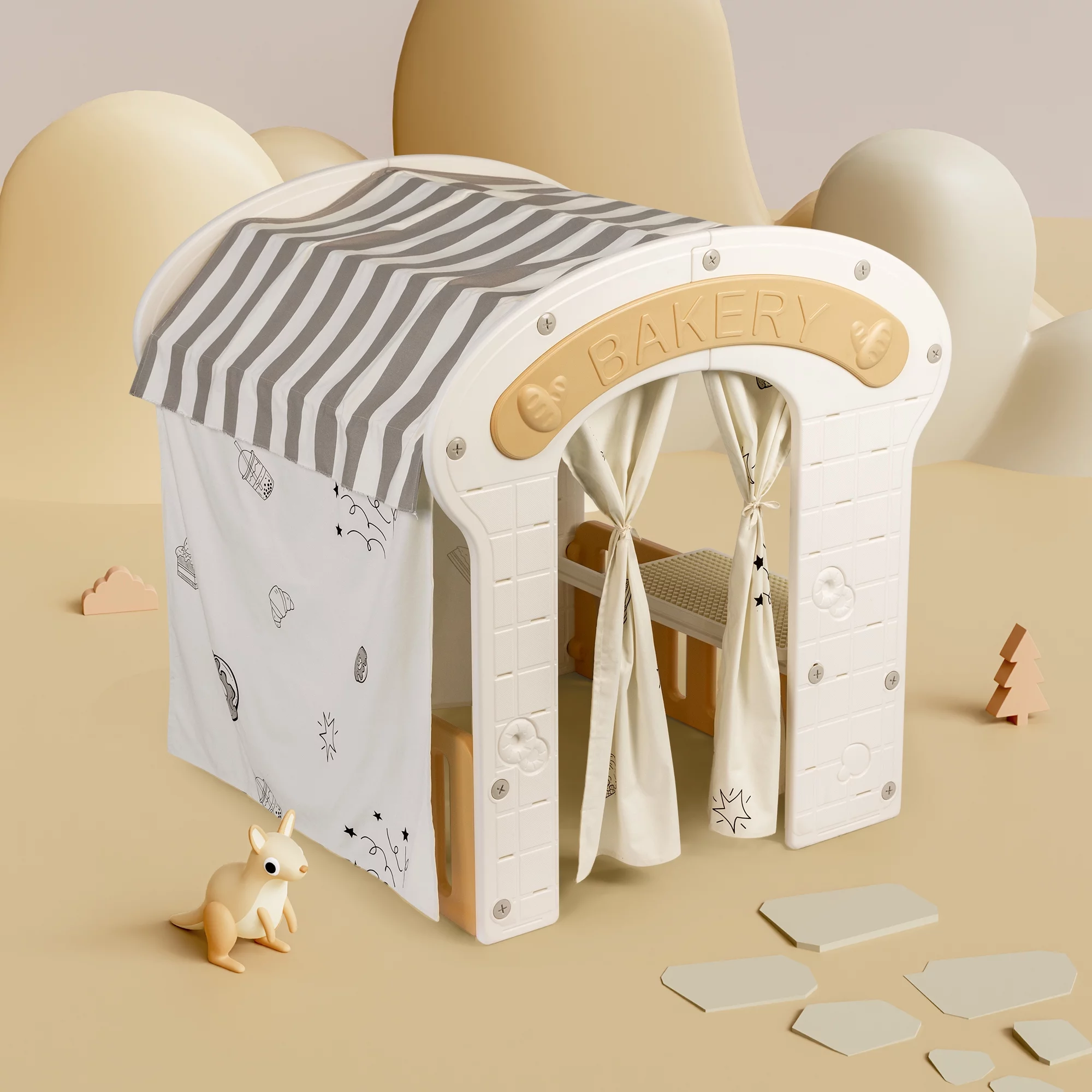 Duke Baby Cottage Bakery Play house, Indoor Outdoor Prented Playset for Toddlers 2 - 10 Years Old, Cream White - Curated Treasures Market