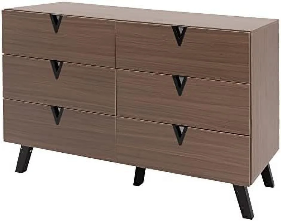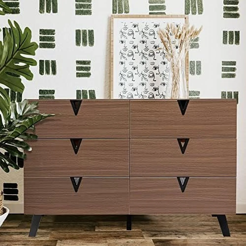 JYHOME 6 Drawer Dresser Mid-Century Modern Dresser Wide 6 Chest of Drawers Wooden Cabinet for Entryway Bedroom Living Room Hallway - Curated Treasures Market
