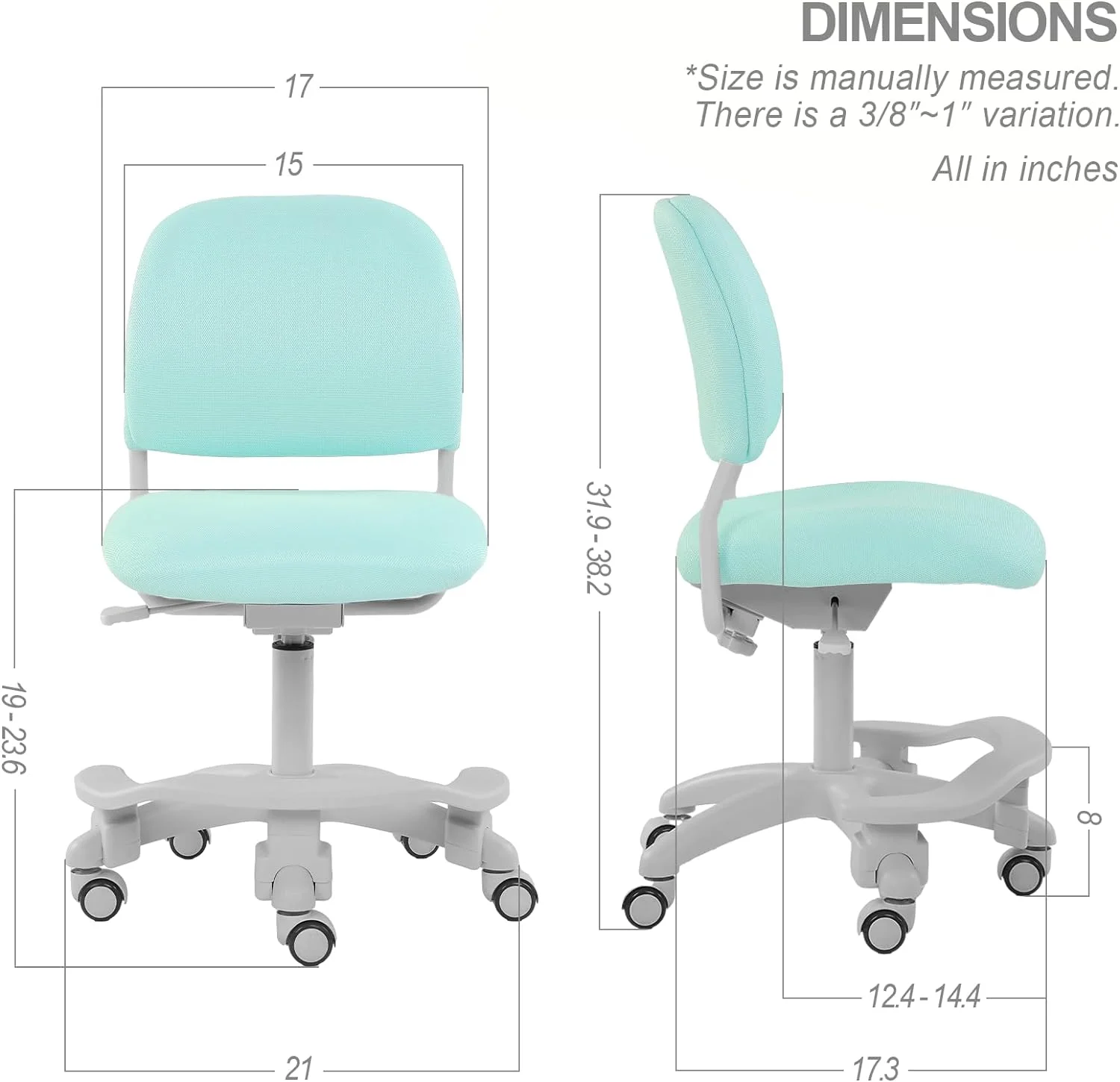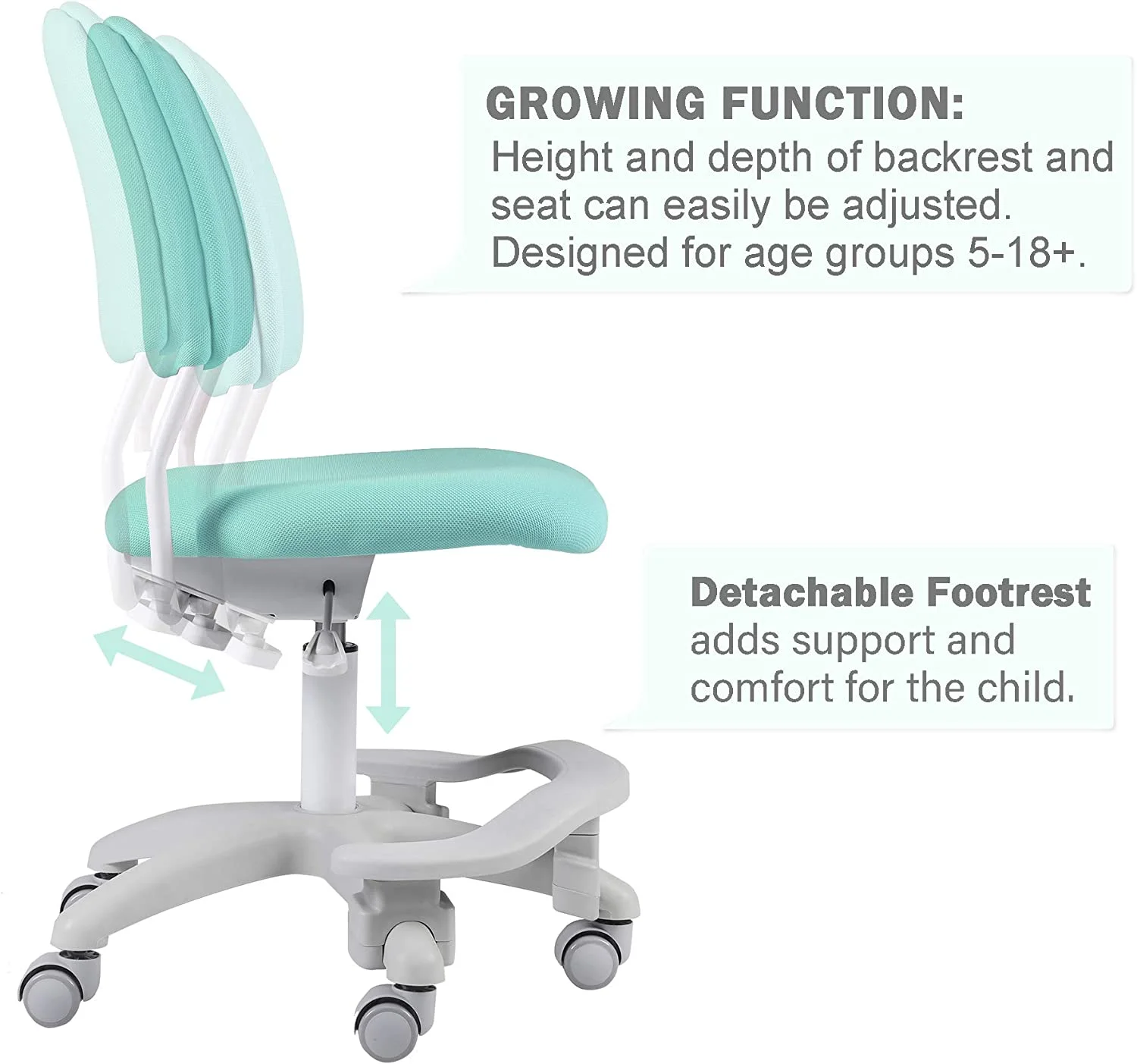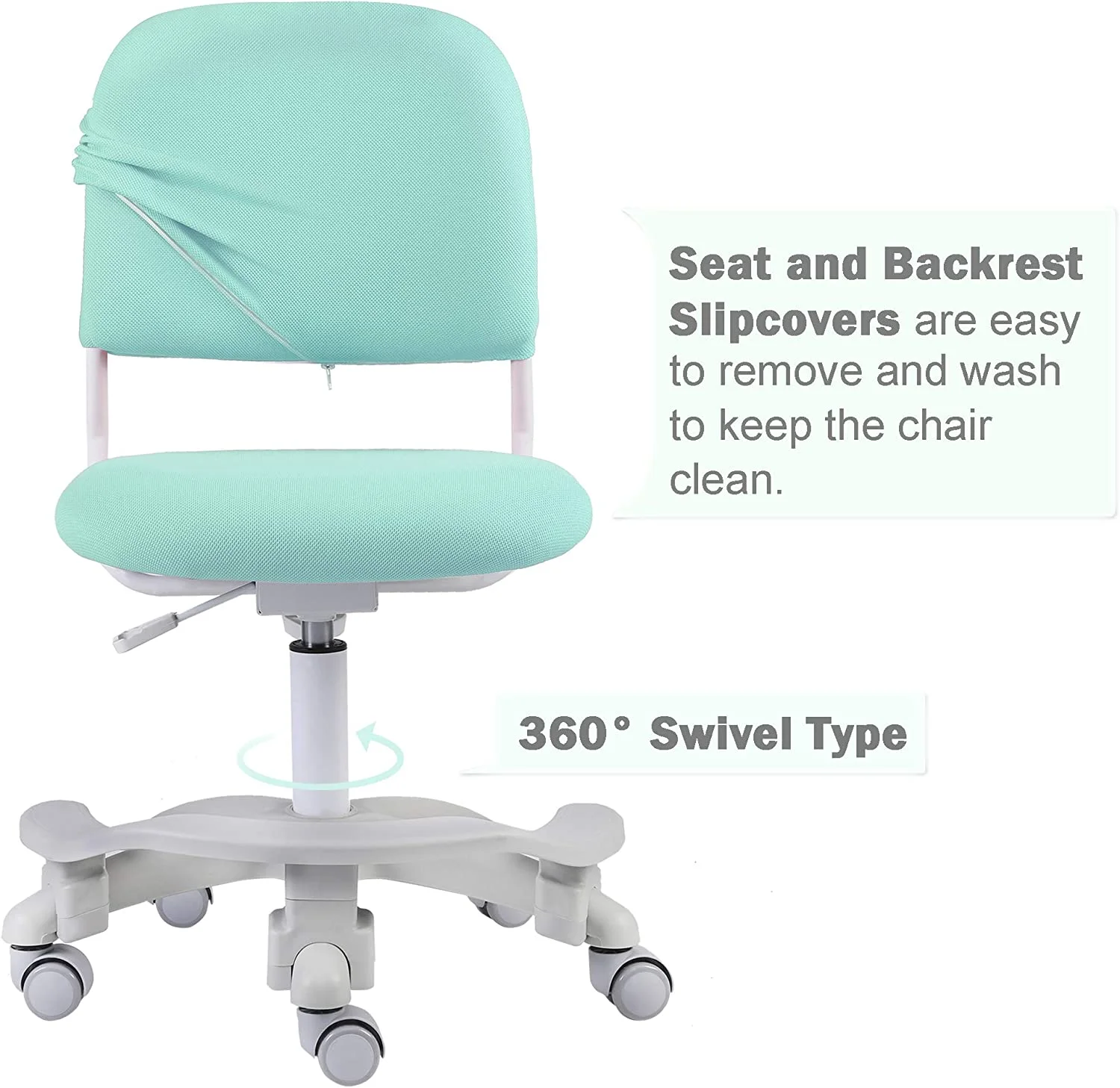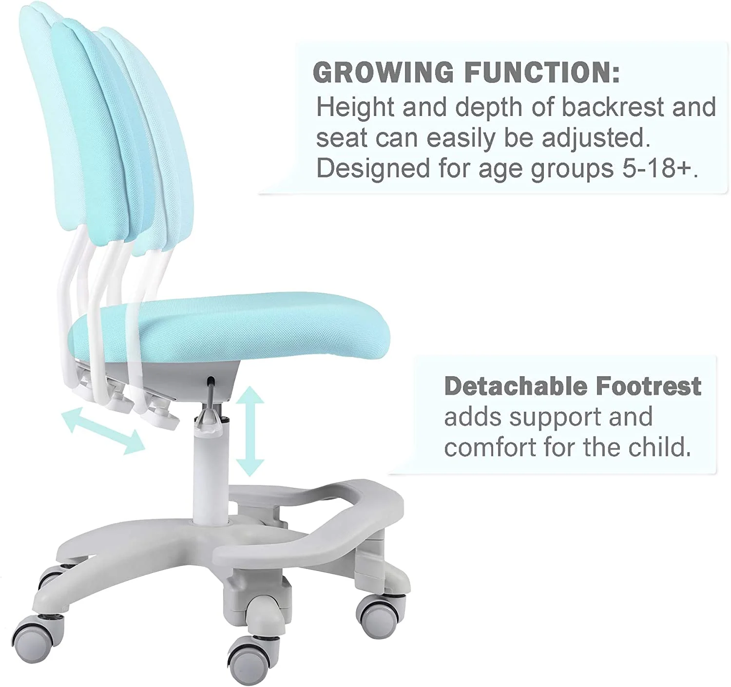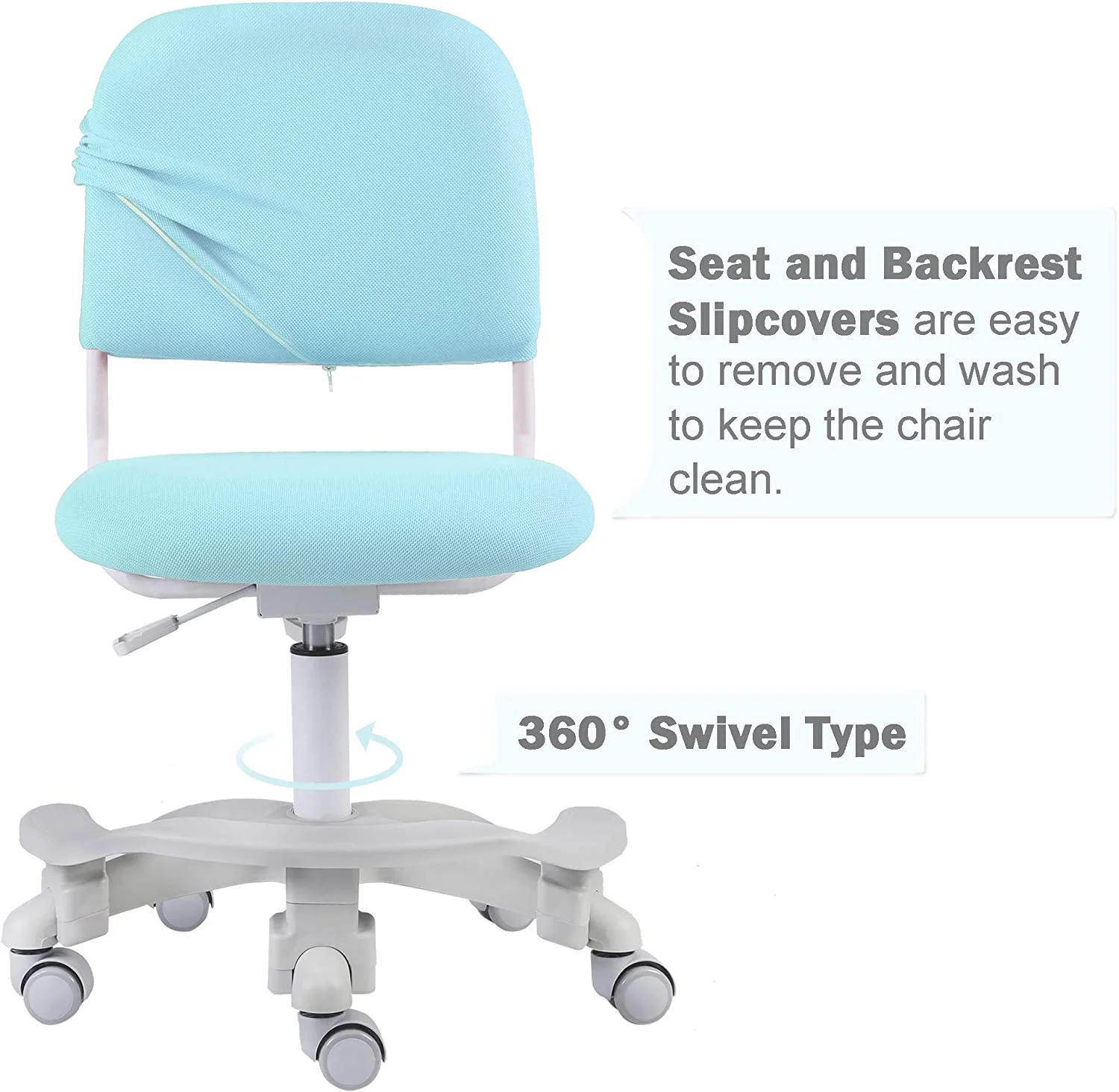 Ergonomic Kids Desk Chair, Child's Children Student Study Office Computer Chair, Adjustable Height and Seat Depth, Detachable Footrest and Lumbar Support (Blue, W/Chair Slipcovers) - Curated Treasures Market