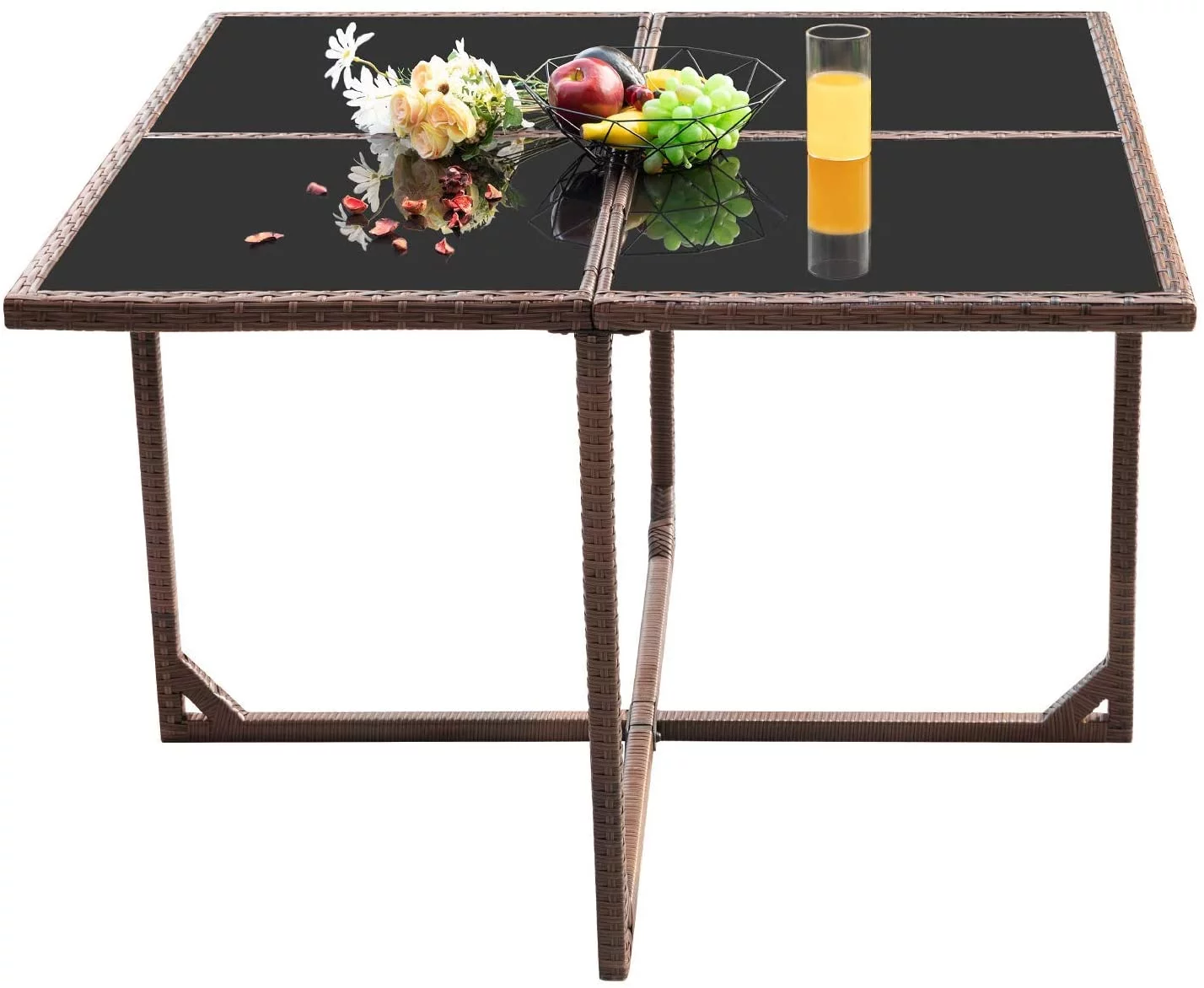 Vineego 42.8" Patio Square Table with Tempered Glass and Steel Frame Outdoor Wicker Dining Table - Curated Treasures Market