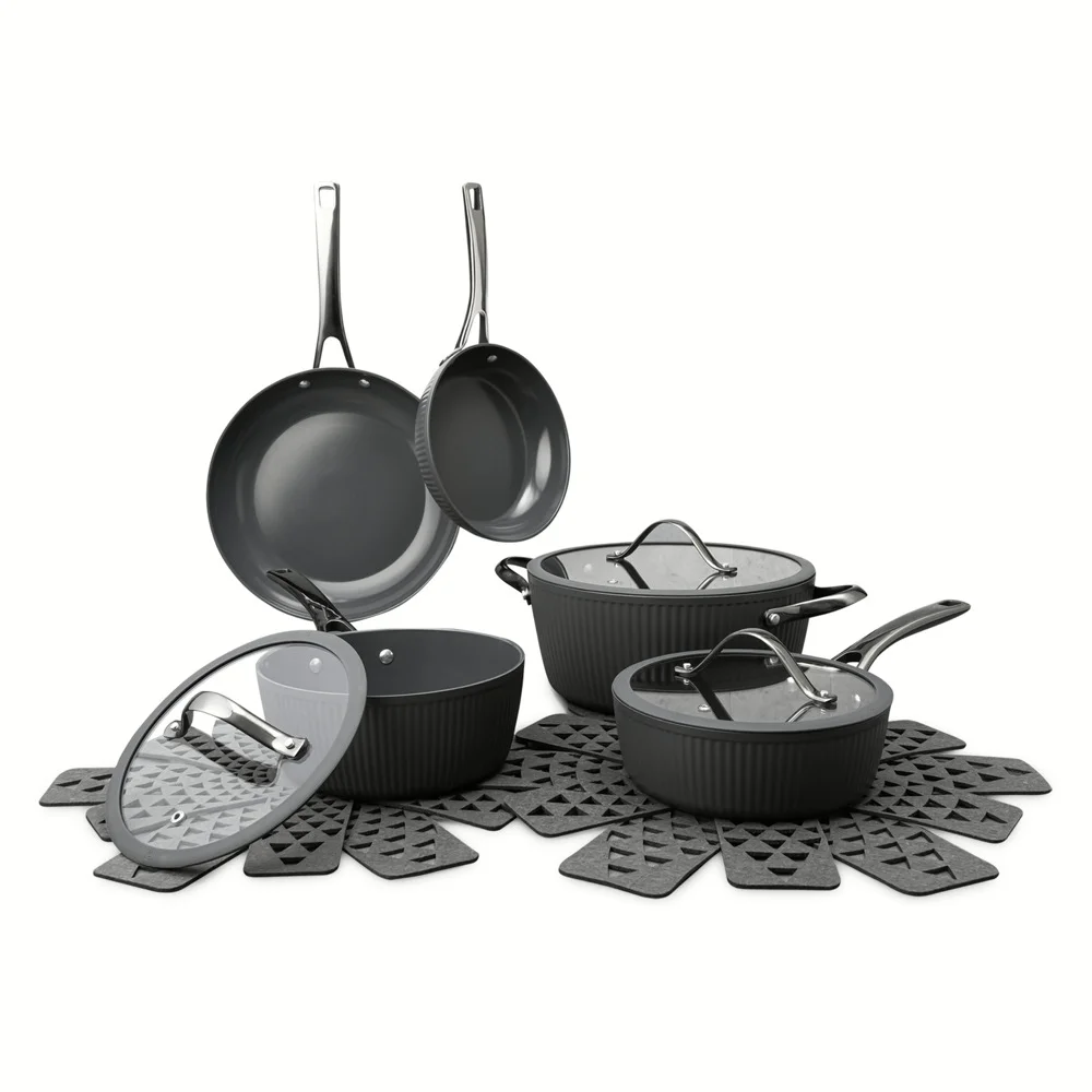 Thyme & Table 12-Piece Cookware Ceramic Non-Stick Set Ribbed Collection, Grey - Curated Treasures Market