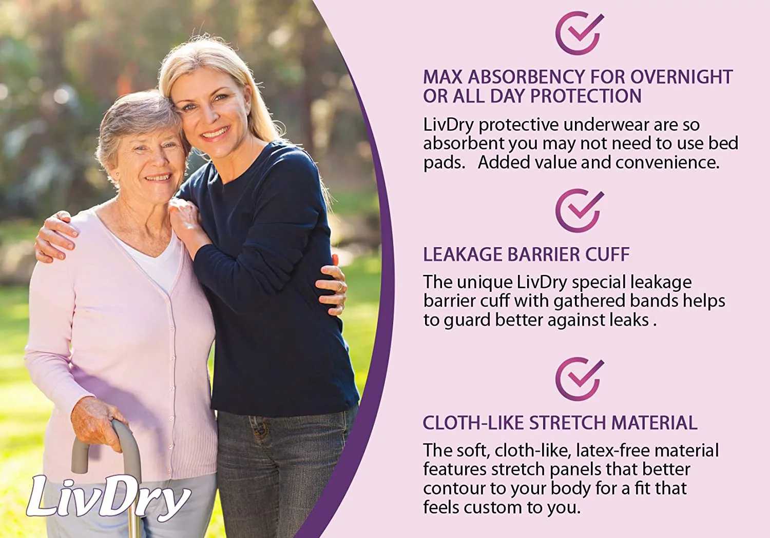 LivDry Womens Adult Incontinence Underwear, Purple Flowers, Super Comfort Absorbency (Medium, 16-Pack) - Curated Treasures Market