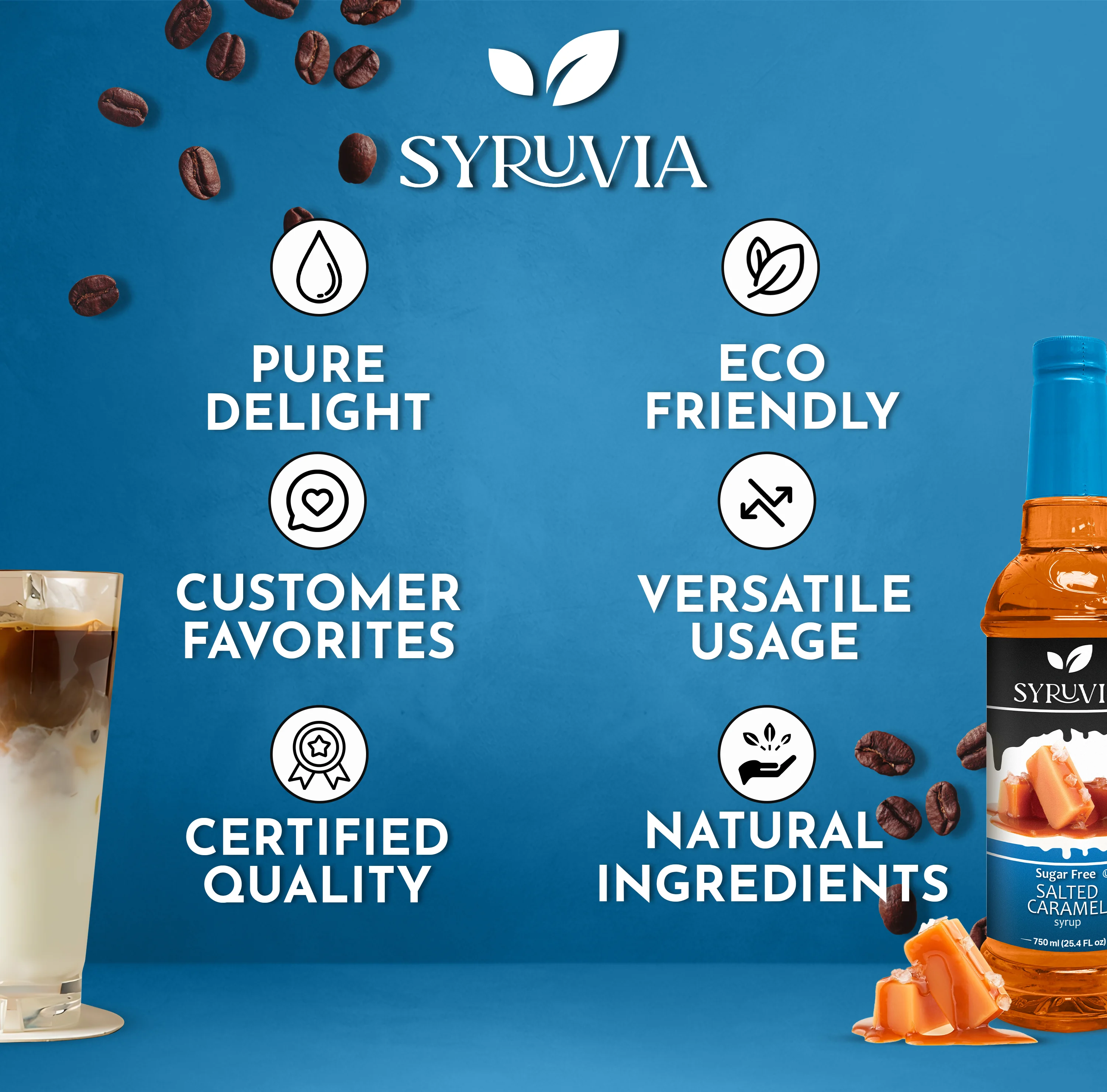 Syruvia Salted Caramel Sugar Free Coffee Syrup No-Calorie Coffee Sauce for Coffee, Lattes, Shakes, Smoothies, Desserts, 25.4 Fl. Oz - Curated Treasures Market