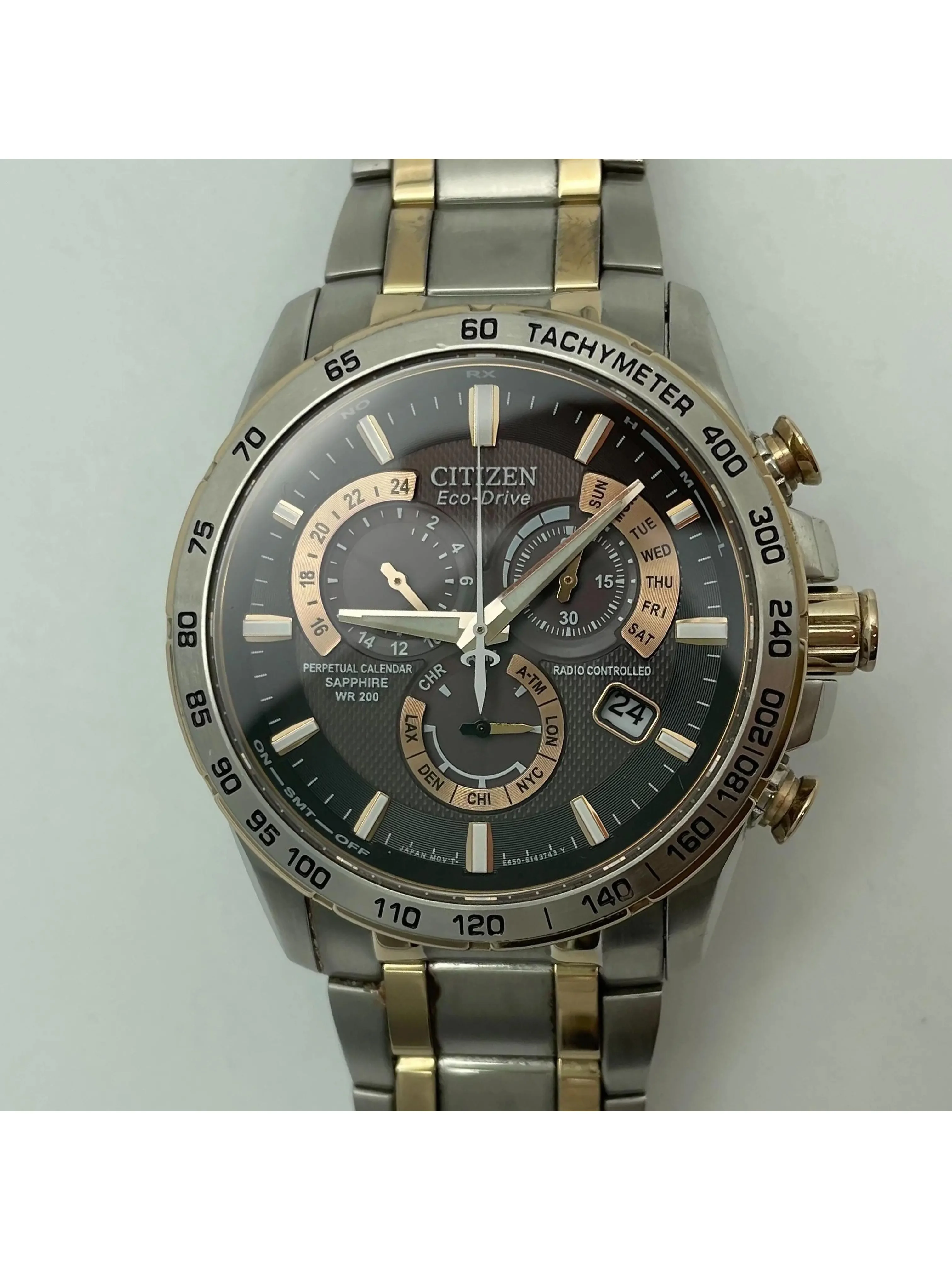 Citizen Eco-drive Two-Tone Stainless Steel Atomic Quartz Mens Watch AT4109-54E - Curated Treasures Market