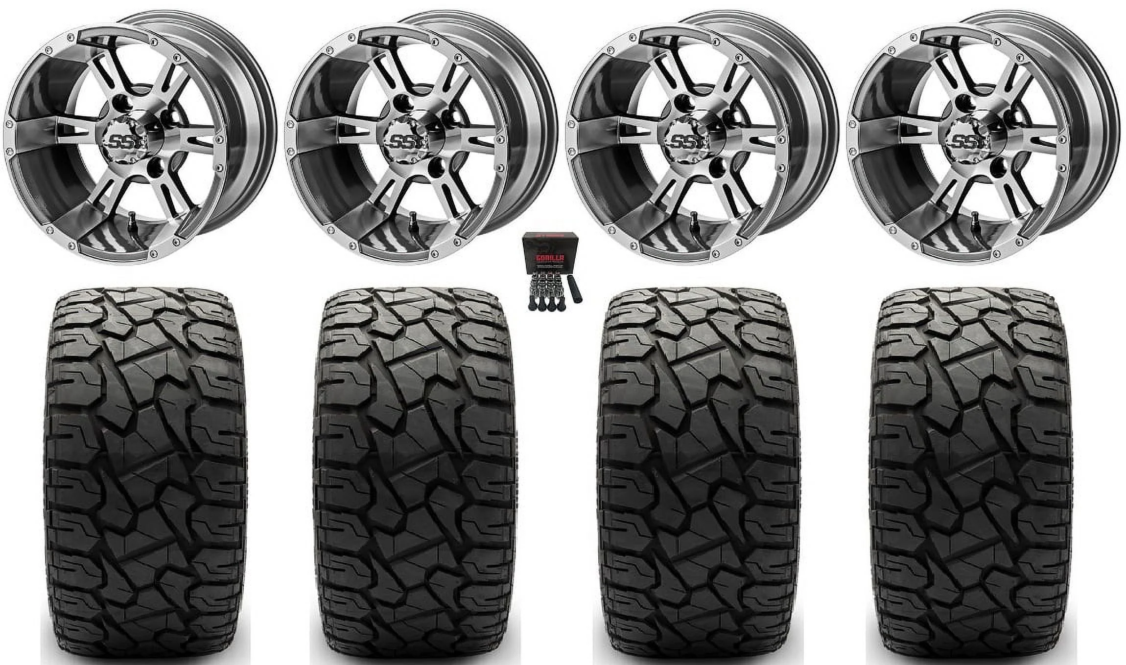 LSI Raptor 12" Golf Wheels Gm/Machined 23" X Comp X/T Tires E-Z-GO & Club Car - Curated Treasures Market