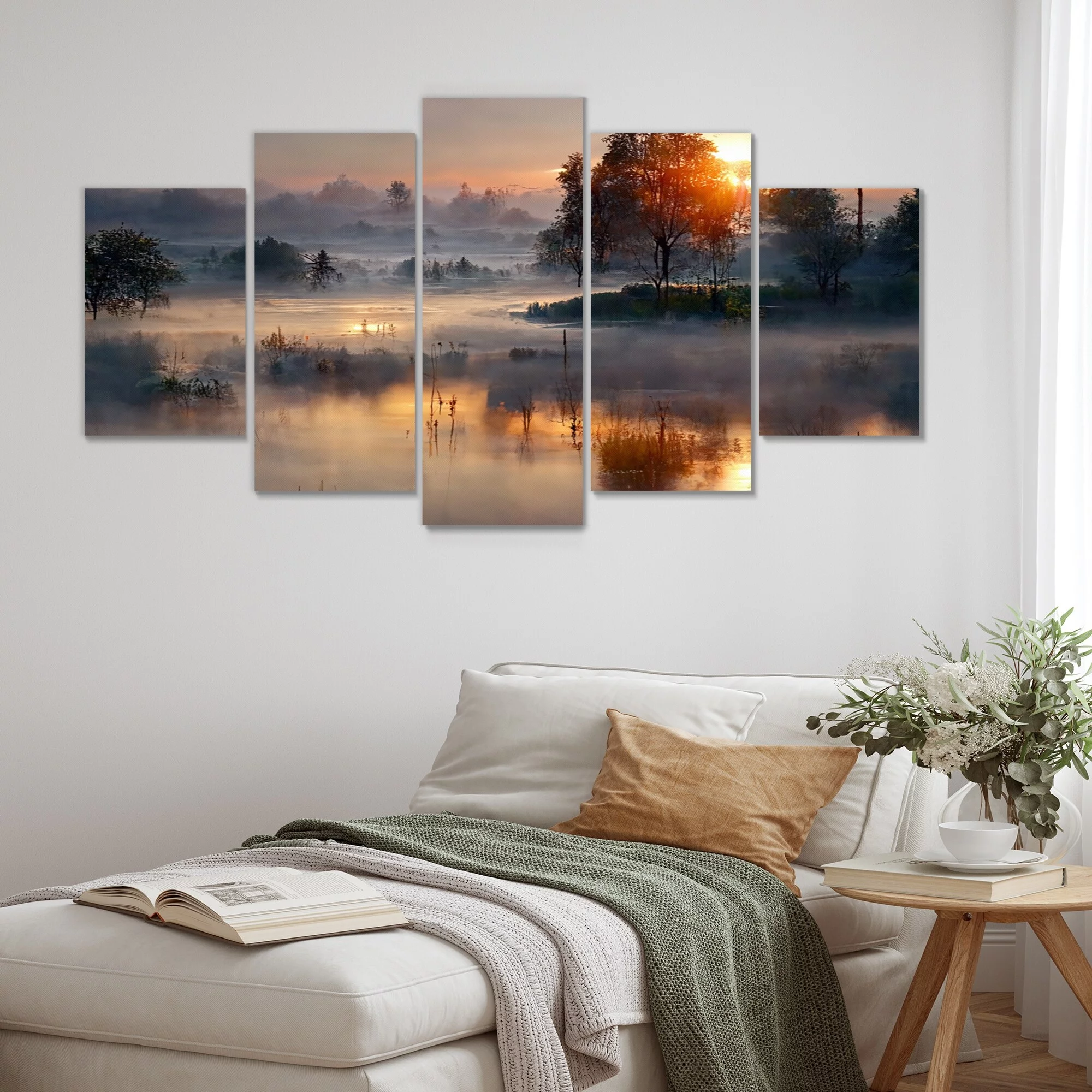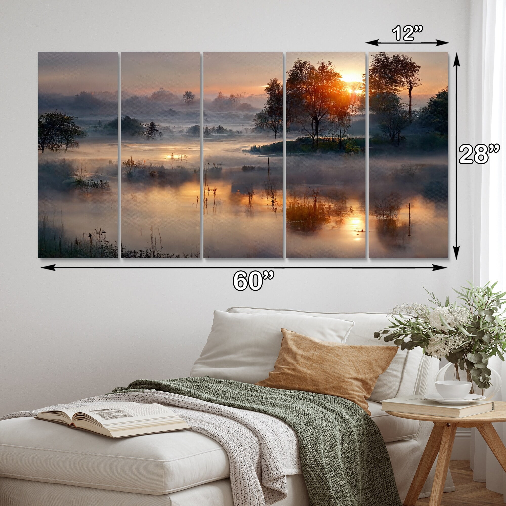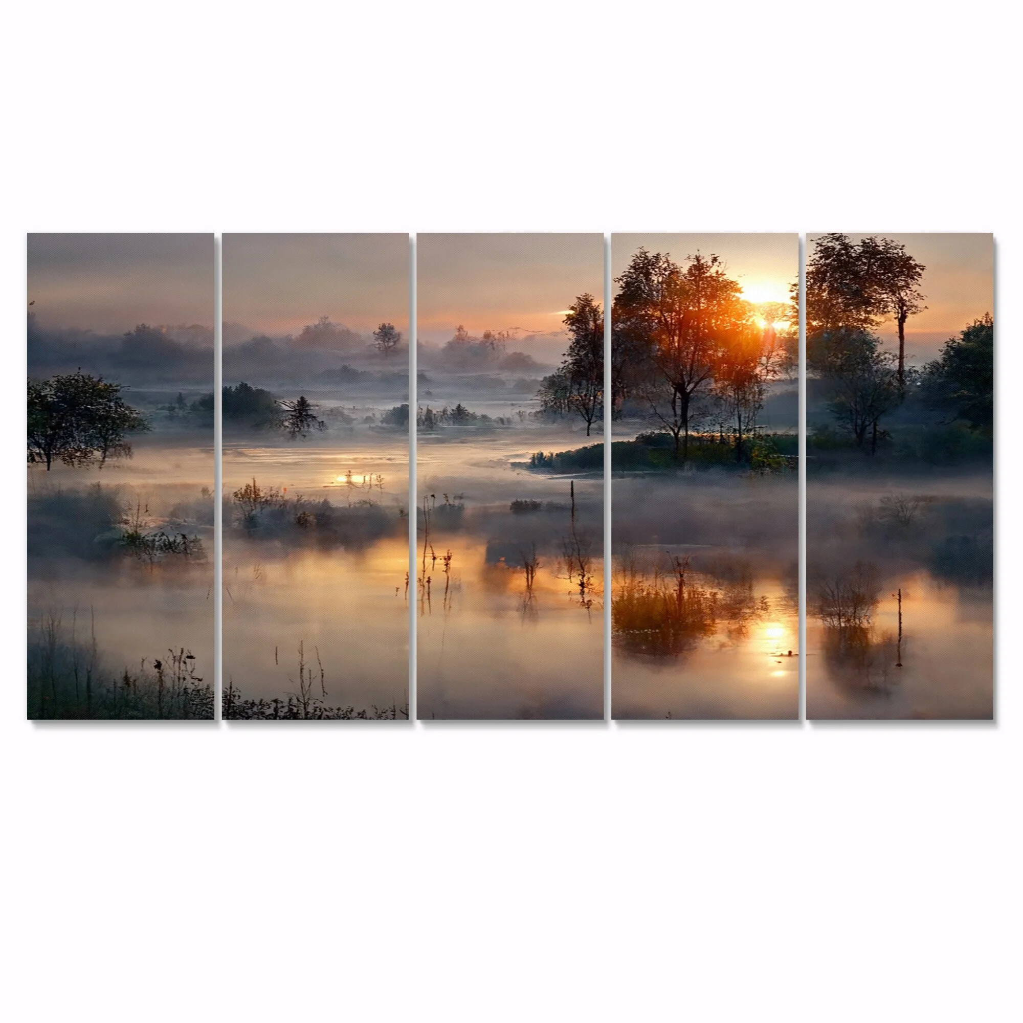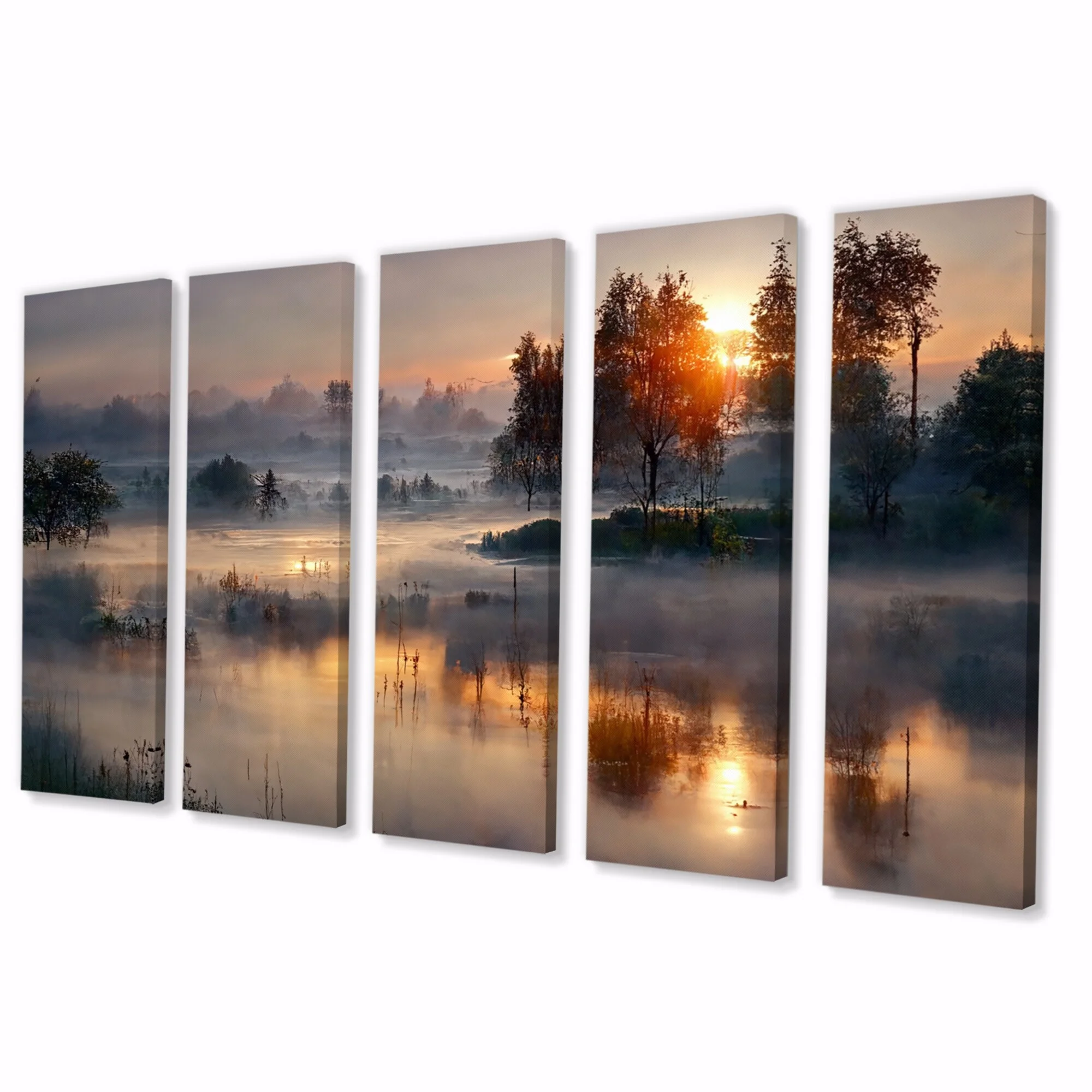 DESIGN ART Designart "Morning Fog Over The Lake Sunset III" Landscape Cottage Lake Mountains Multipanel Wall Decor 60 In. Wide X 32 In. High - 5 - Curated Treasures Market