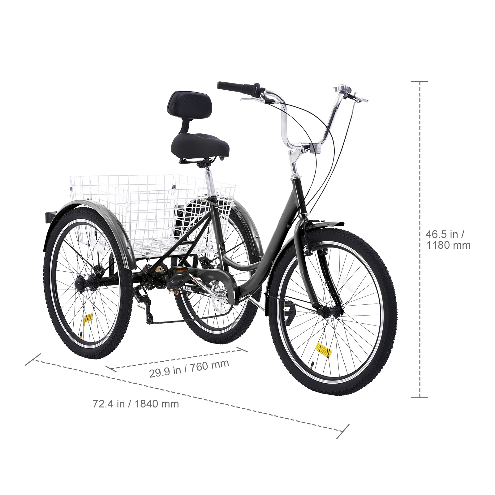 SKYSHALO 26" Adult Tricycles Bike 3 Wheel Trike Bicycle 7 Speed Carbon Steel Black - Curated Treasures Market