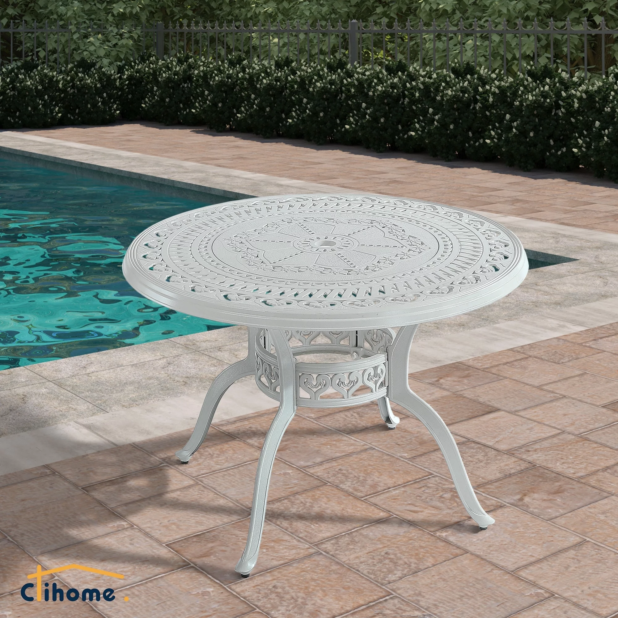 Clihome 40" Outdoor Durable Cast Aluminum Construction Patio Dining Table White - Curated Treasures Market