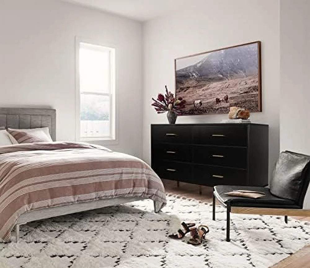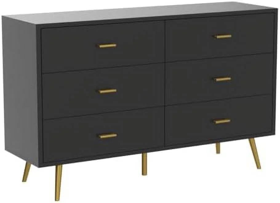 CKPFVY White Dresser 6 Drawer Dresser for Bedroom with Wide Drawers and Metal Handles Modern Wood Chest of Drawers for Living Room Hallway Entryway - Curated Treasures Market