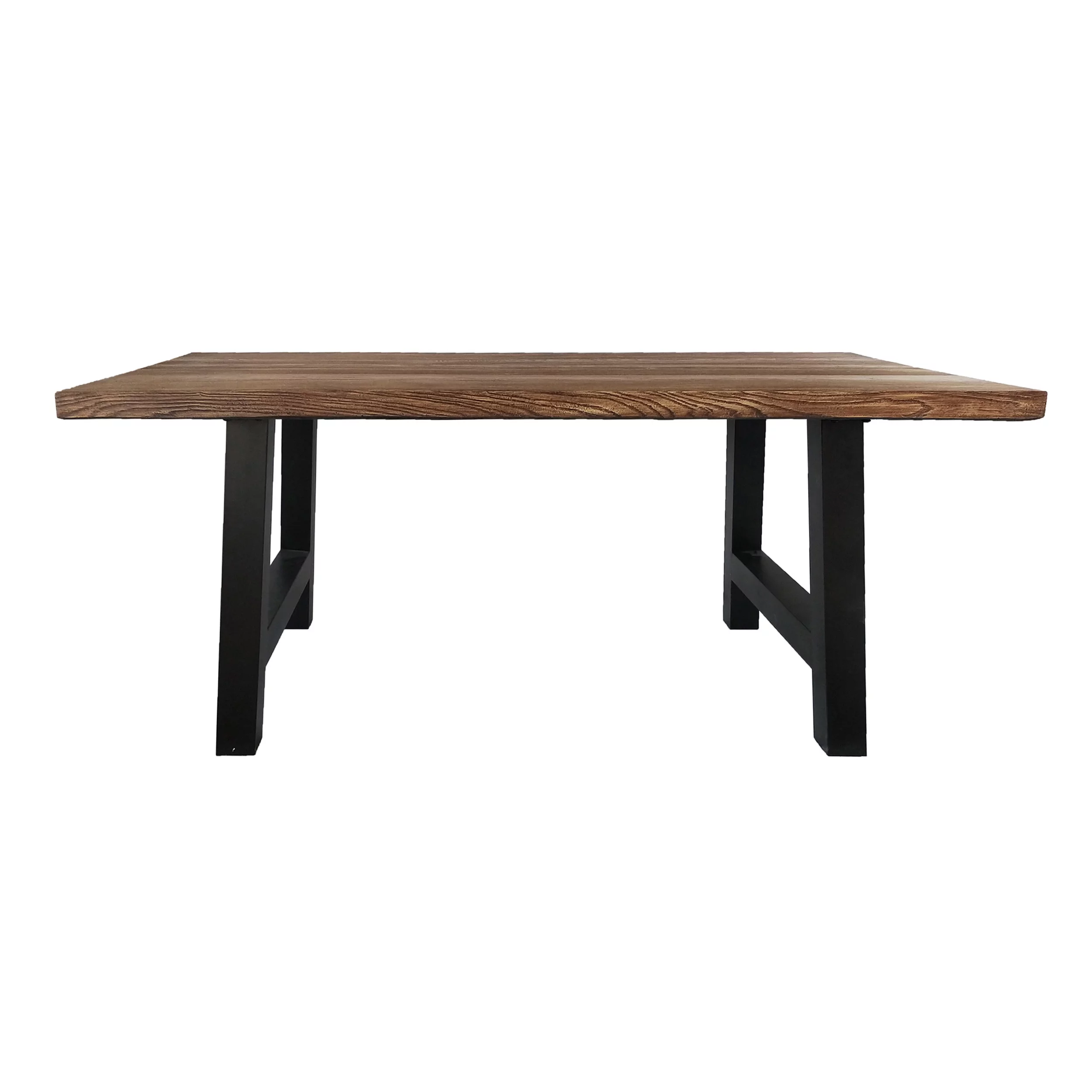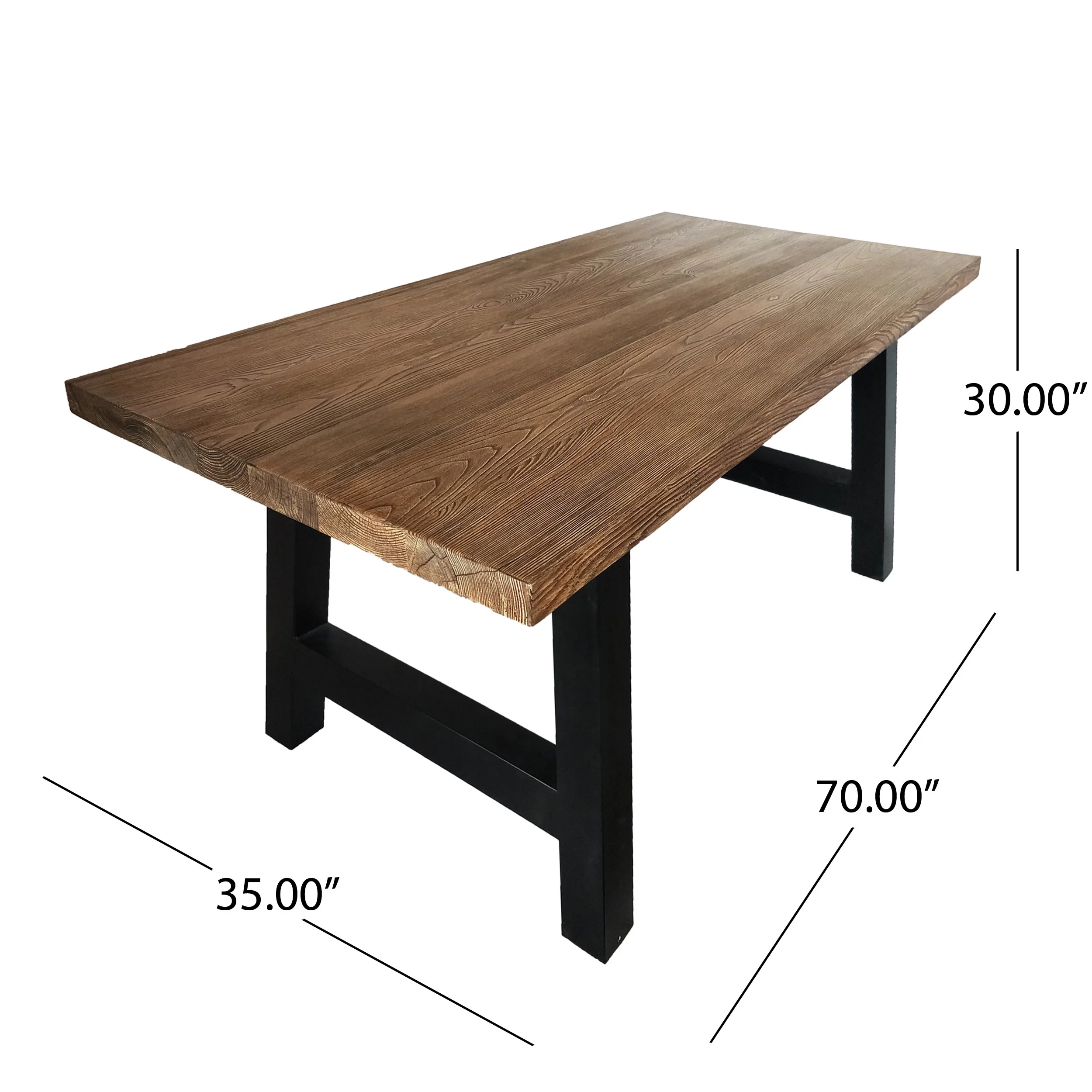 GDF Studio Hammond Outdoor Lightweight Concrete Rectangular Dining Table Natural Oak and Black, 6 Person - Curated Treasures Market