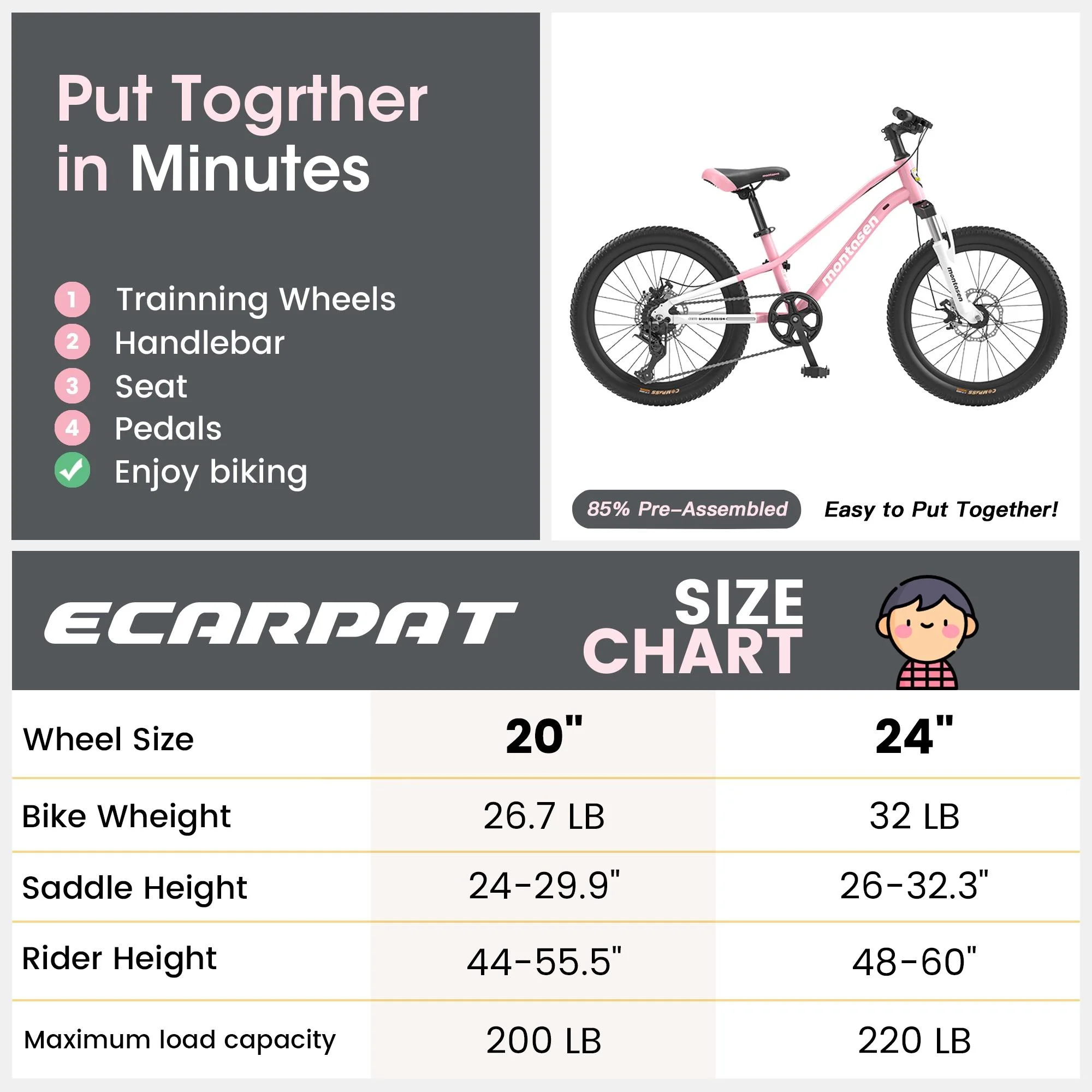 20" Kids Bike for Girls, 7-Speed Kids Bicycle, 85% Pre-assembled, Disc Brakes, Suit for Age 8 and up, Pink - Curated Treasures Market