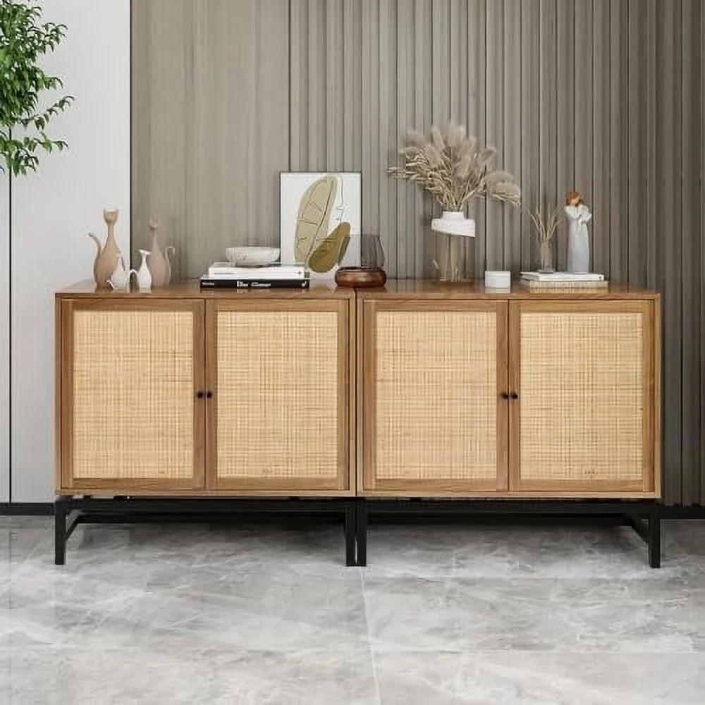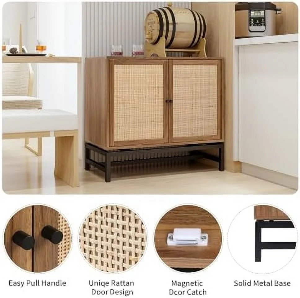 Cabinet,Sideboard,Natural rattan 2 door cabinet,with 1 Adjustable Inner Shelves,rattan - Curated Treasures Market