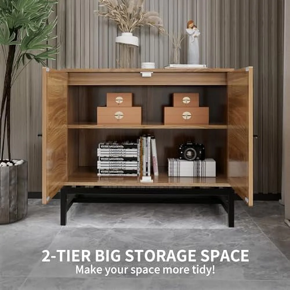 HYHBIBOOM Rattan Buffet 2 Door Cabinet with with 1 Adjustable Inner Shelves Accent Cabinet with Iron Framework Feet for Living Room Dining Room Entry Kitchen Staircase Side Black - Curated Treasures Market