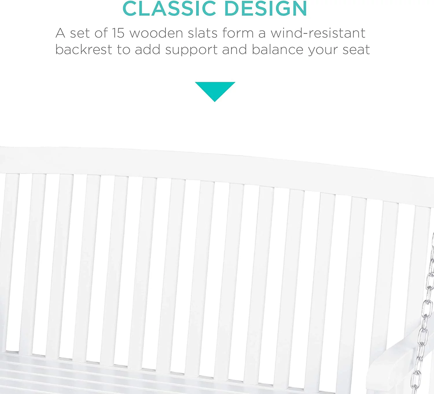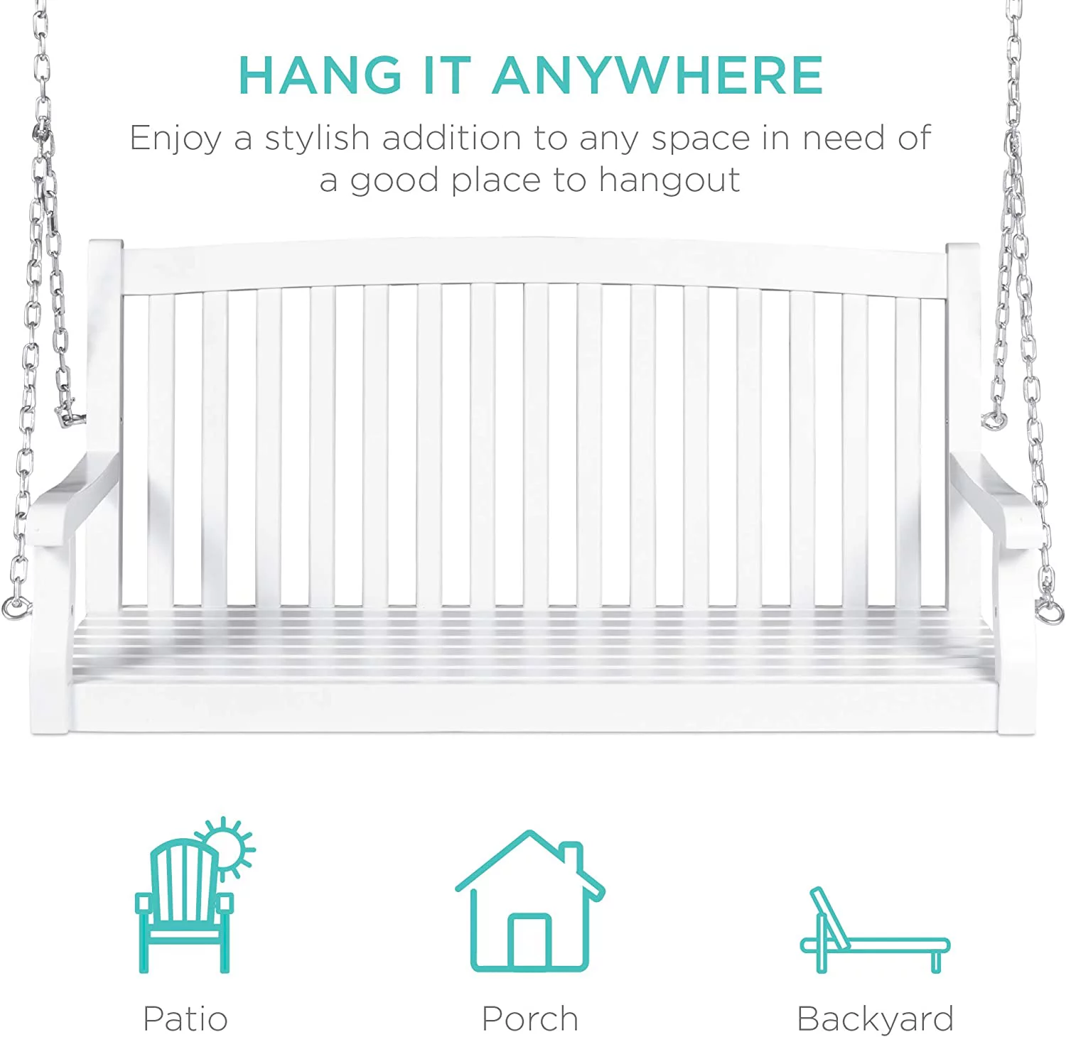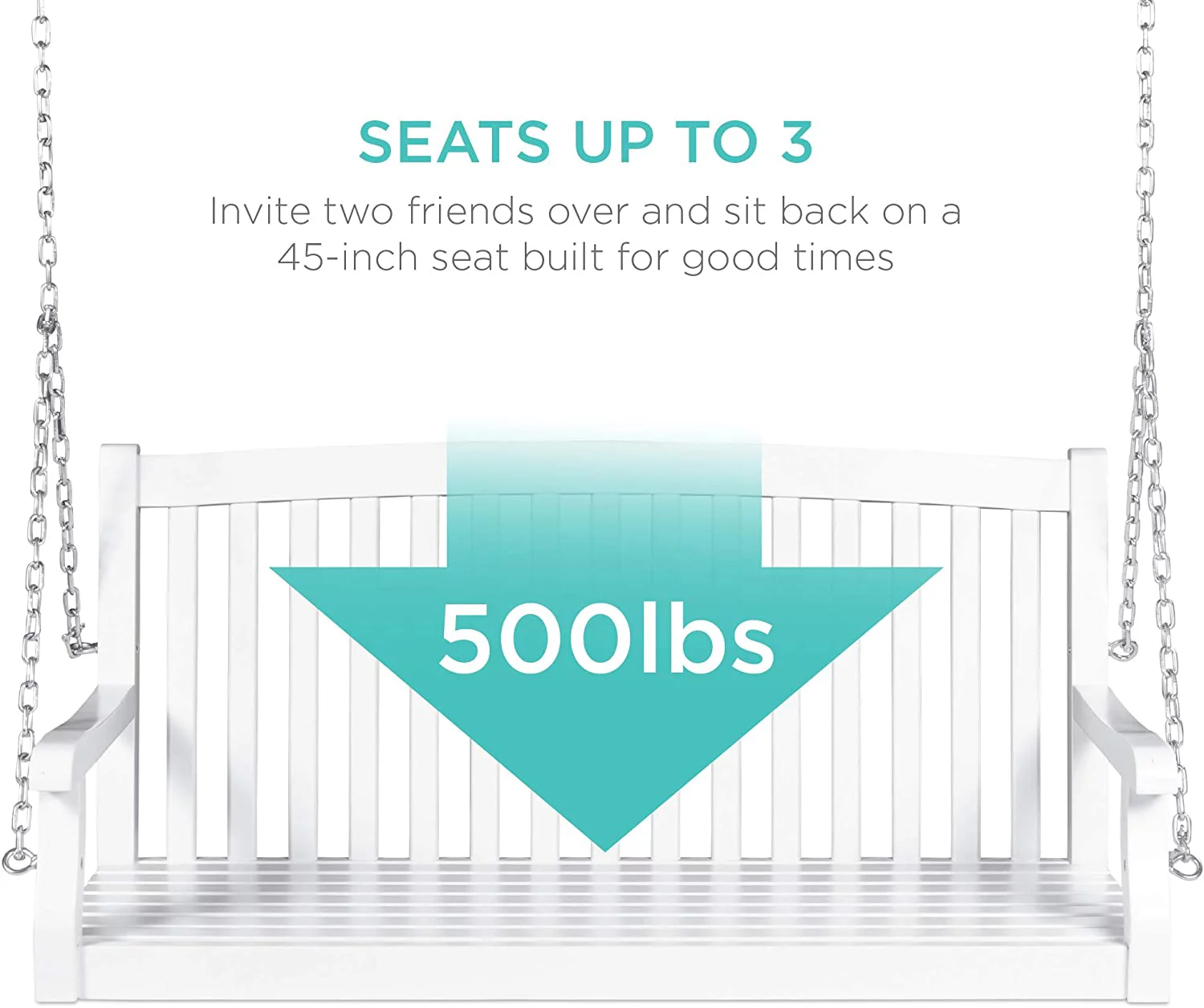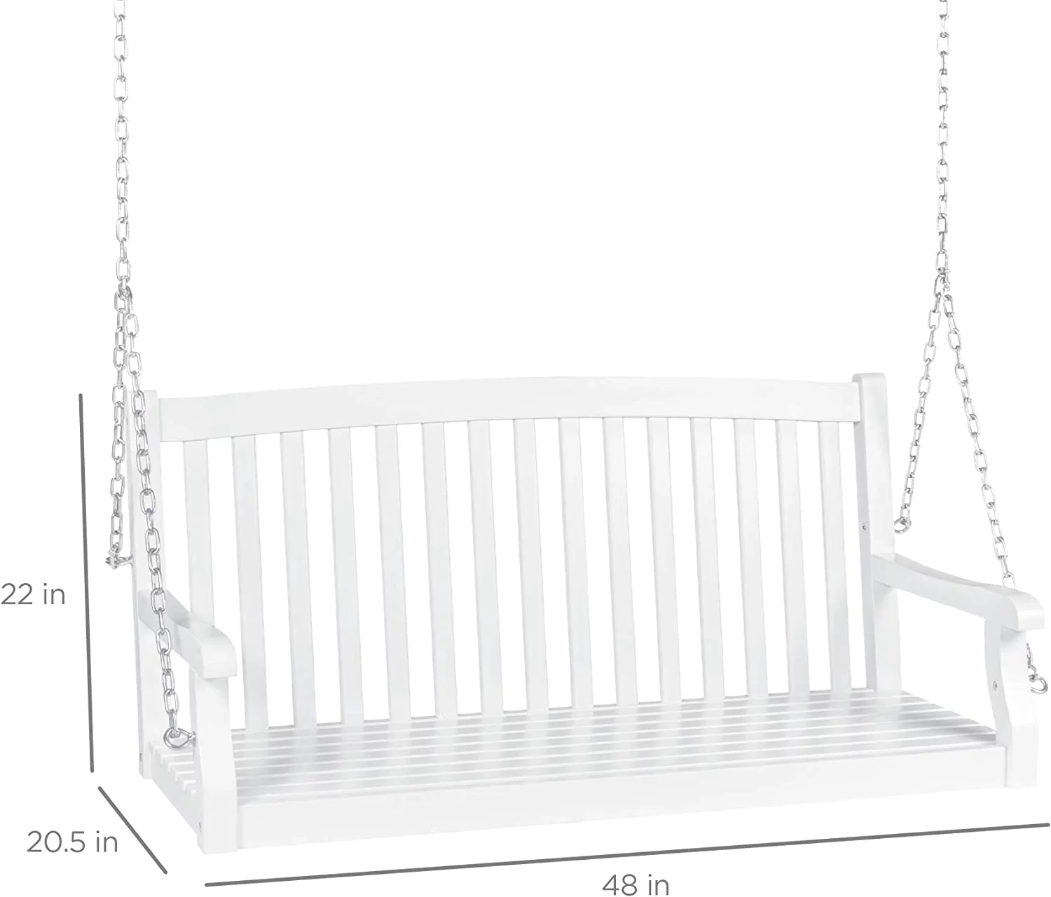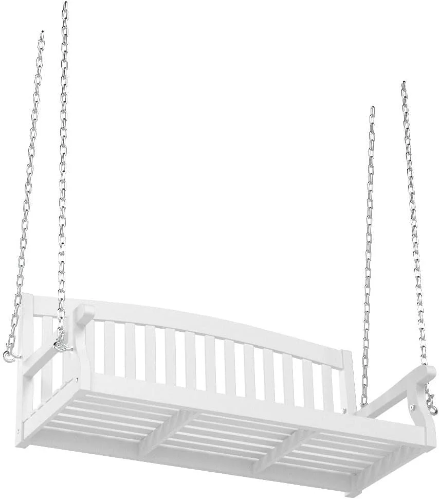 U-SHARE 48in Wood Porch Swing Outdoor Patio Hanging Bench Chair Furniture for Deck, Garden, Yard w/Mounting Chains, Curved Back Design, 500lb Weight Capacity - White - Curated Treasures Market