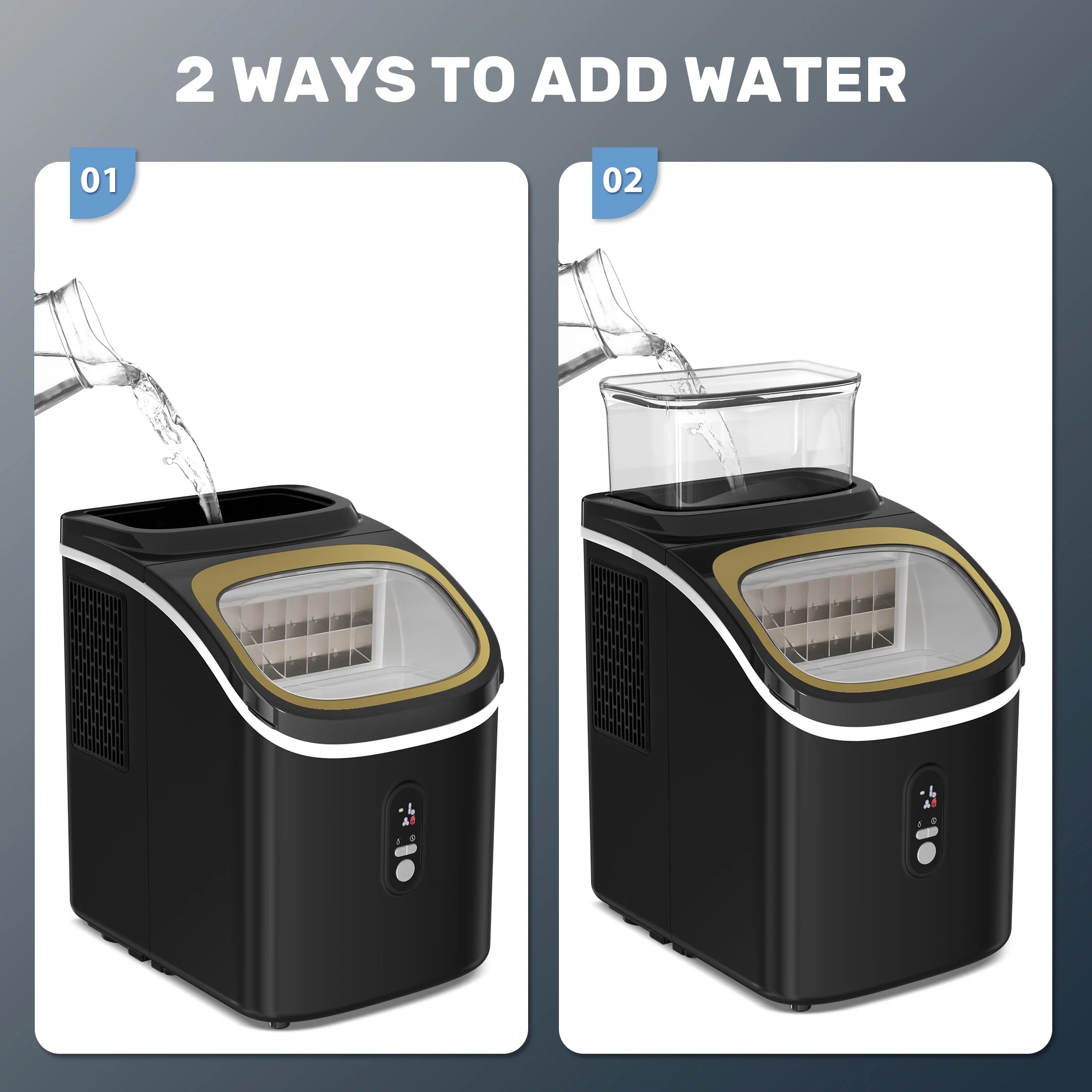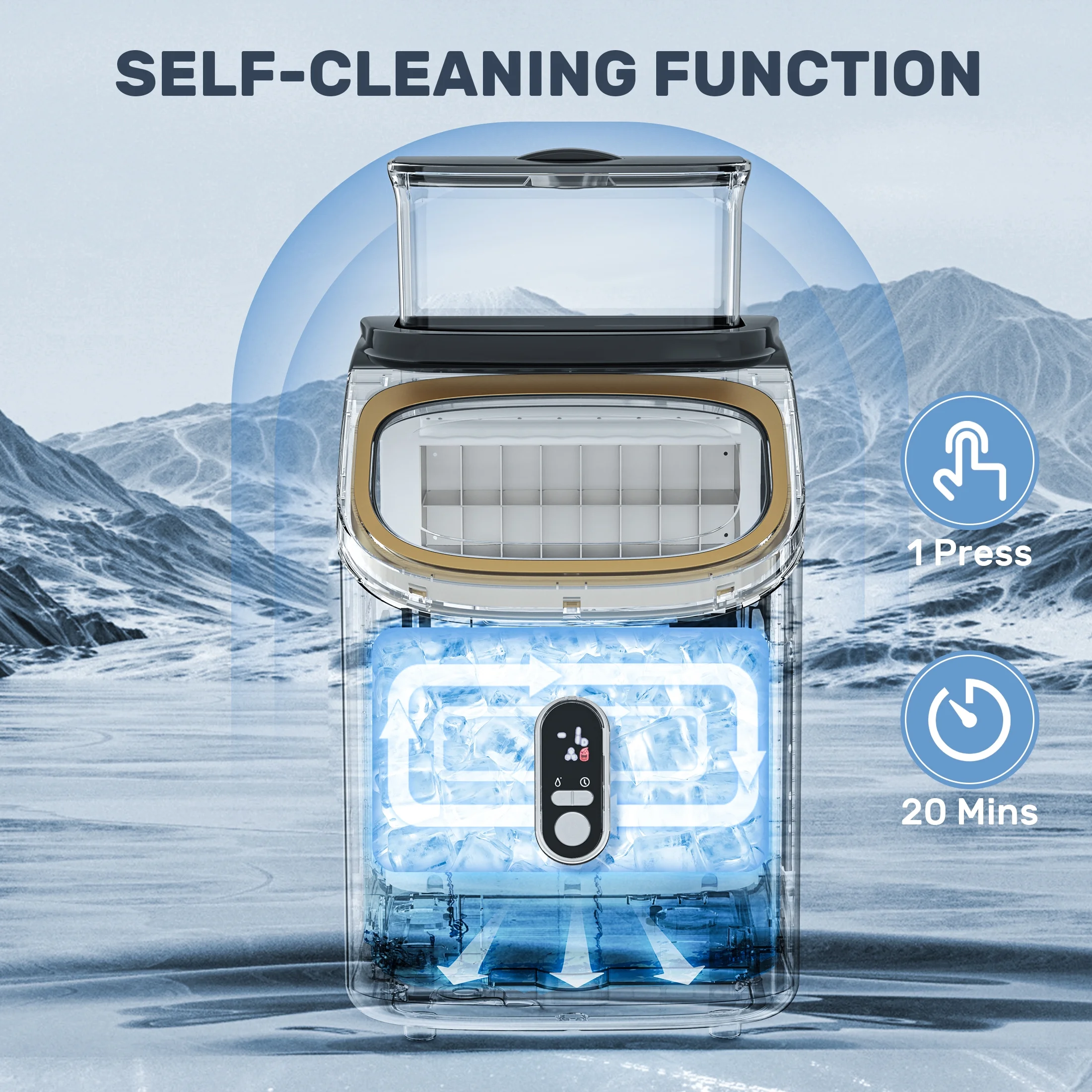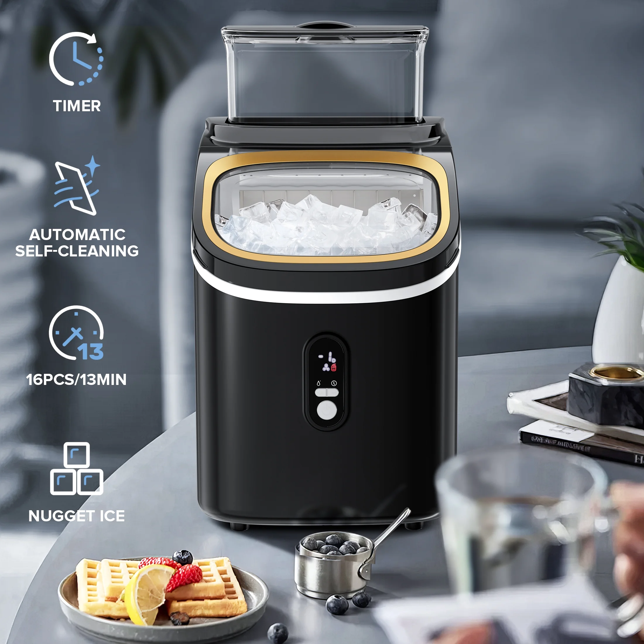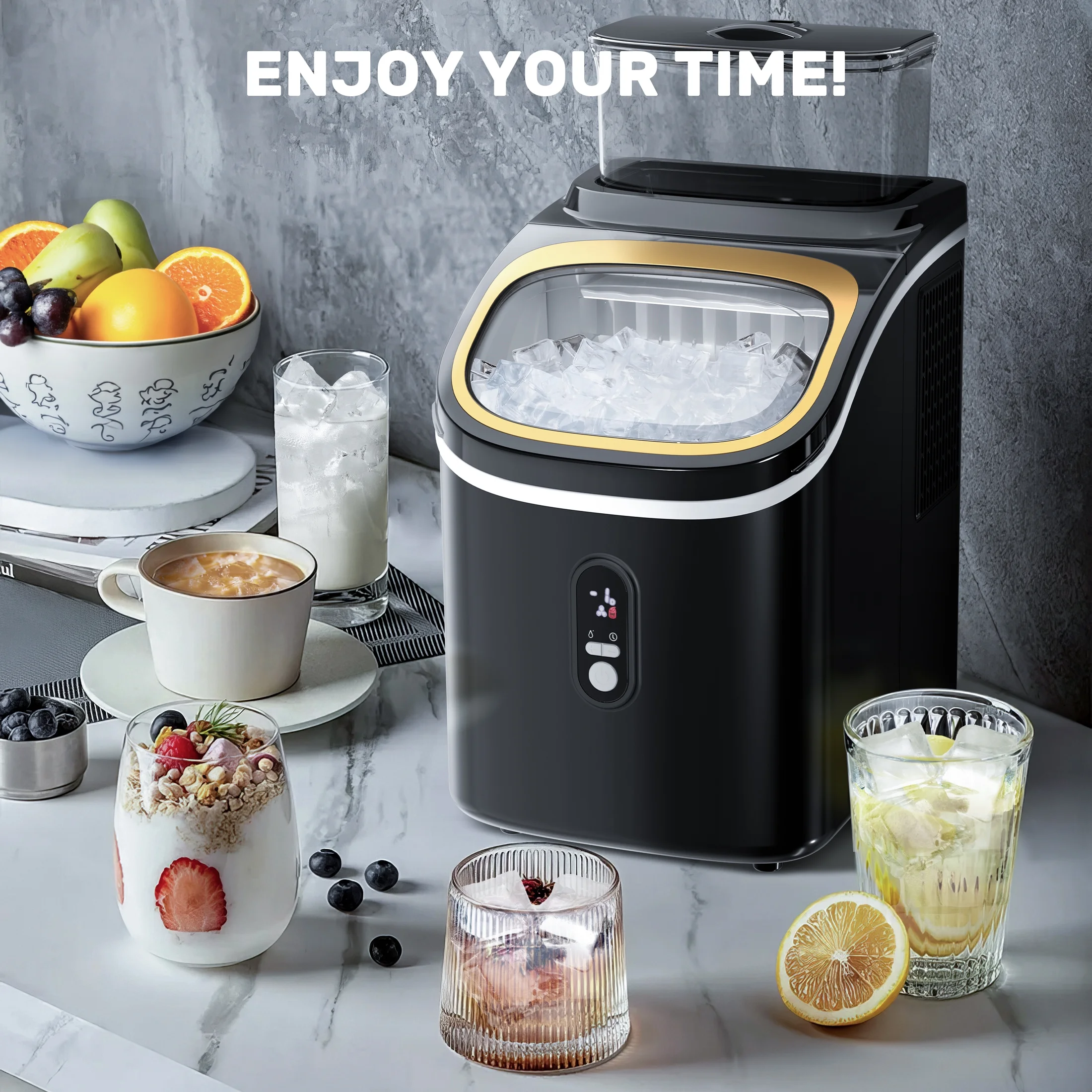 Auseo Nugget Ice Maker Countertop with 1.5L Detachable Water Tank , Self-Cleaning Function, for Party/Kitchen/Office, Black - Curated Treasures Market