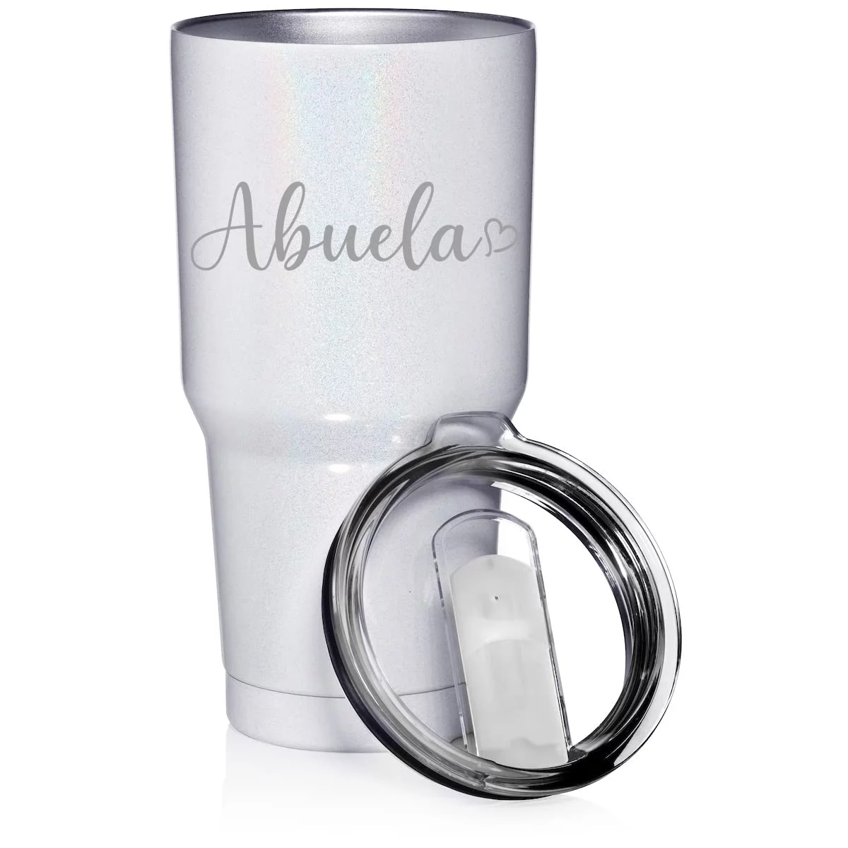 30 oz Tumbler Stainless Steel Vacuum Insulated Travel Mug Cup Abuela With Heart (White Glitter) - Curated Treasures Market